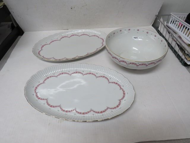 9" Bowl & 2 oval platters, JM Menau made in German Democrat Republic