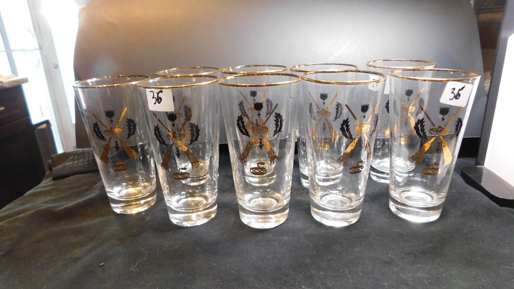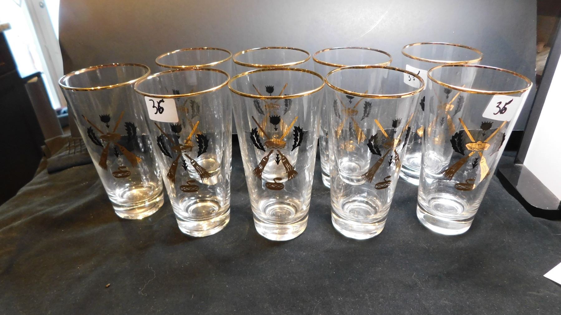 9 MCM, CURLING MOTIF, HIGH BALL GLASSES, BLACK/GOLD