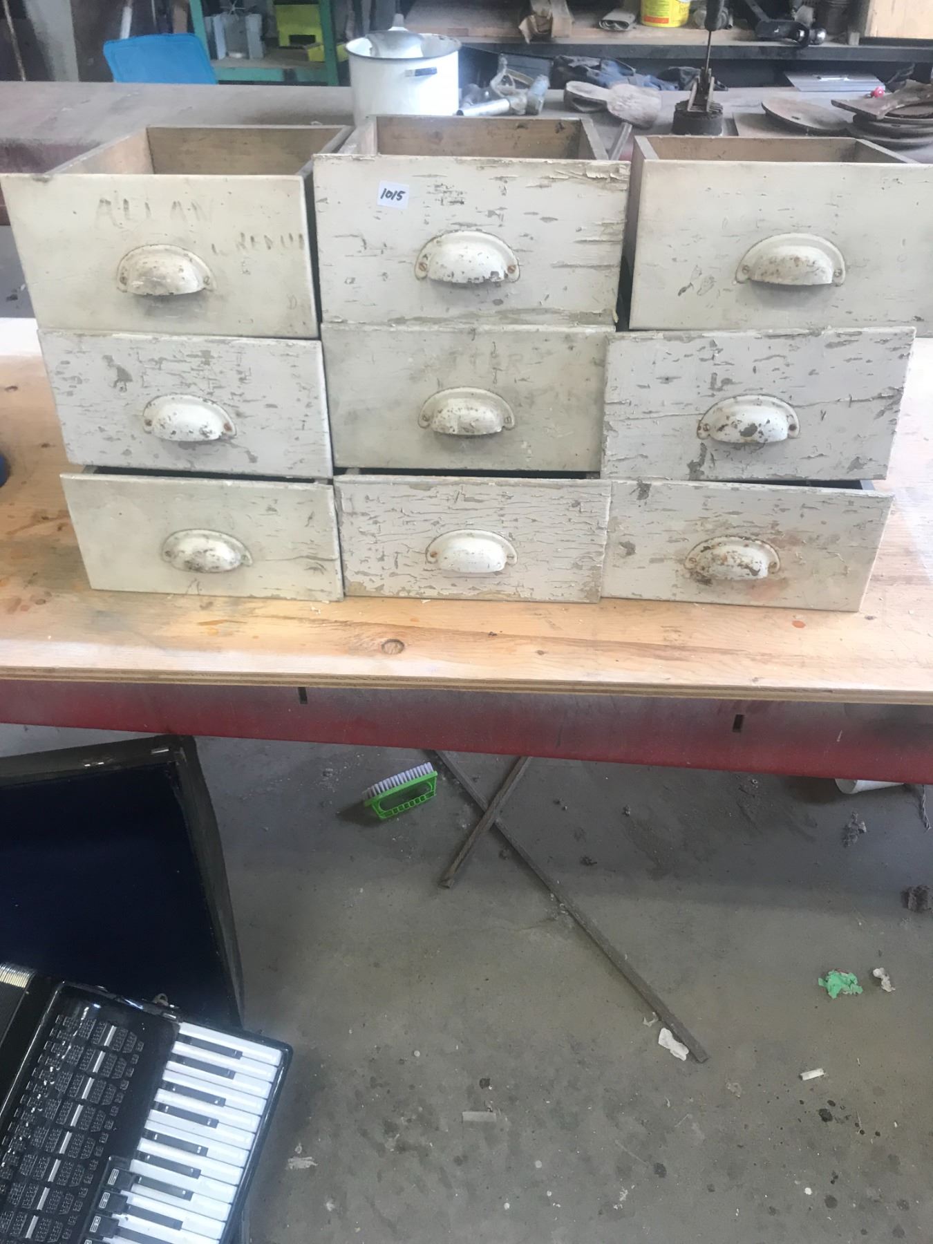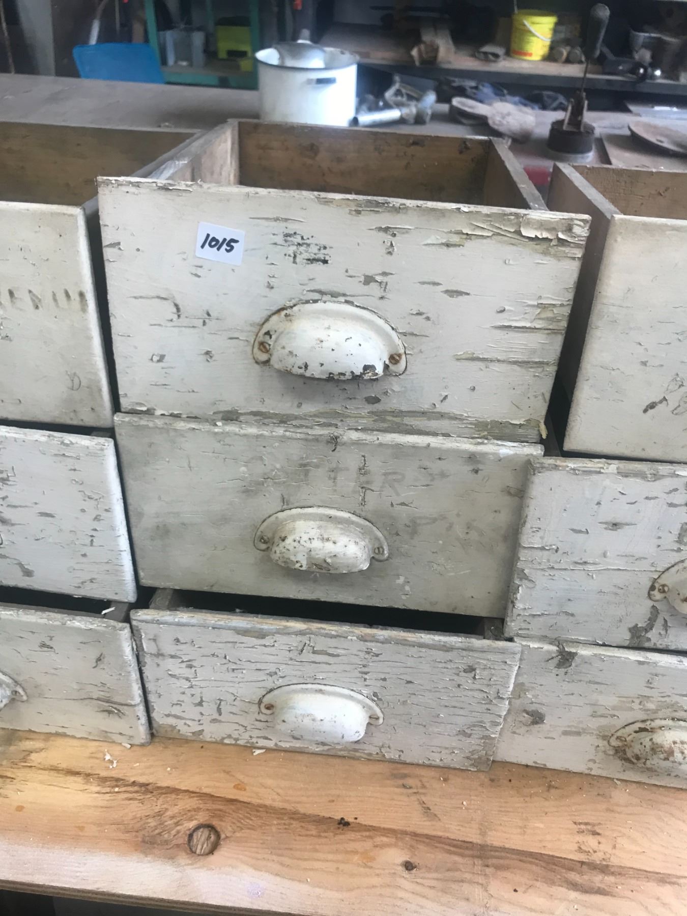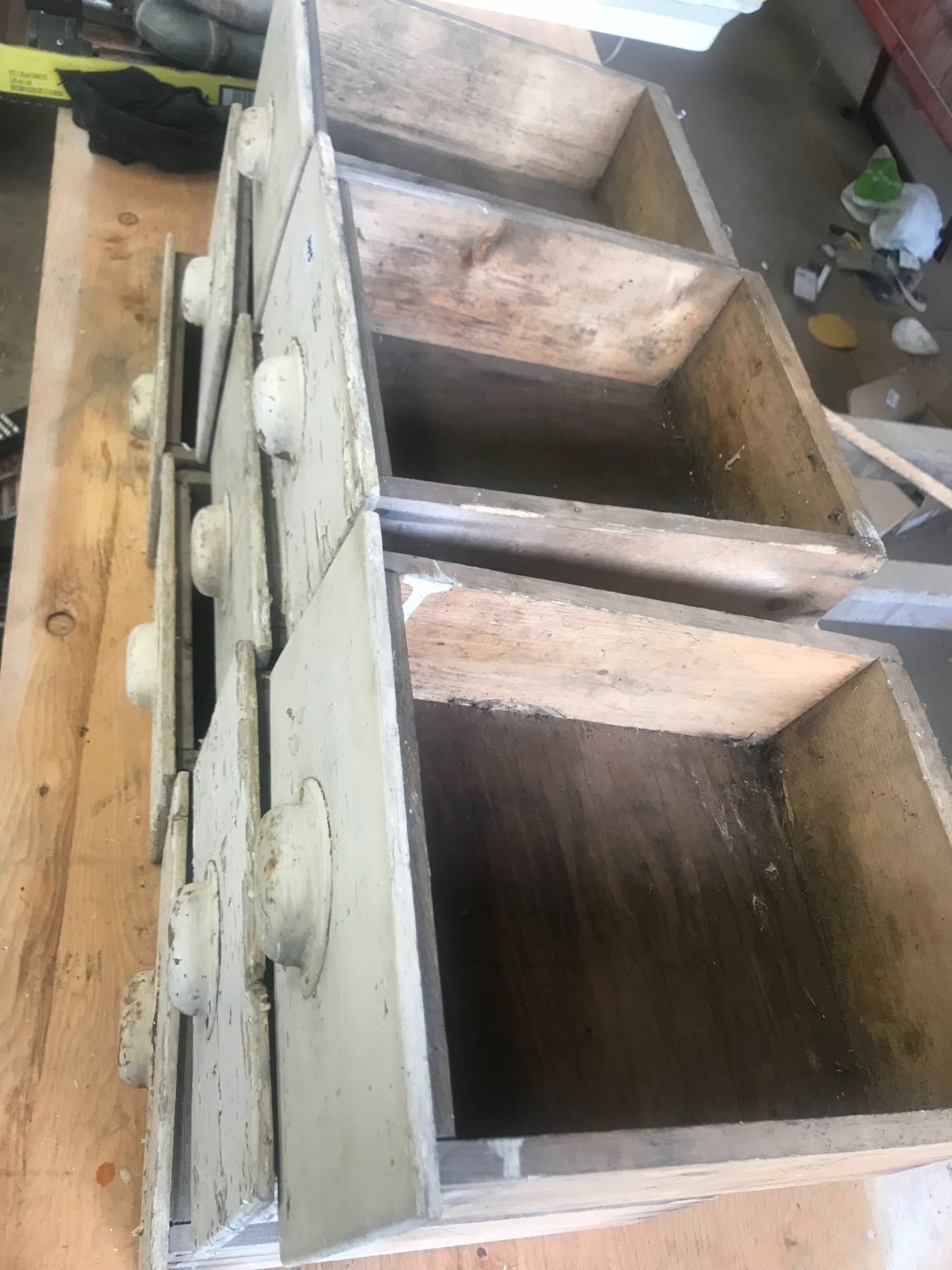 9 PRIMITIVE DRAWERS C/W CUP HANDLES (51/2" X 10") FRONTS) - RIGHT OUT OF THE SHOP