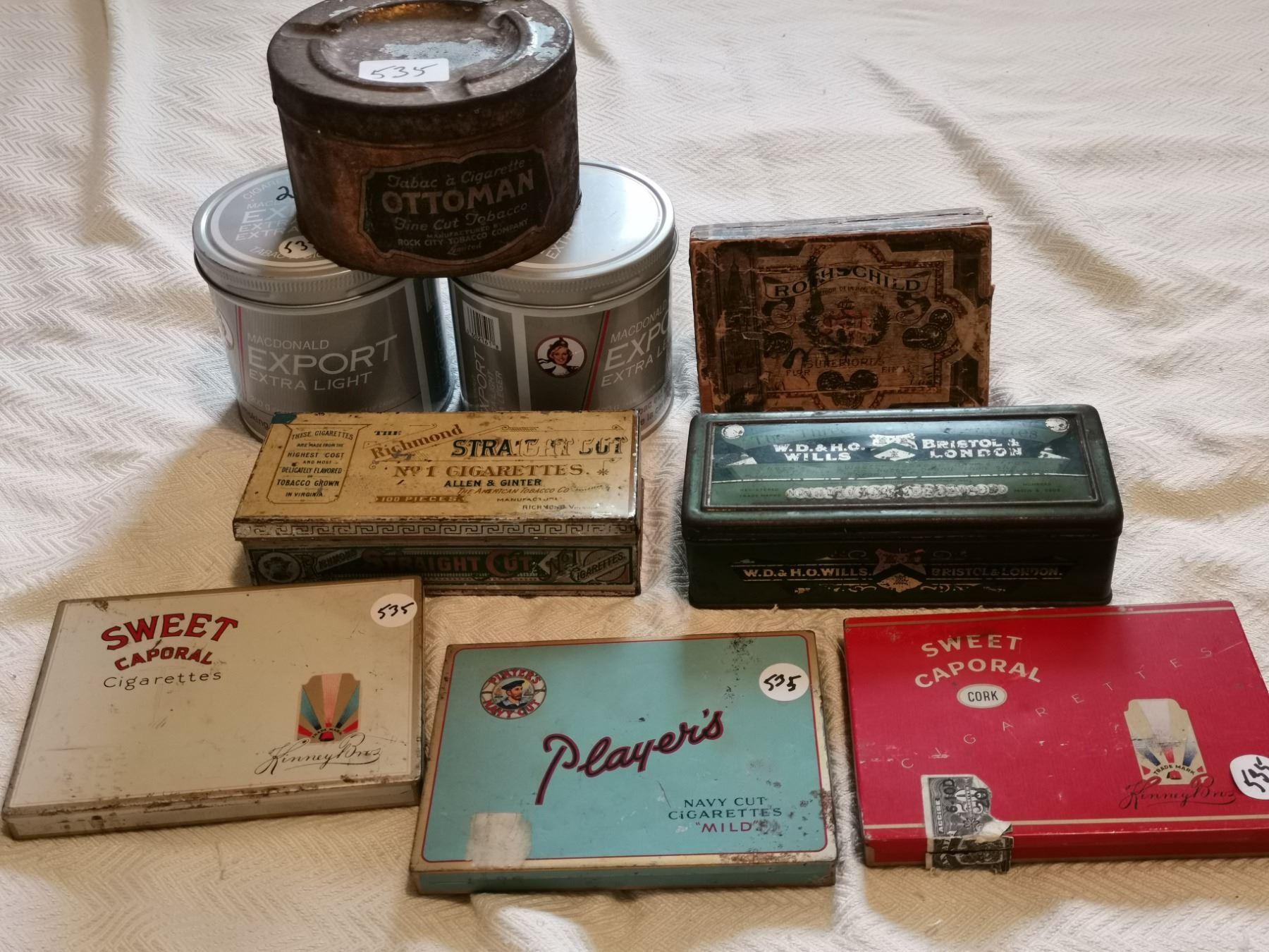 9 TOBACCO CANS, 8 TIN