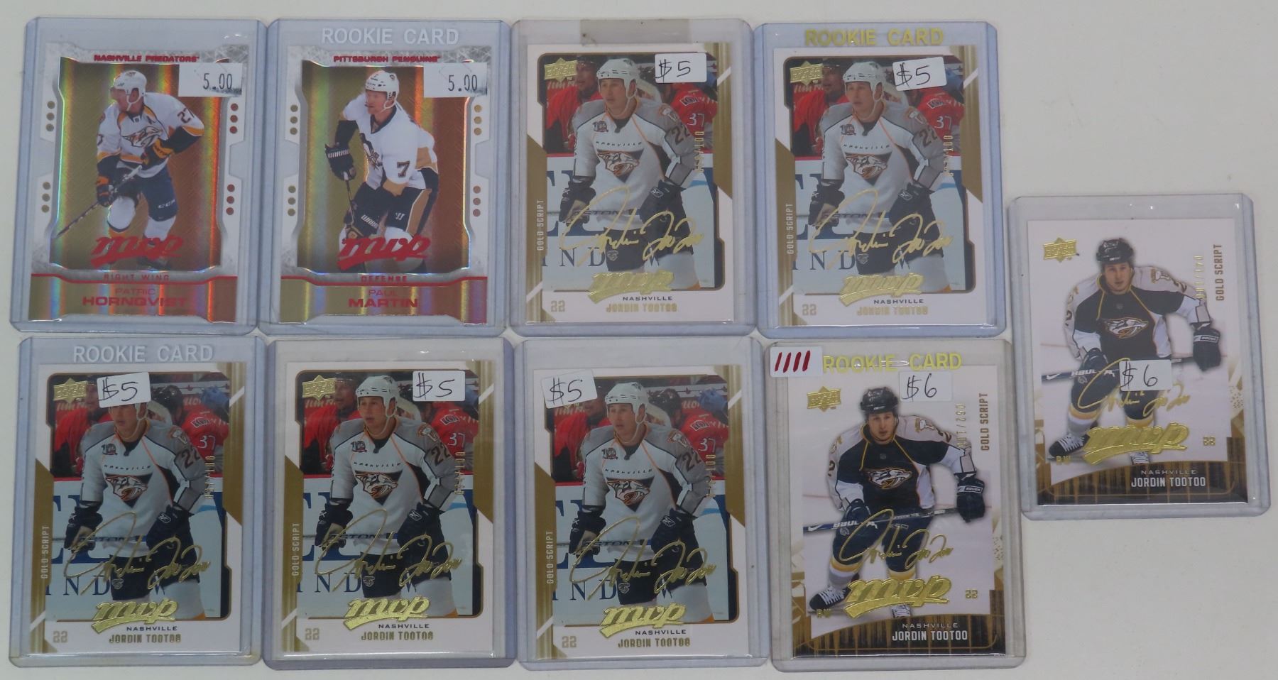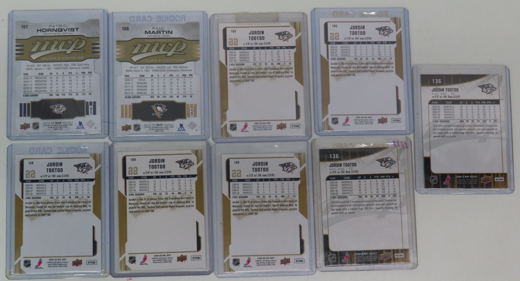 9 assorted "MVP" series UpperDeck hockey cards - in plastic holders (Patric Hornqvist, Paul Martin, Jordin Tootoo)