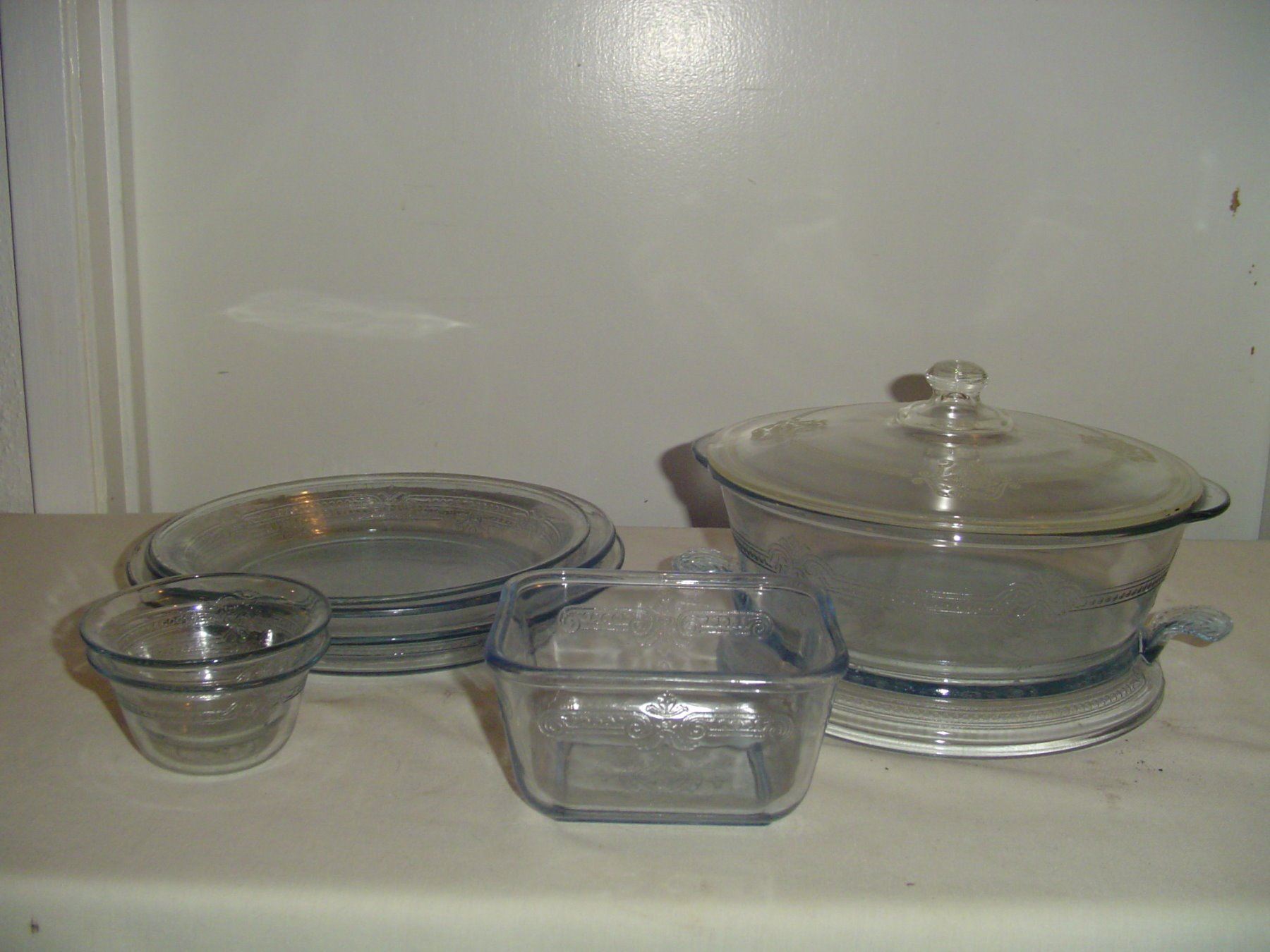 9 pieces clear glass patterned fire king