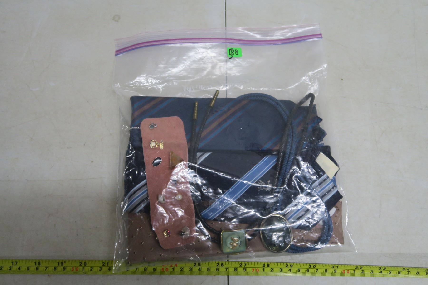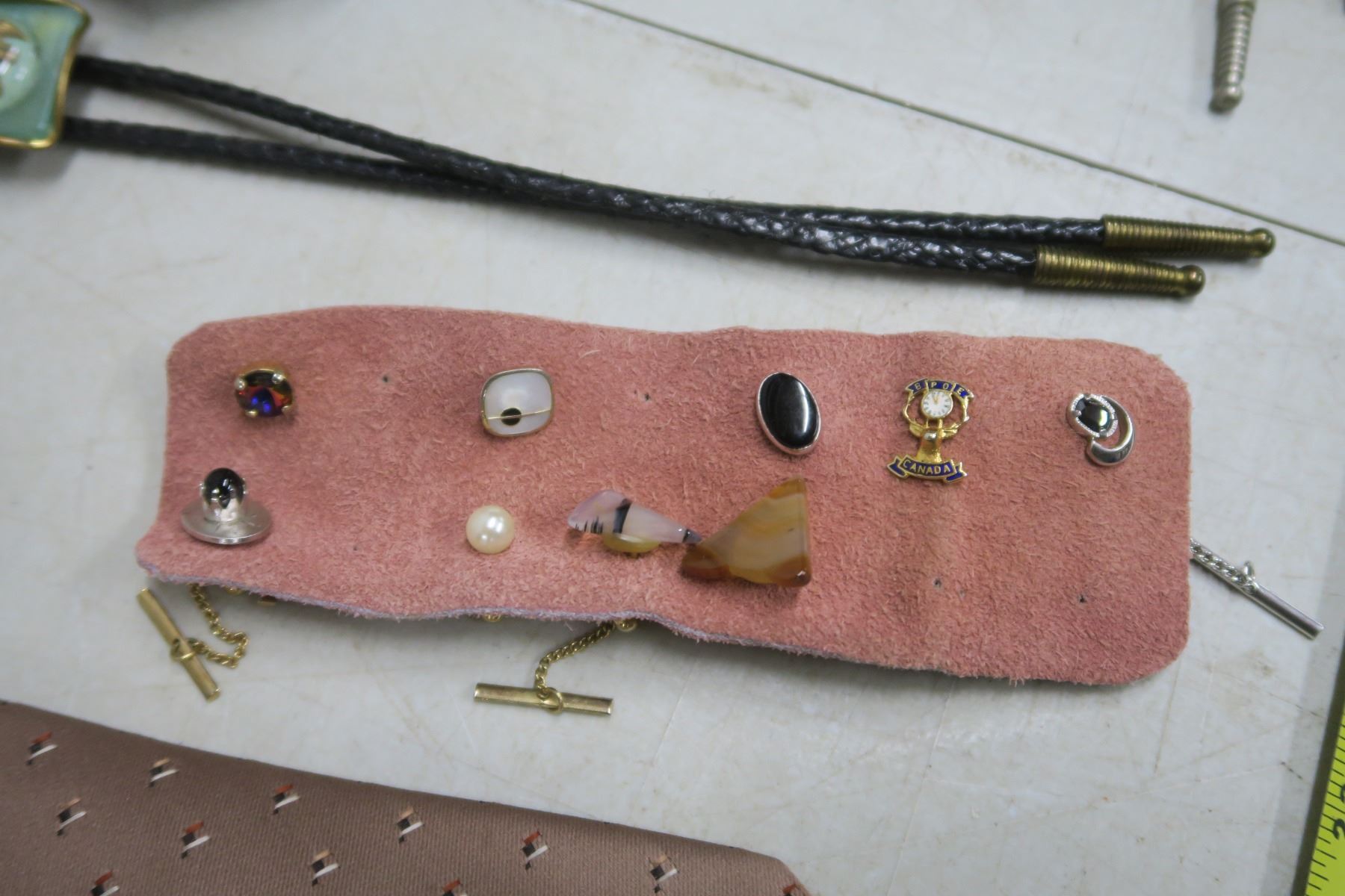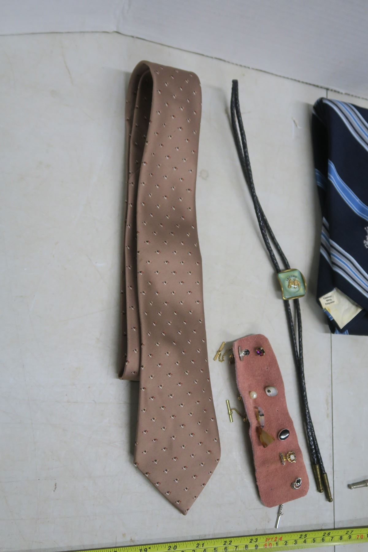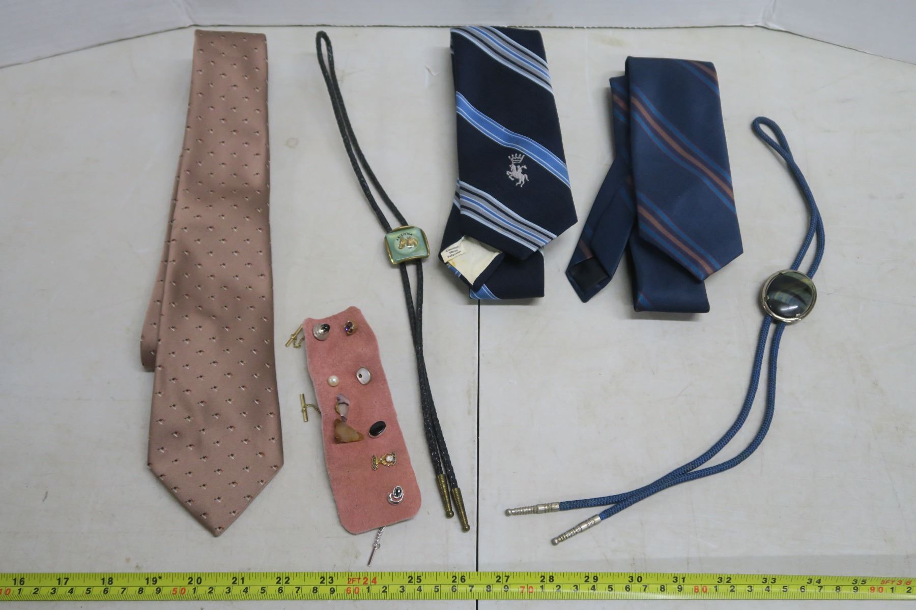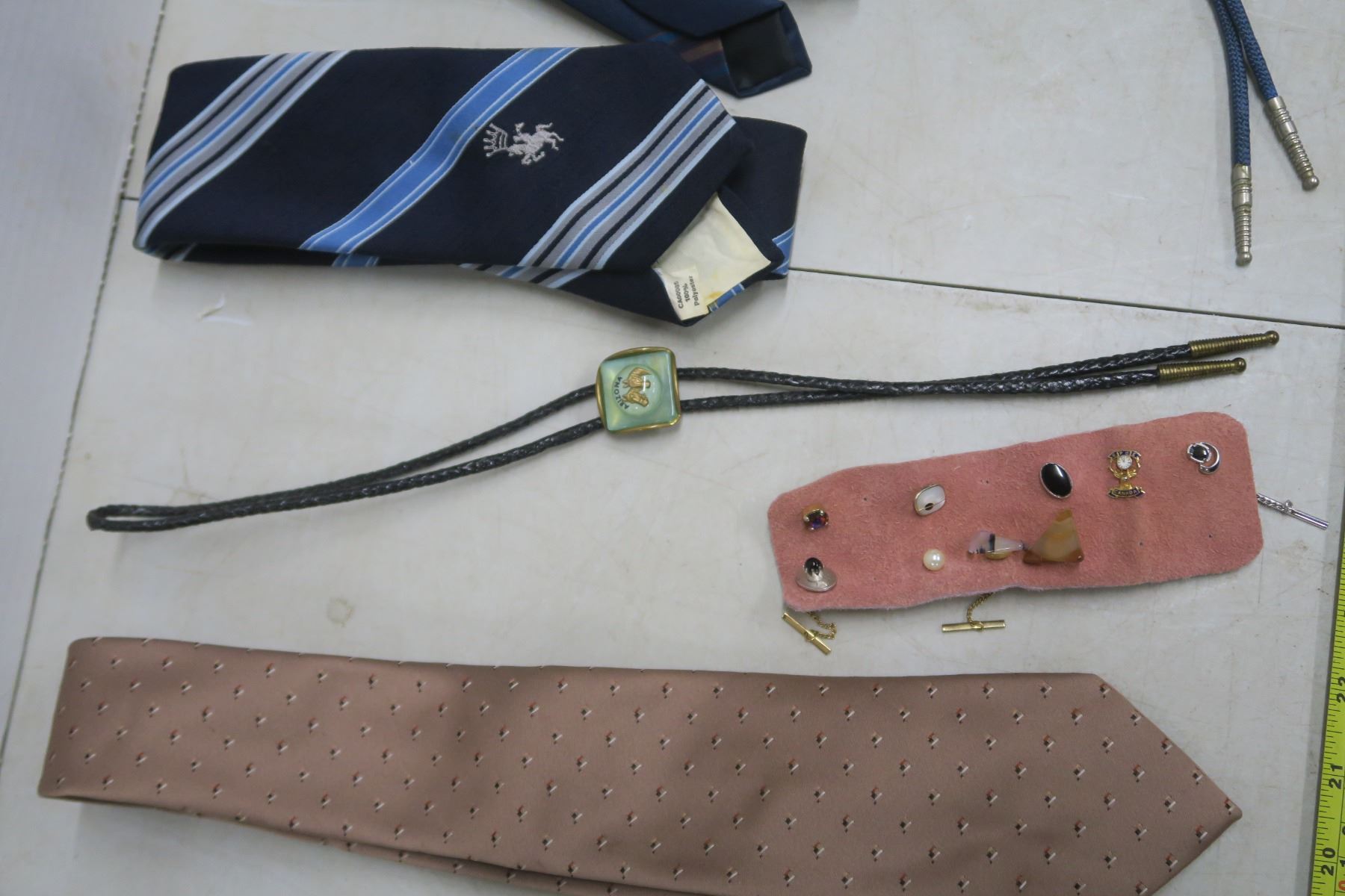 9 tie tacks, 2 bolo's, 3 ties