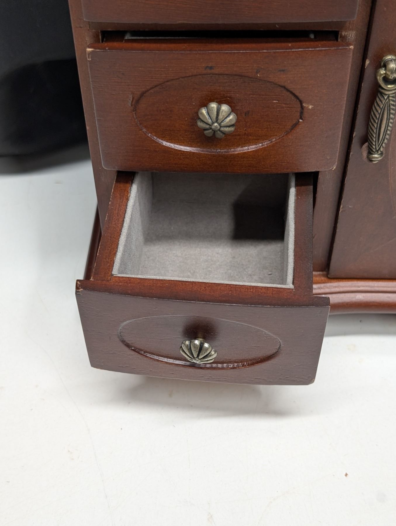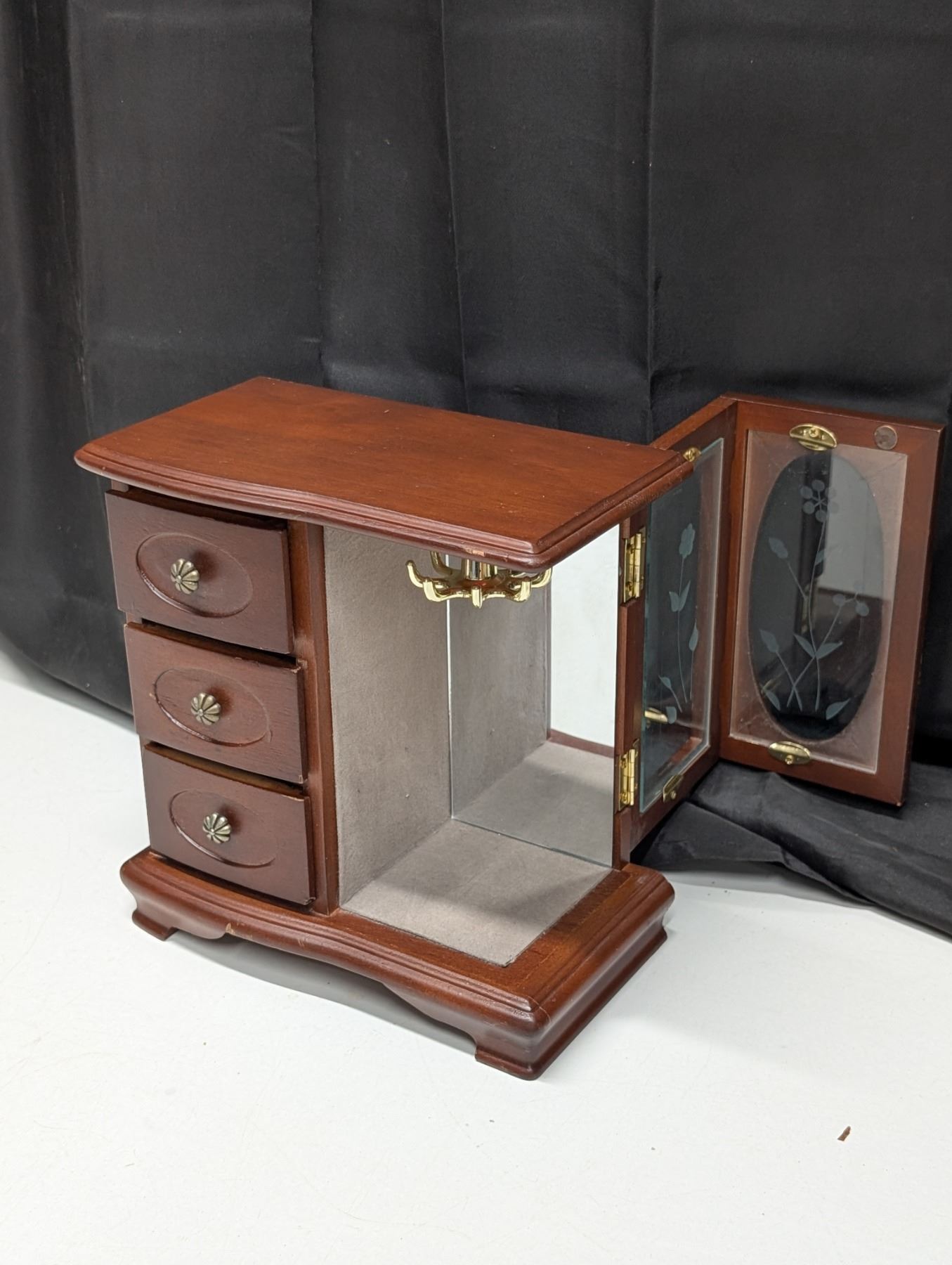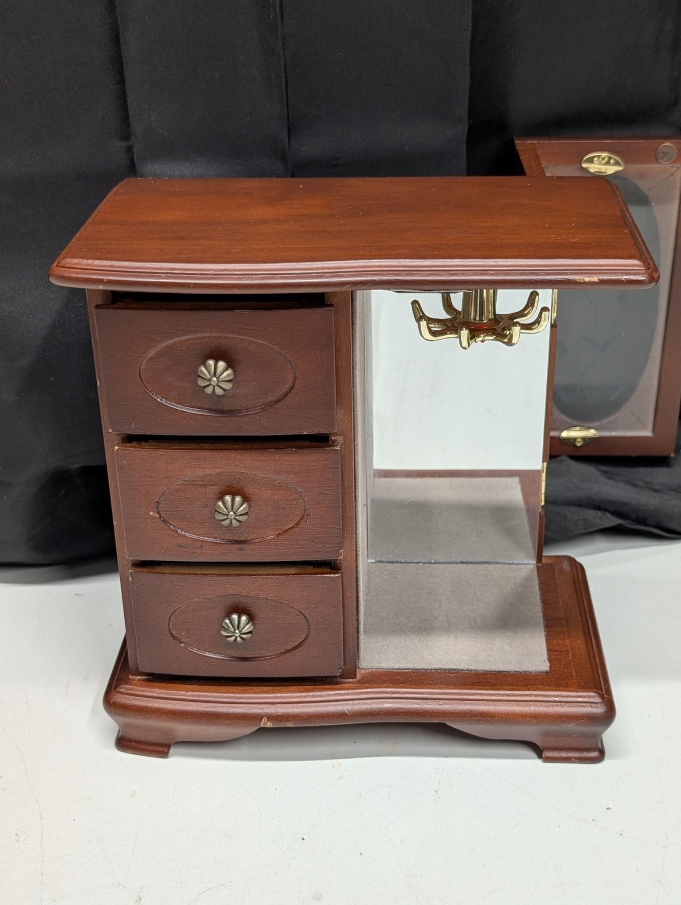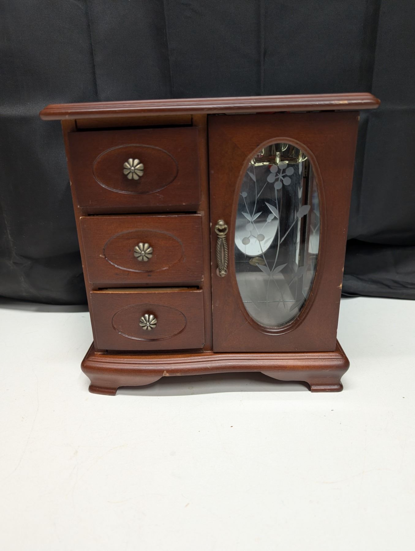 9"x9"x4" Wooden Jewelry Box w/ Necklace Hanger and Storage Drawers