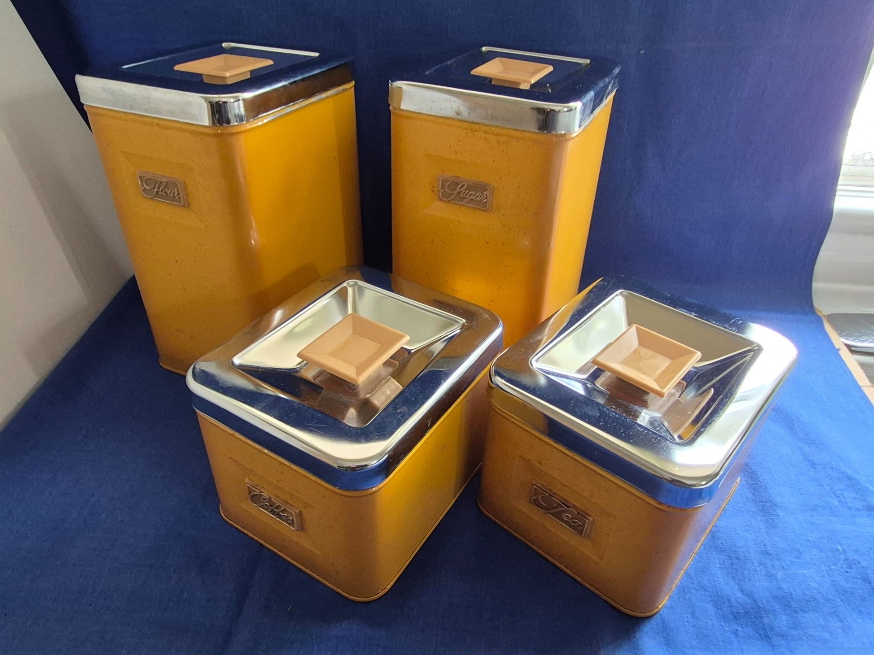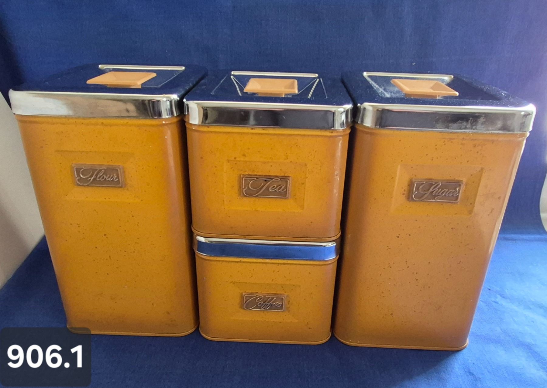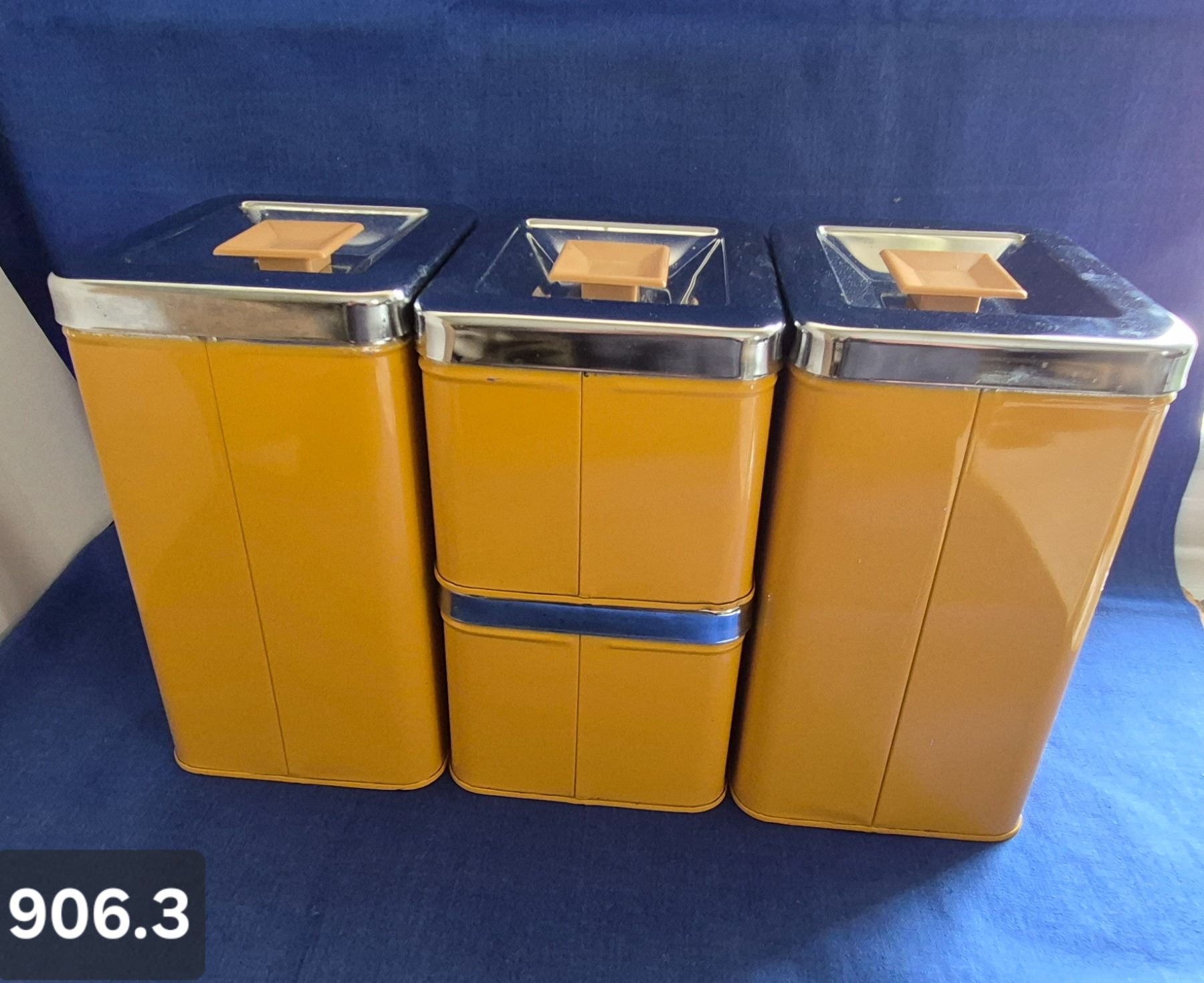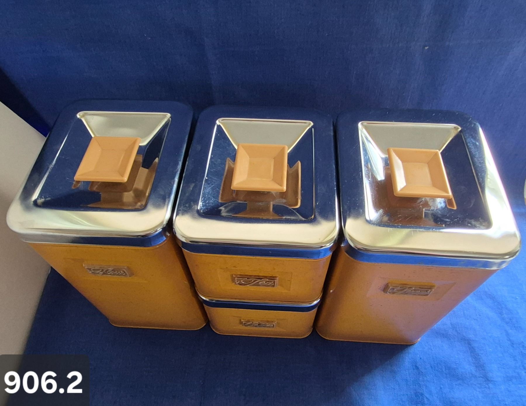 906. MCM 4-piece kitchen cannister set, gold with speckled fronts