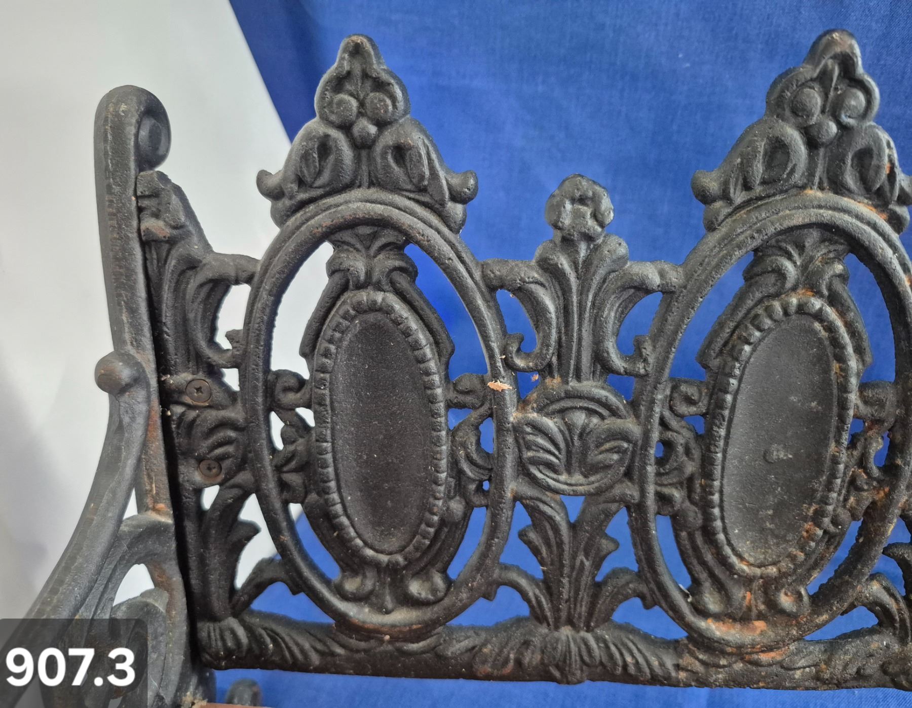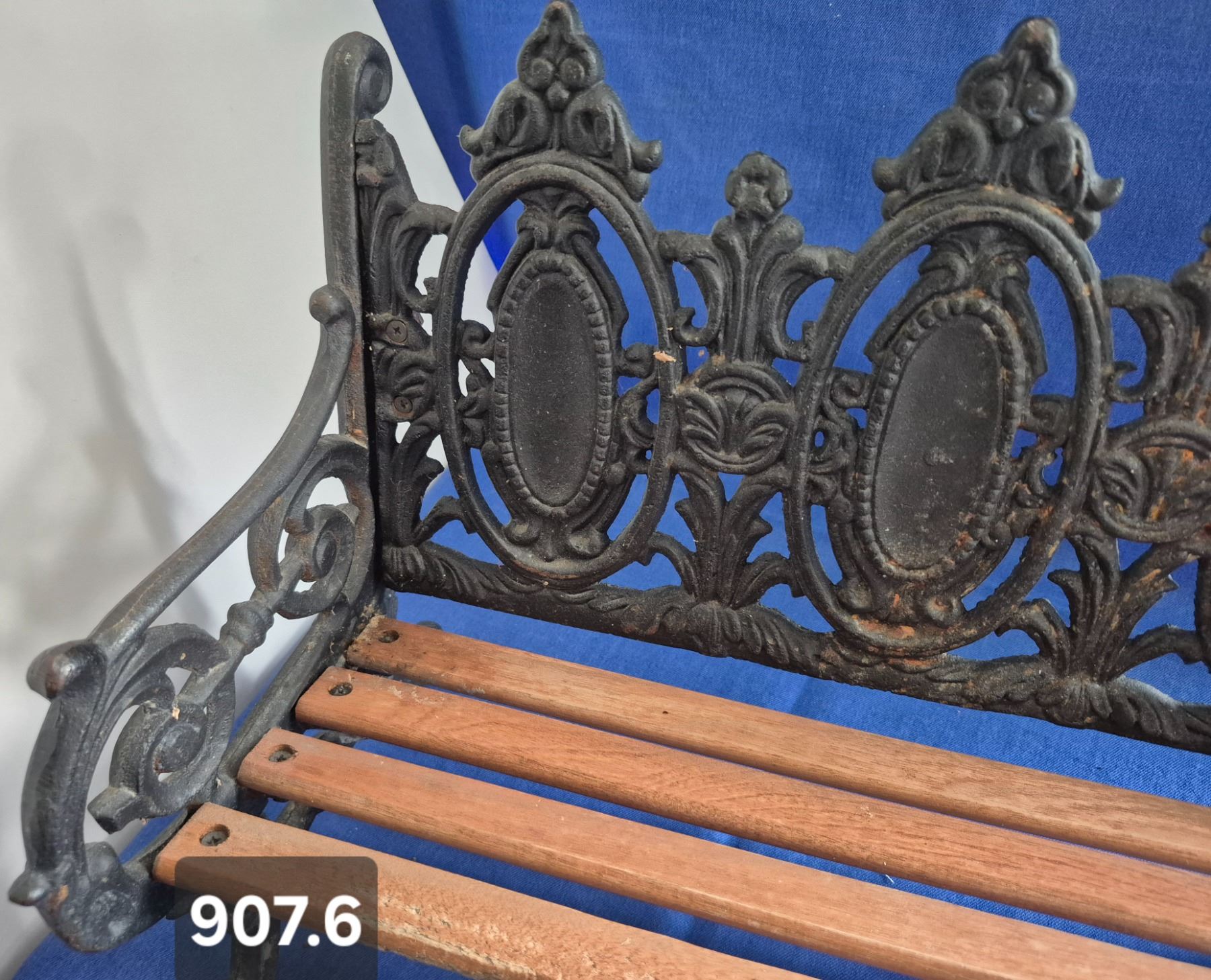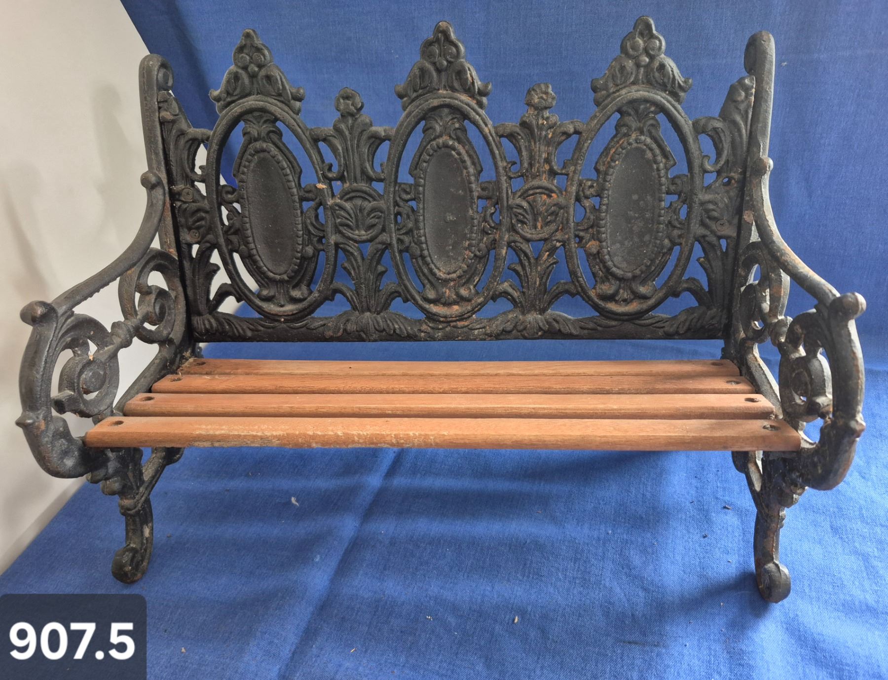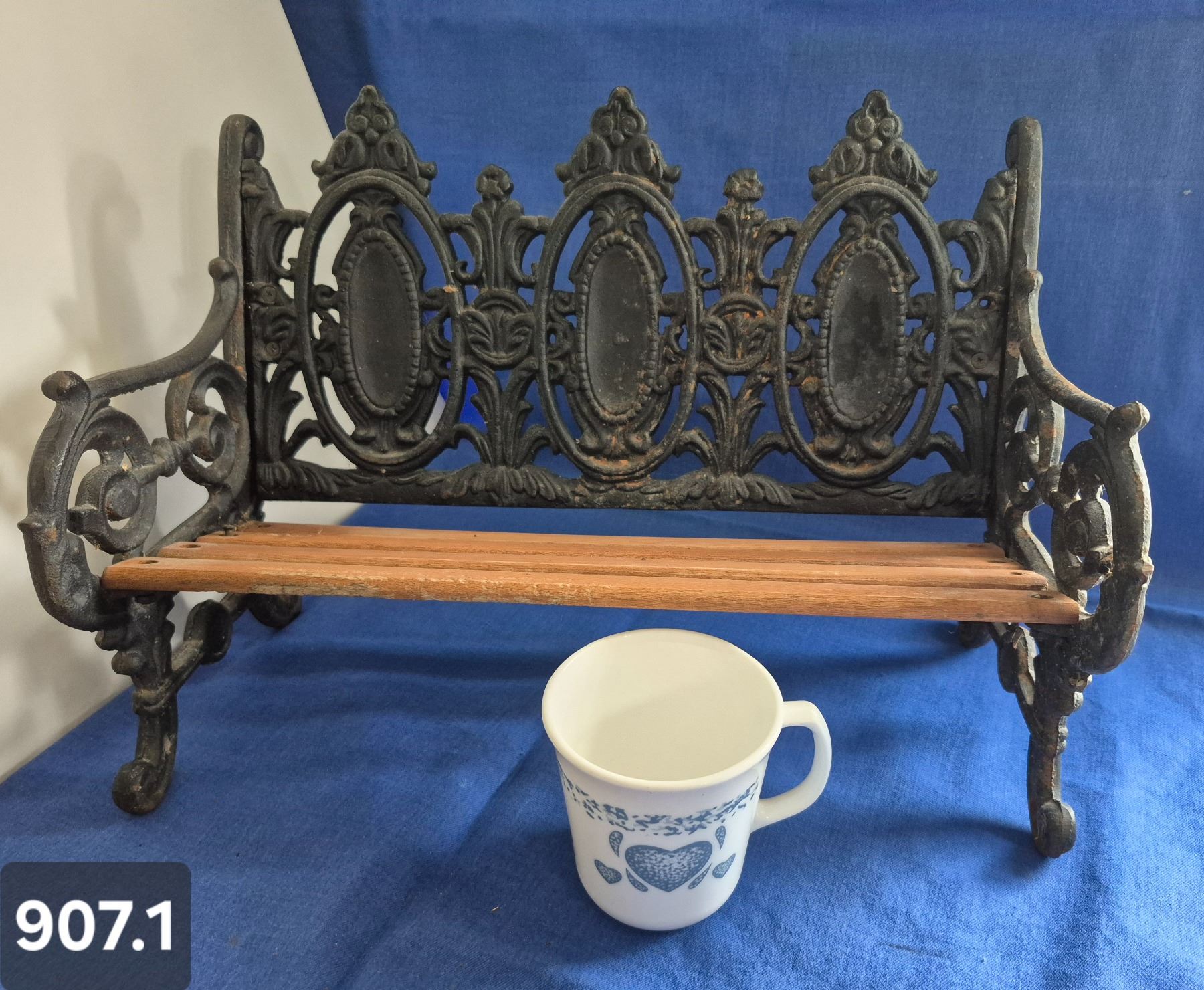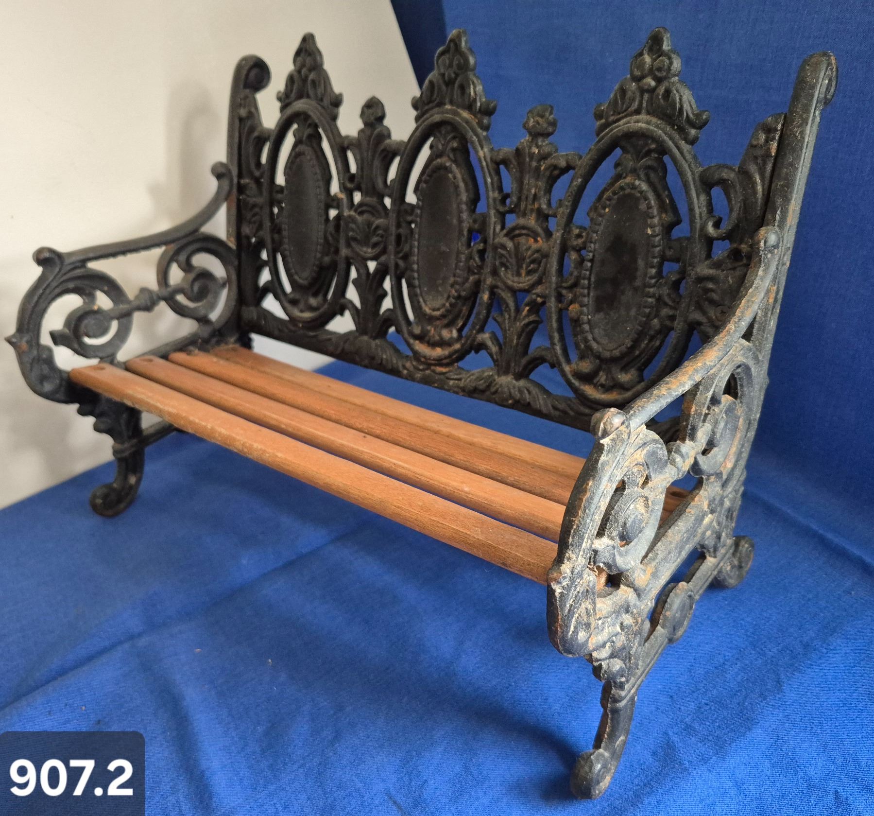 907. Vintage cast iron & wood miniature park bench, heavy, 16 inches long