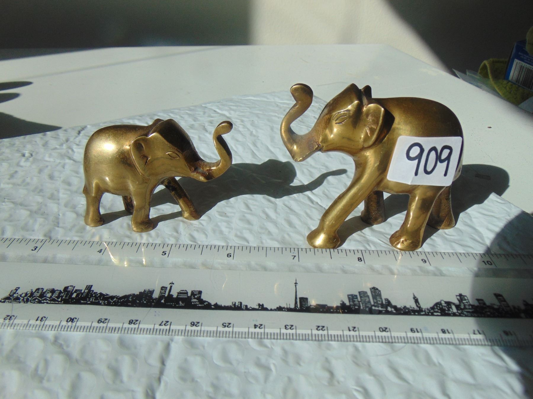 909 TWO SOLID BRASS ELEPHANT FIGURINES