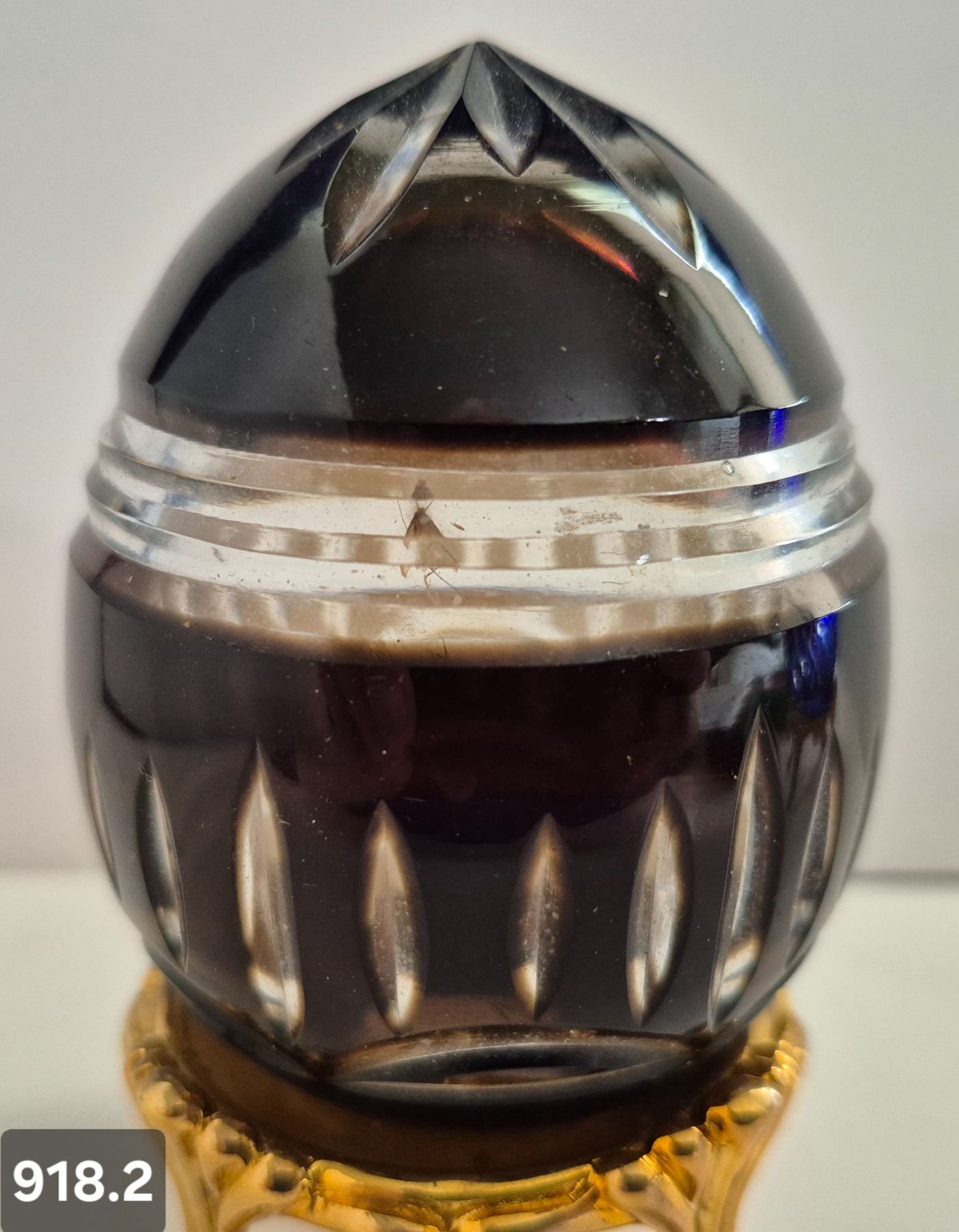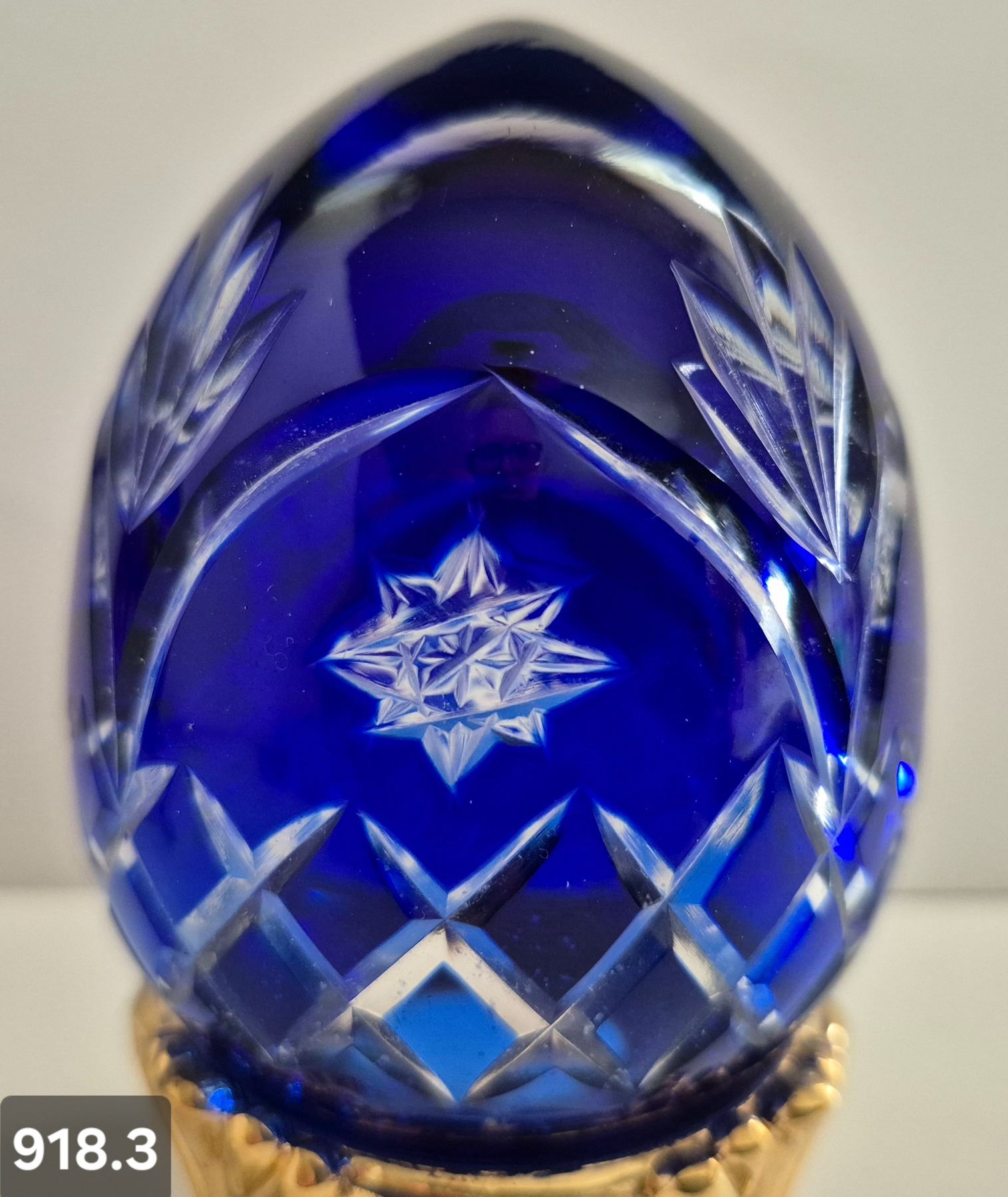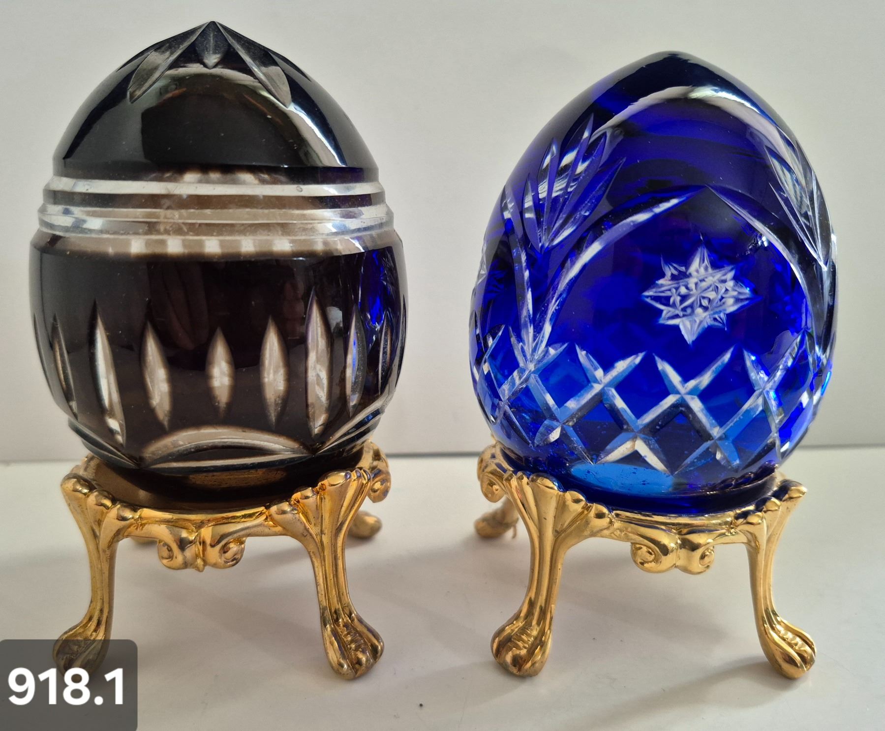 918. Pair of Bohemian cut glass MCM eggs - 24k gold-plated stand, from a large collection