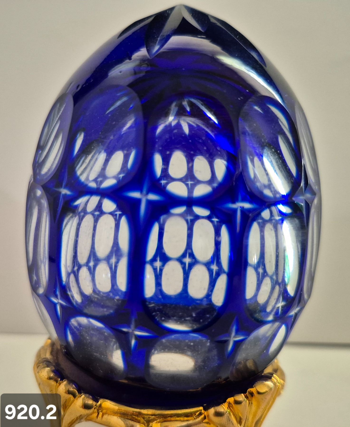 920. Pair of Bohemian cut glass MCM eggs - 24k gold-plated stand, from a large collection
