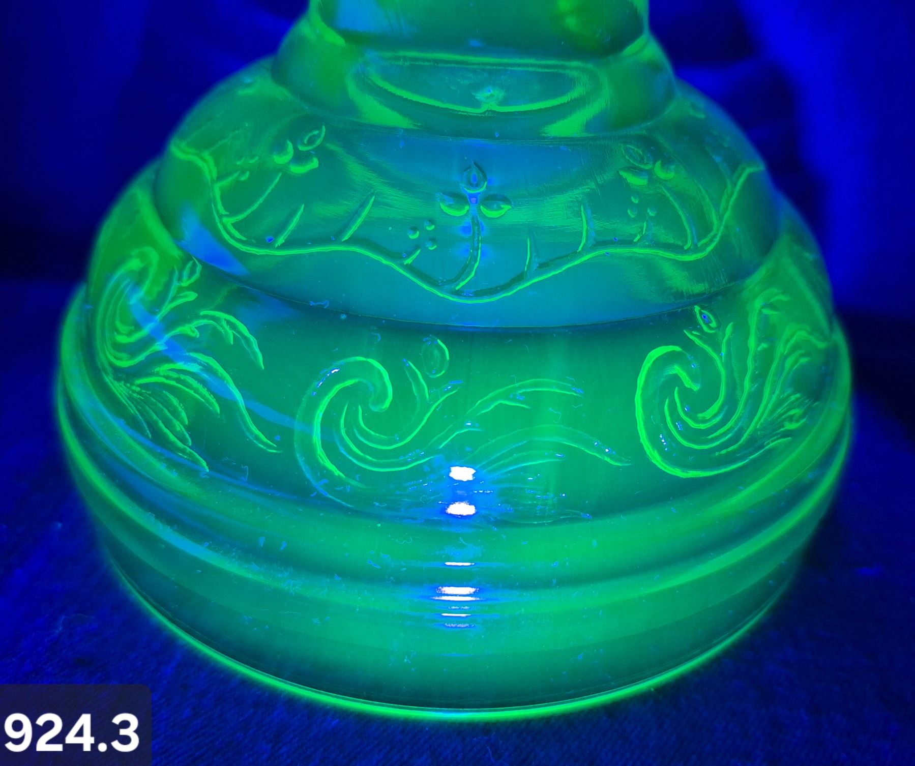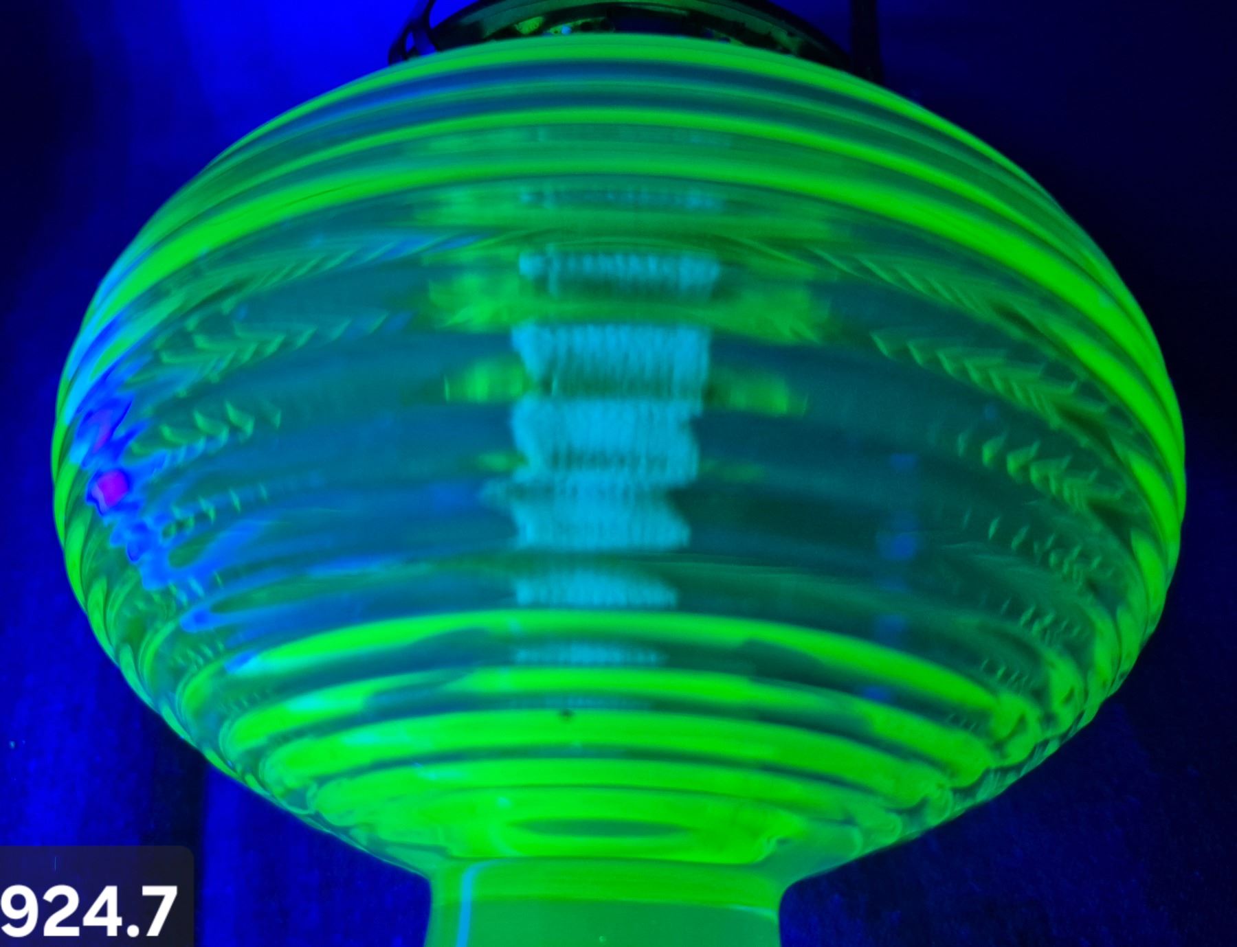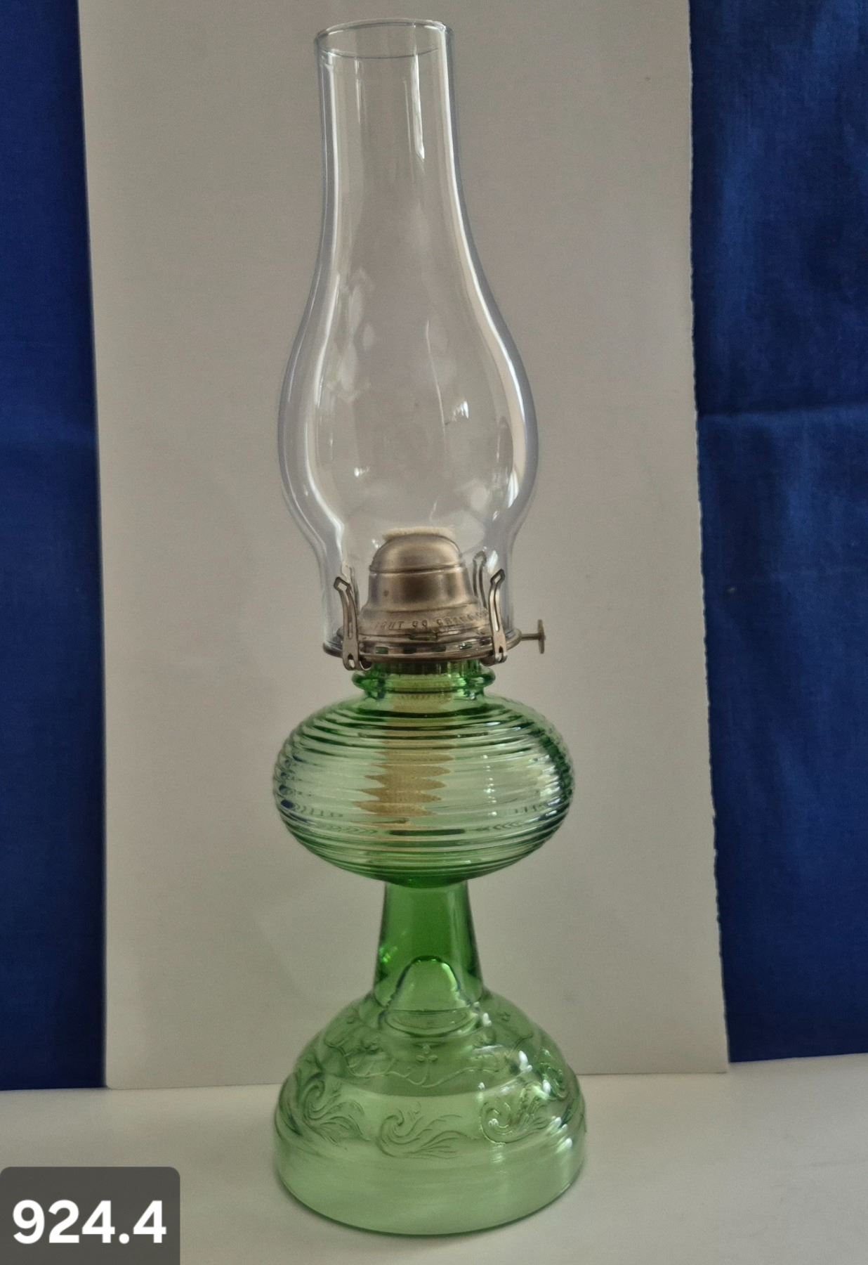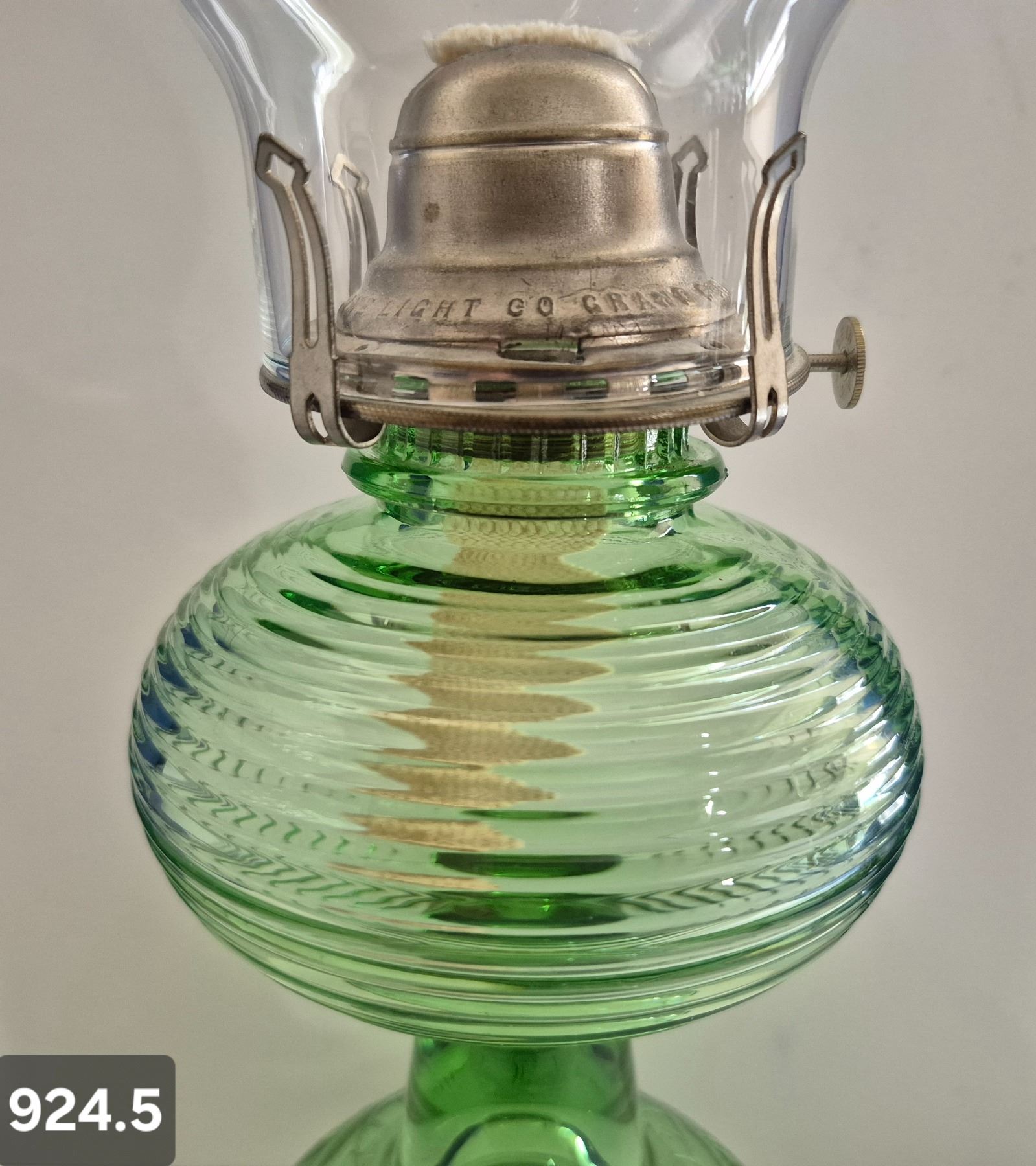 924. Uranium glass oil lamp - behive pattern, RARE to be uranium glass in this pattern - MINT CONDITION