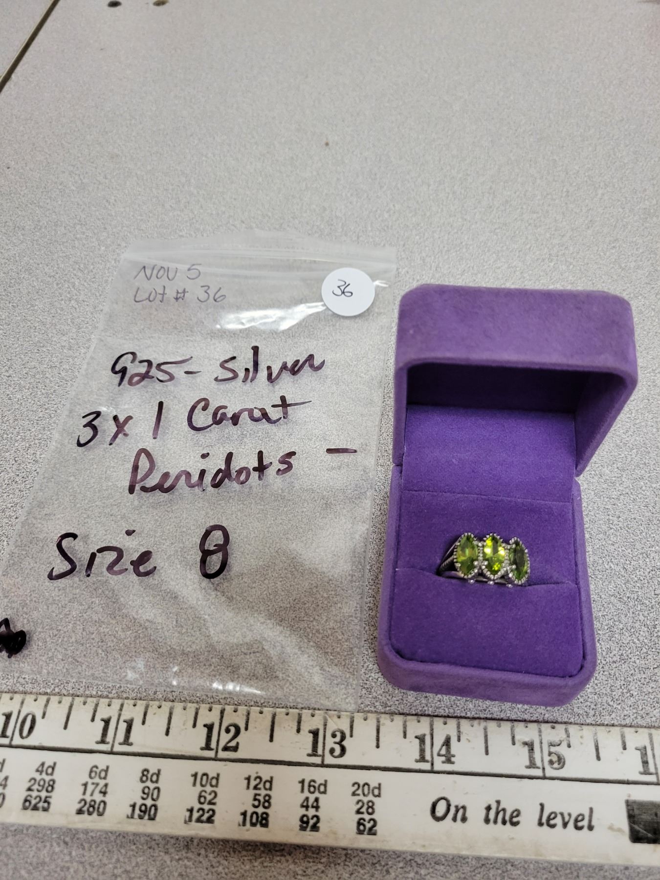 925 Silver, 3 x 1 Carat Peridots, Size 8