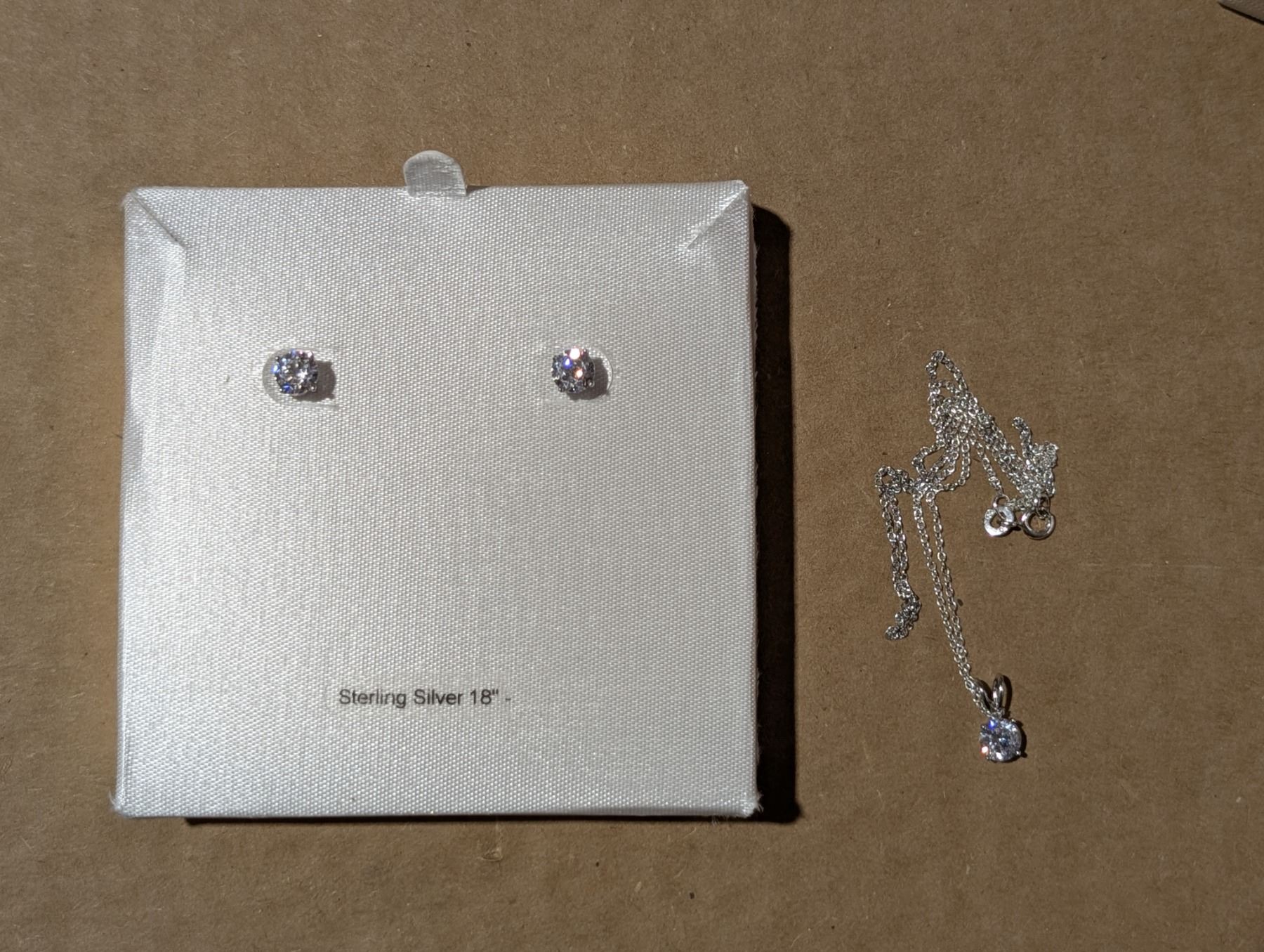 .925 Silver Necklace 18" w/ .925 Silver Earrings