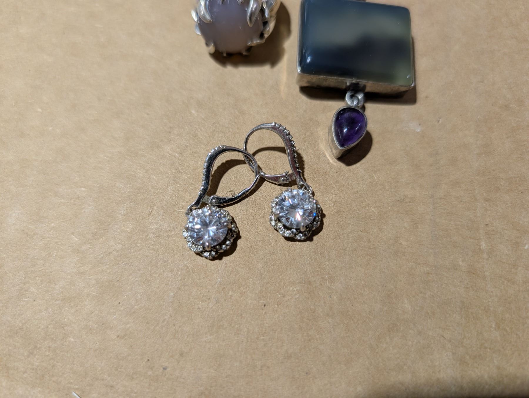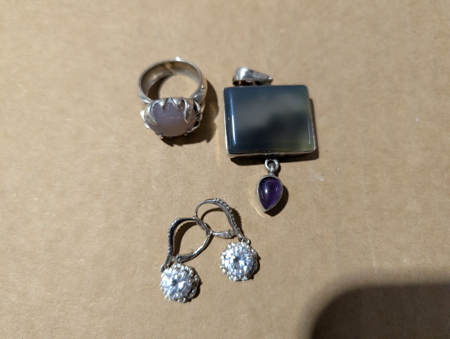 .925 Silver Ring w/ Gem Stone Design w/ .925 Earrings and .925 Pendant