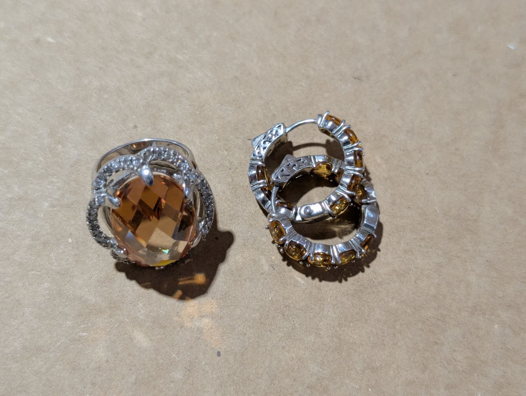 .925 Silver Ring w/ Gem Stone Design w/ .925 Earrings