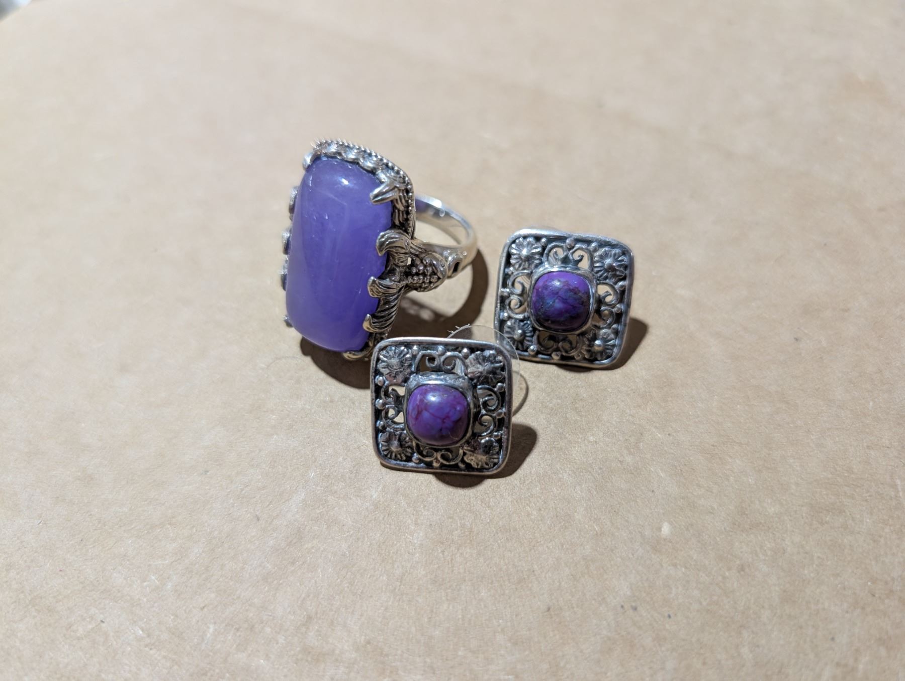 .925 Silver Ring w/ Gem Stone Design w/ .925 Earrings