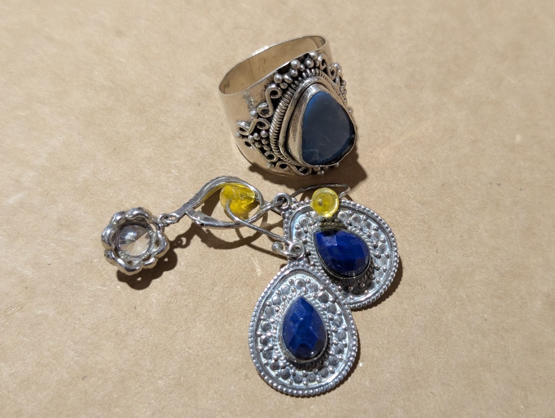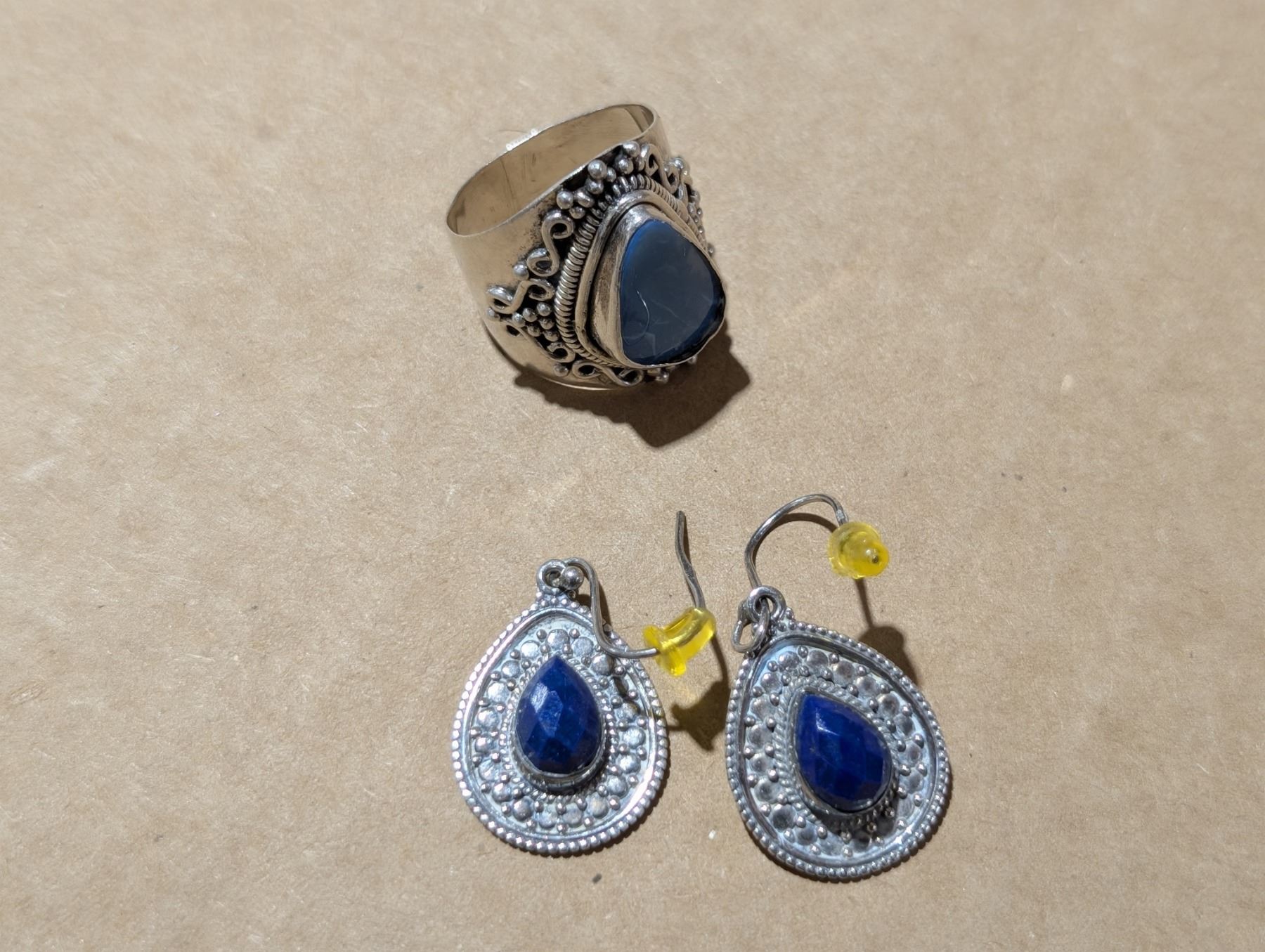 .925 Silver Ring w/ Gem Stone Design w/ .925 Earrings