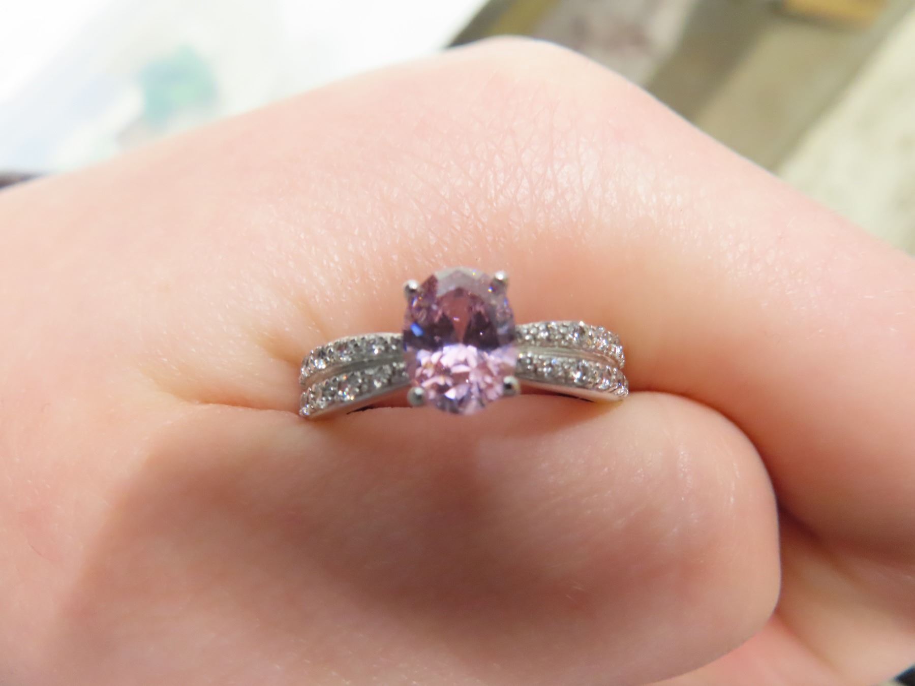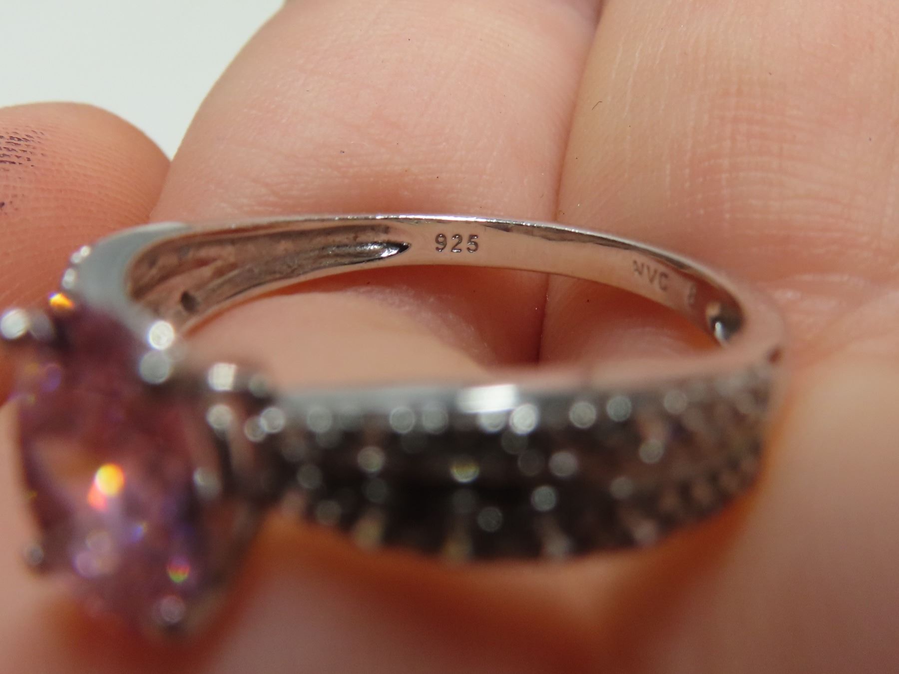 925 Silver Ring w/ Pink Large Stone & Small White Stones (Size 8)