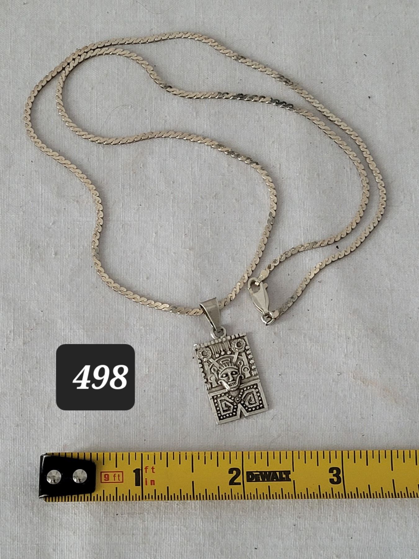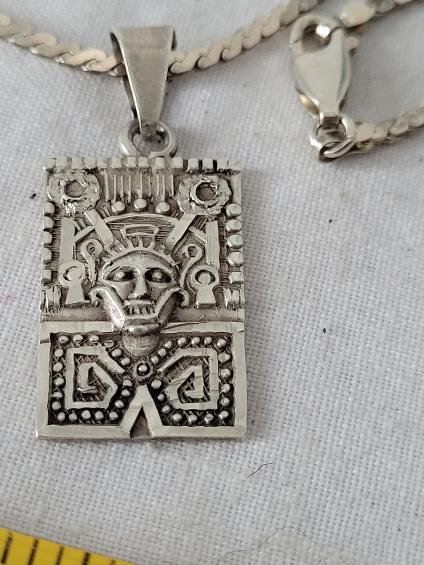 925 silver Aztec “Mictlantechuhtli” god of the underworld on 22” serpentine chain with lobster clasp.