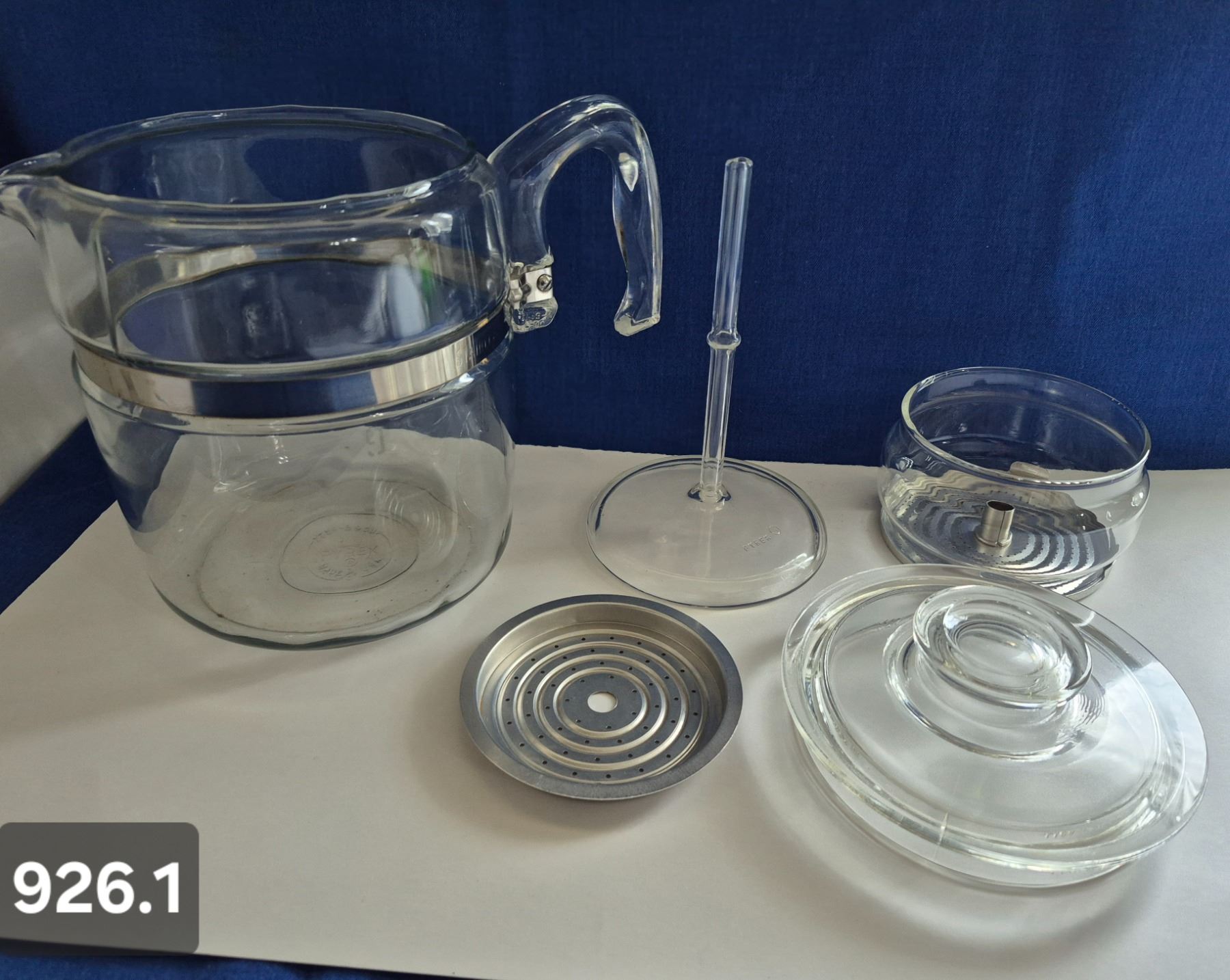 926. Pyrex 9-cup glass coffee pot - COMPLETE AND MINT!