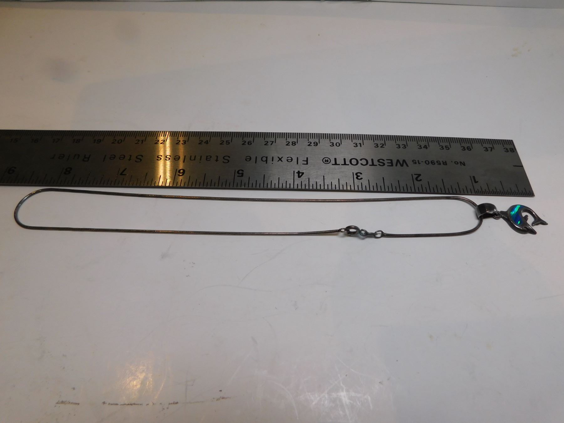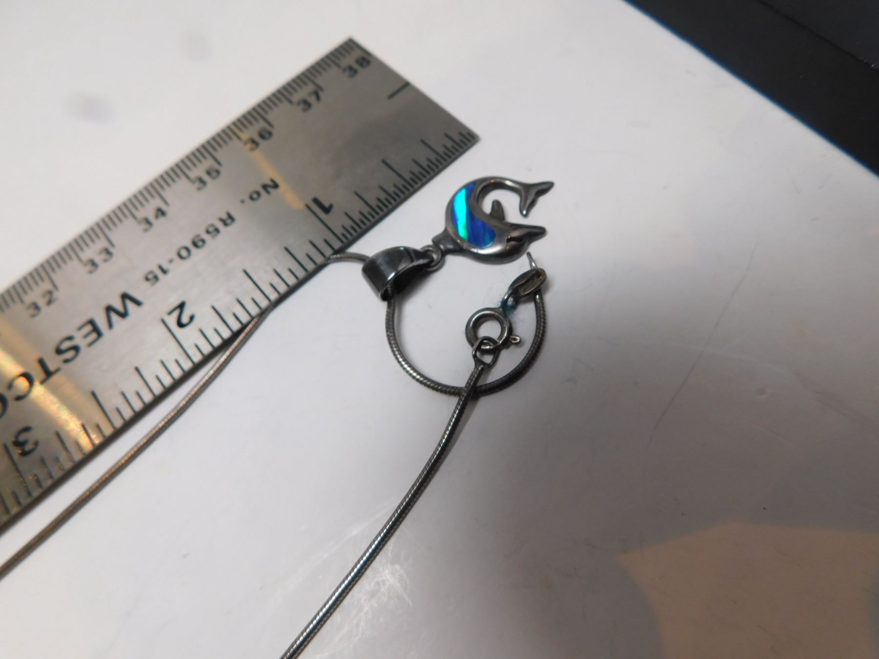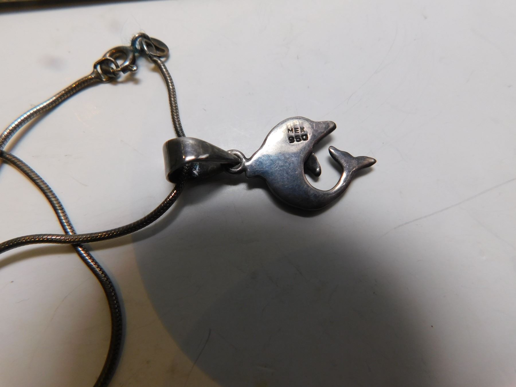 950 SILVER MEXICO FIRE OPAL DOLPHIN PENDANT ON STERLING CHAIN