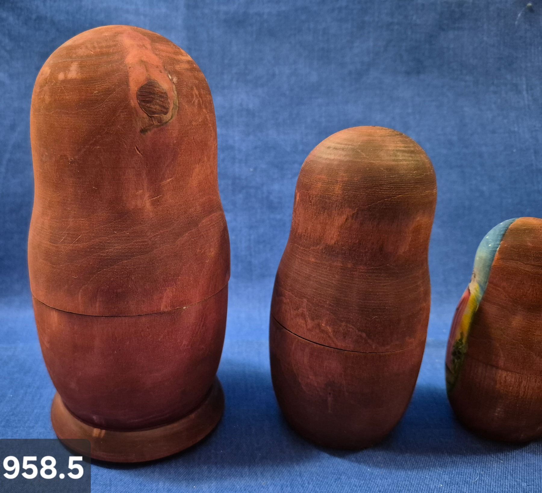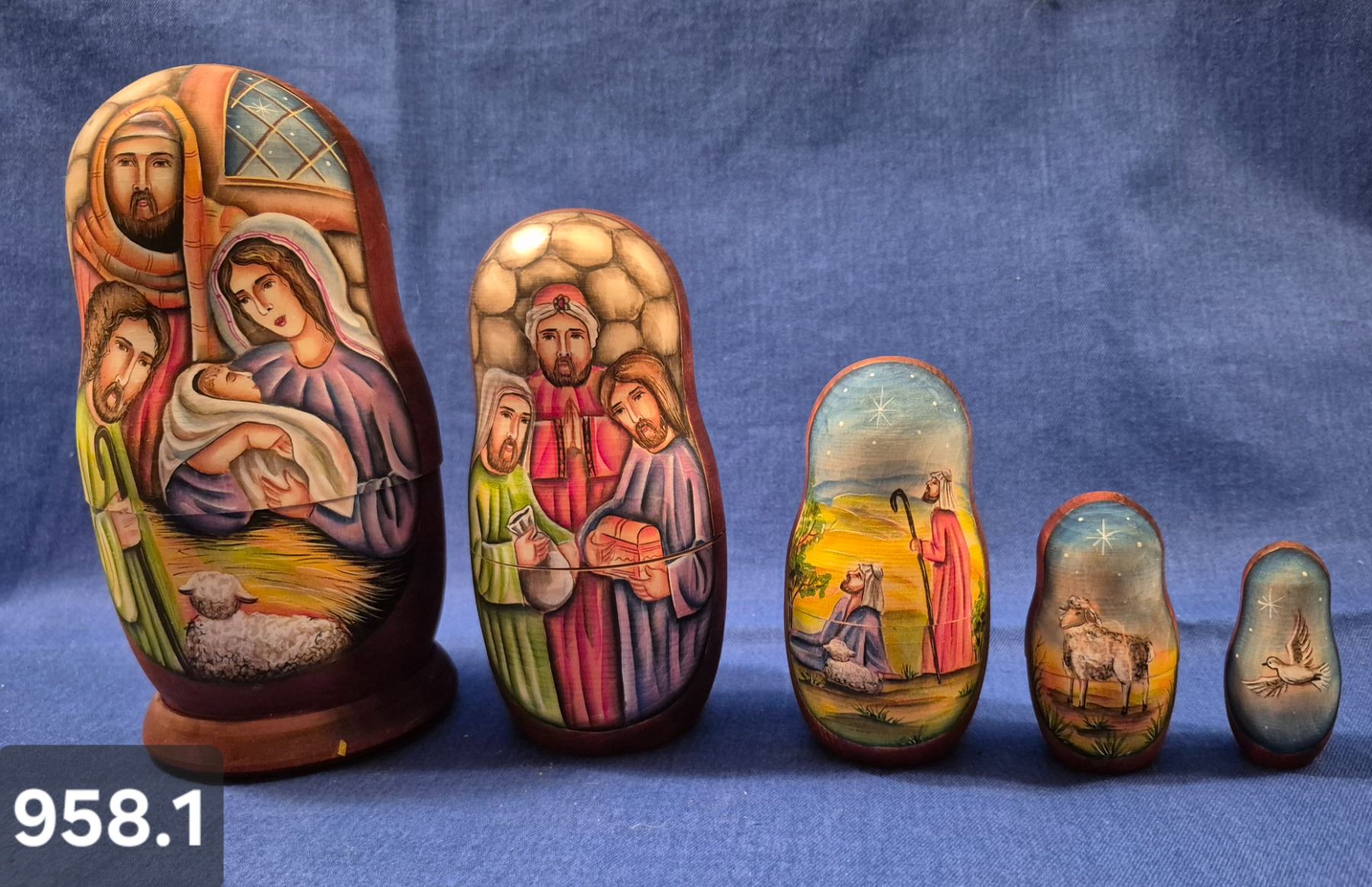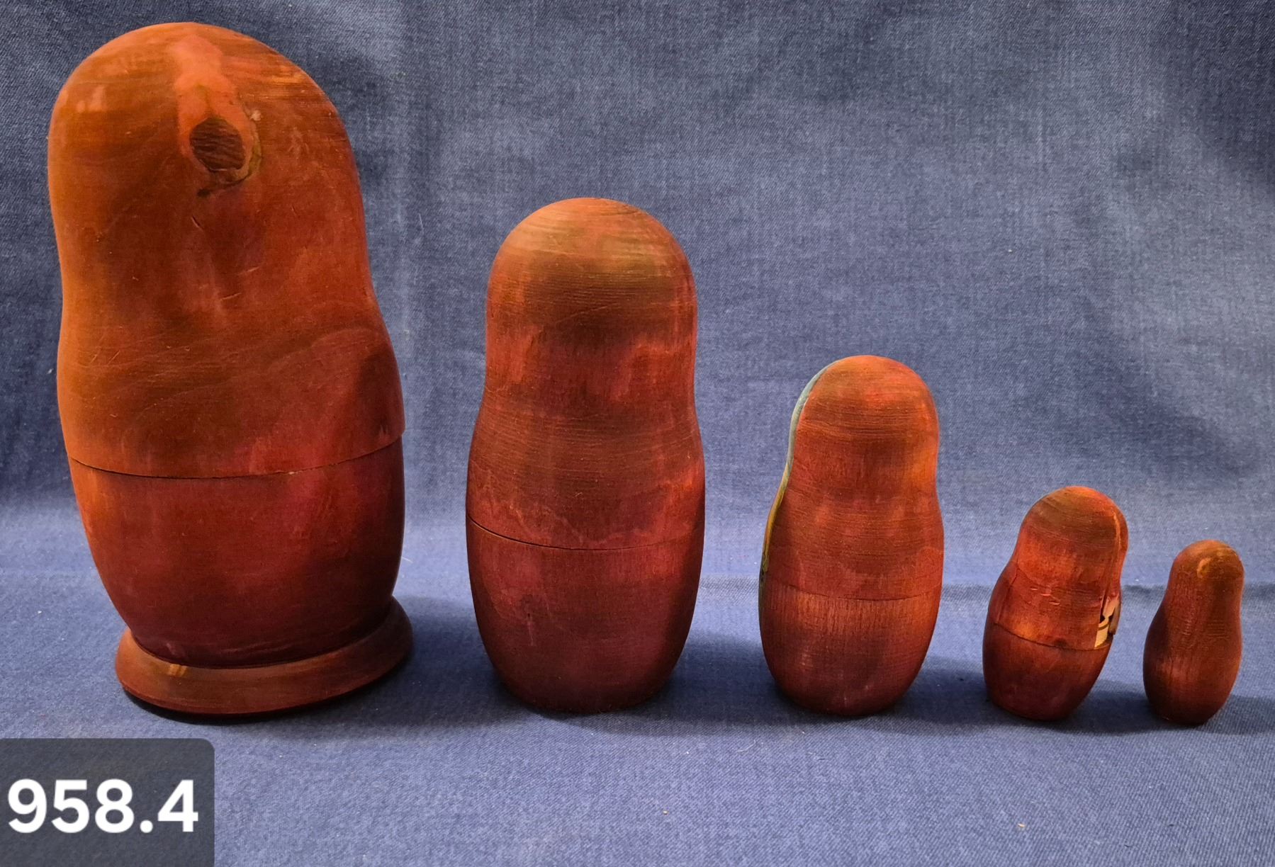 958. Set of 5 nesting dolls, hand-painted, little damage to back of second from the smallest