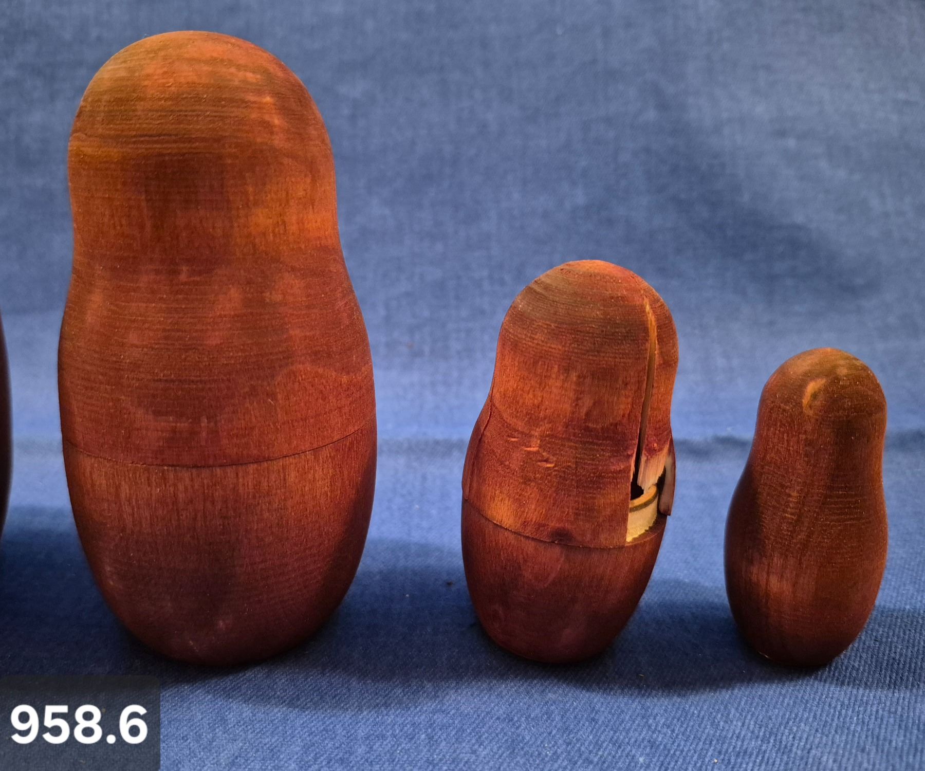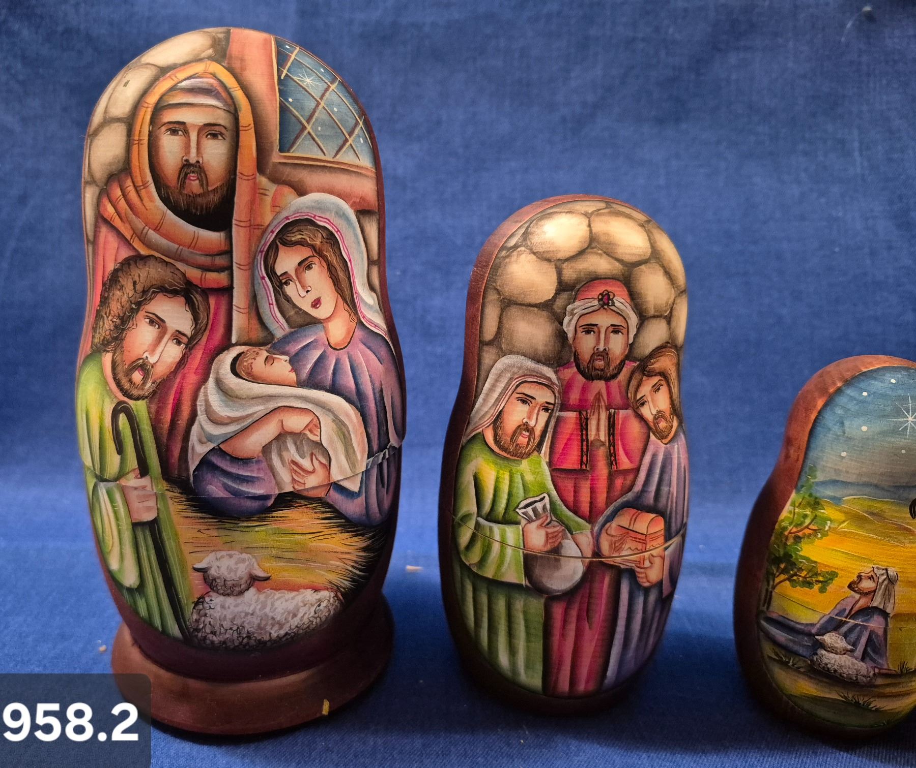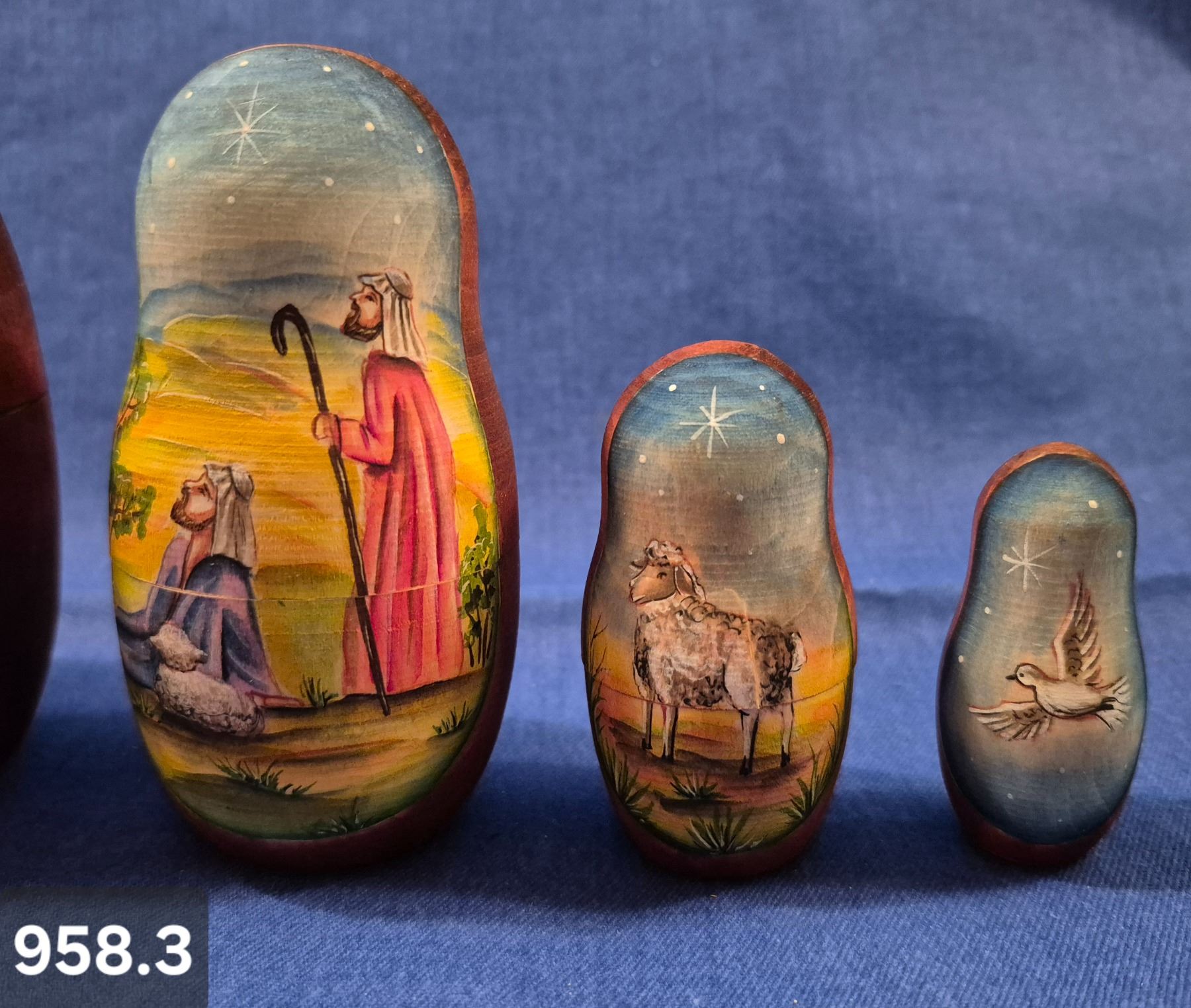958. Set of 5 nesting dolls, hand-painted, little damage to back of second from the smallest