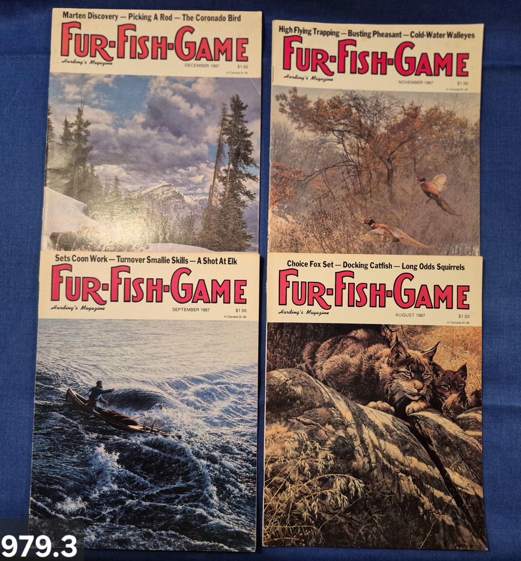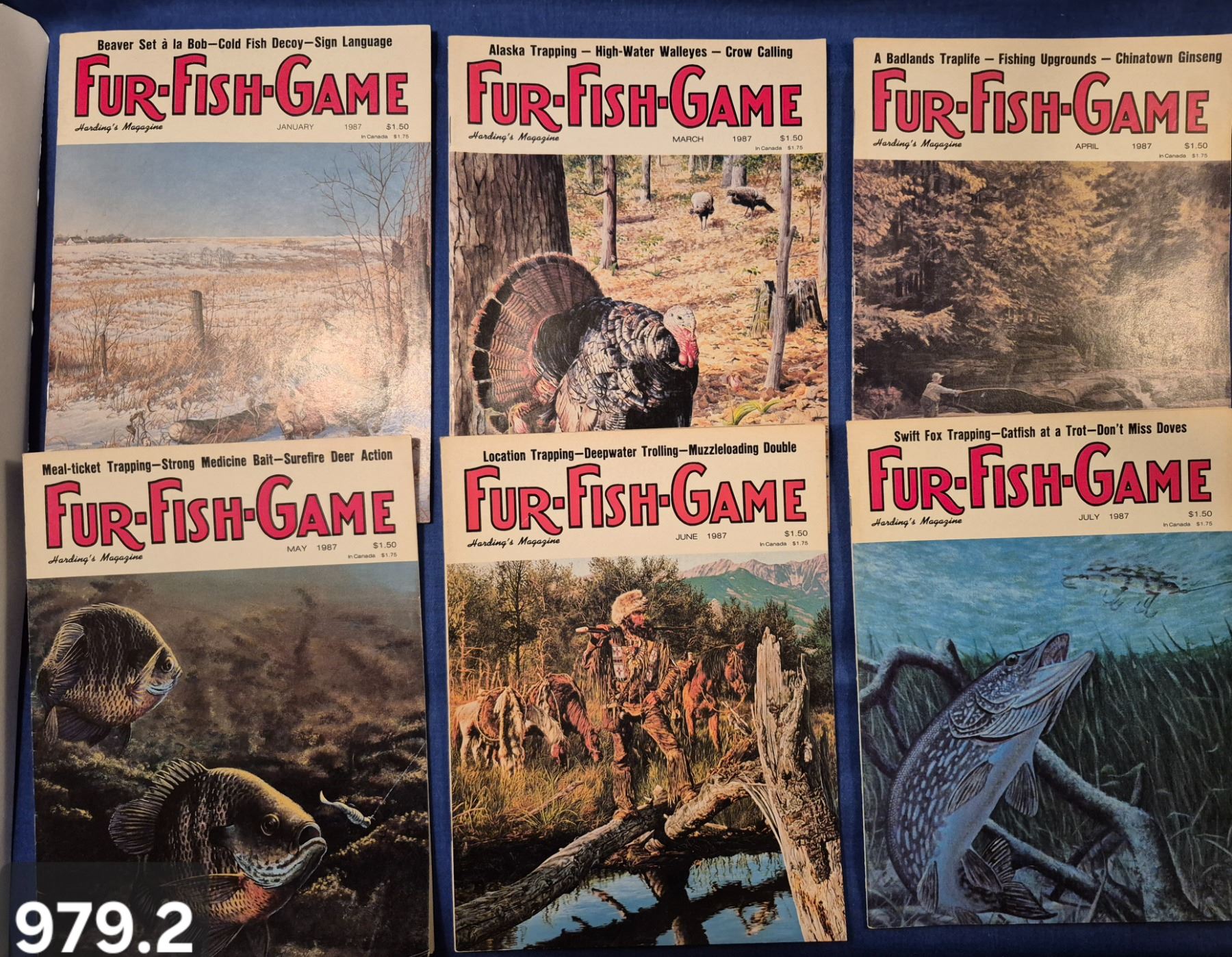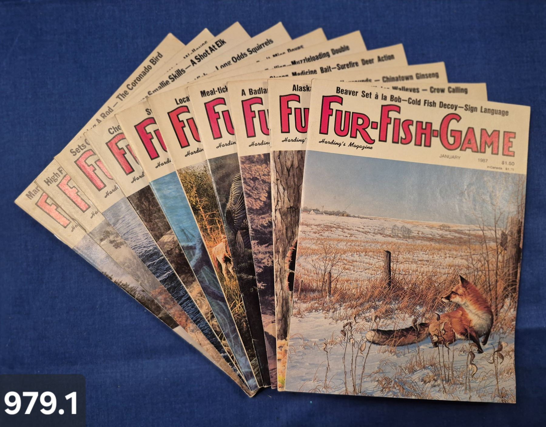 979. 10 Issues of 1987 Fur-Fish-Game outdoor sporting magazines, most in excellent flat condition, lots of gun adds