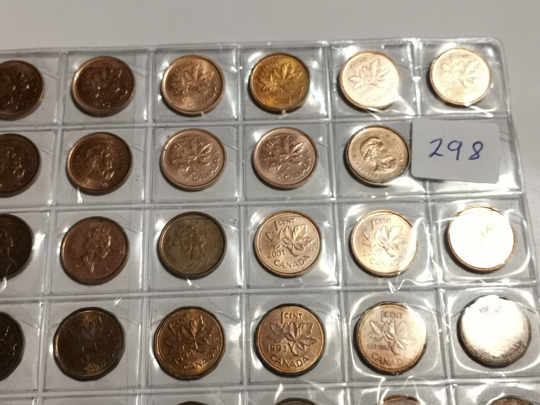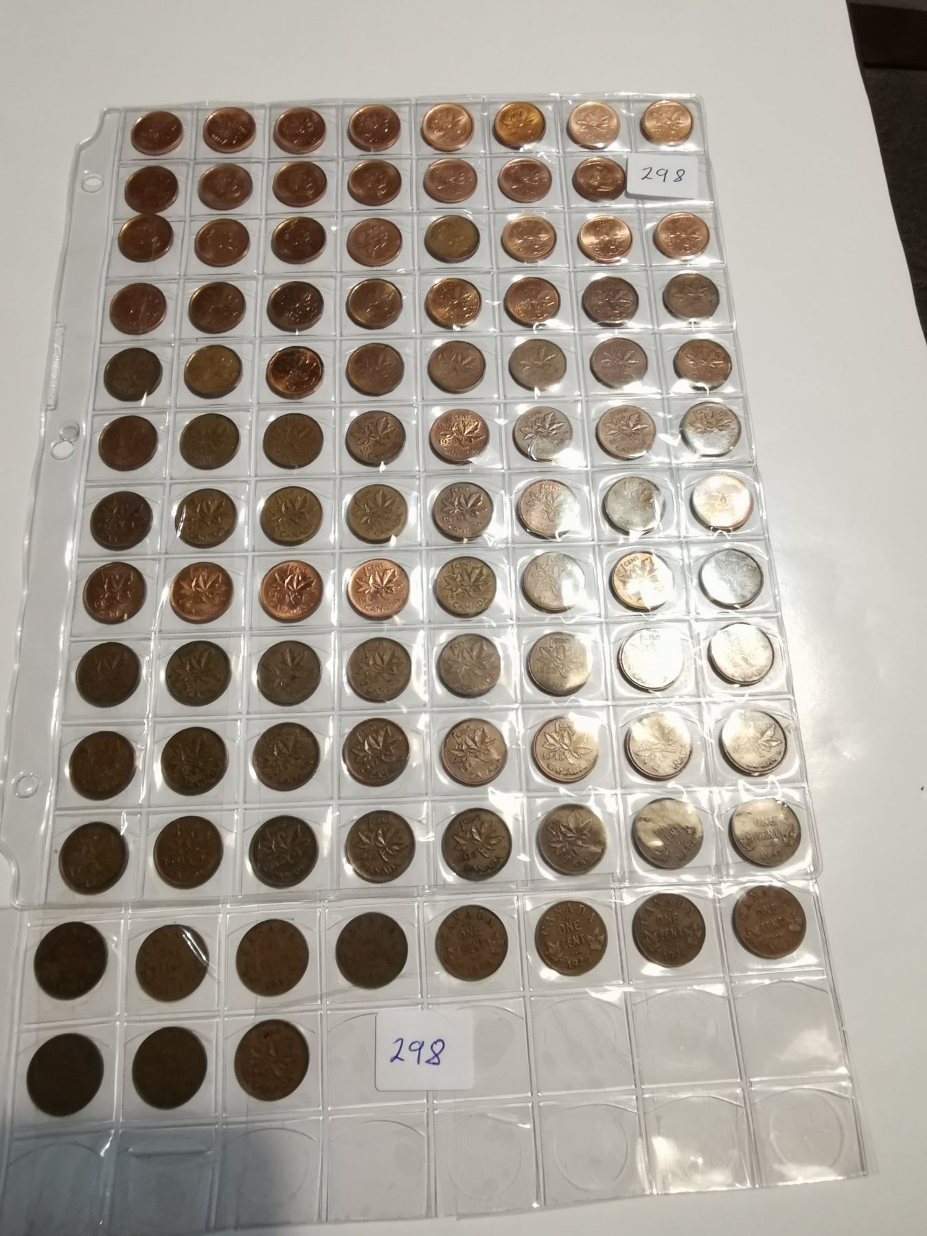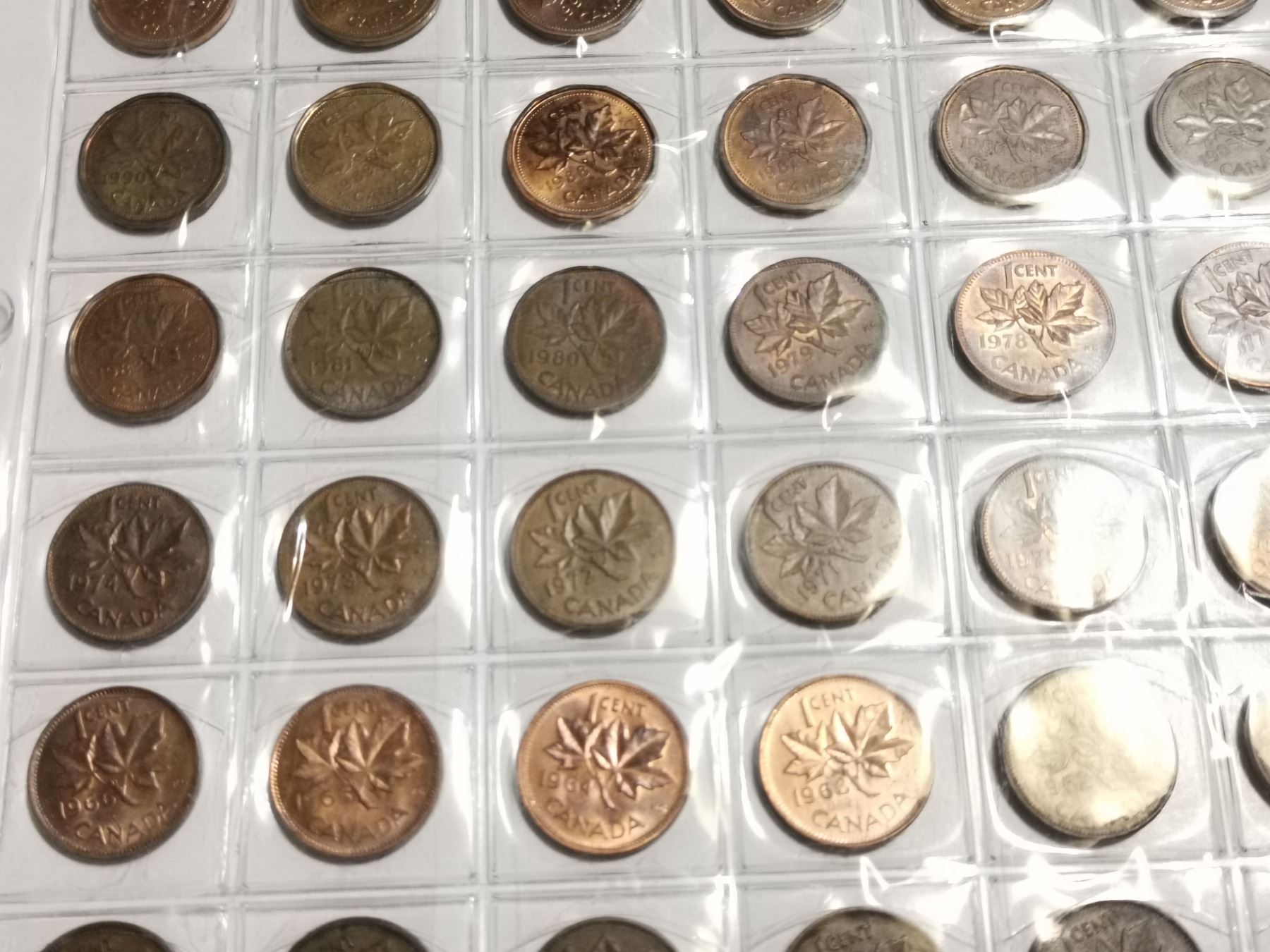 98 Different 1 cent coins, 1927-2012 with varieties missing one
