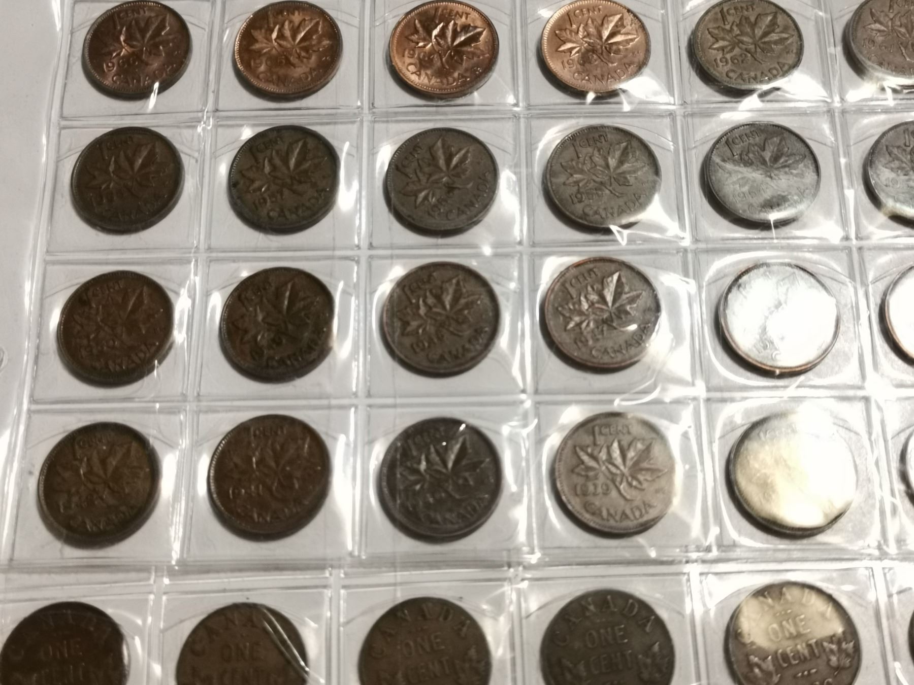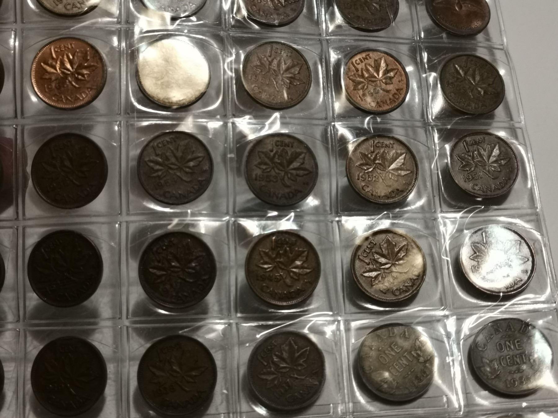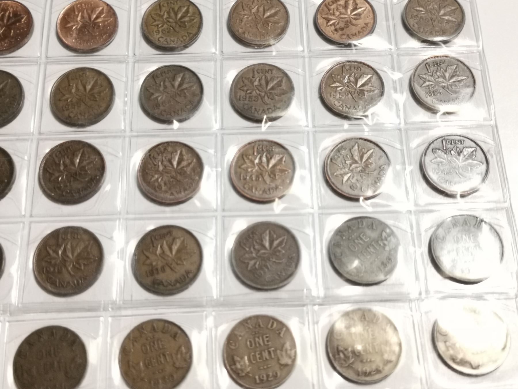 98 Different 1 cent coins, 1927-2012 with varieties missing one