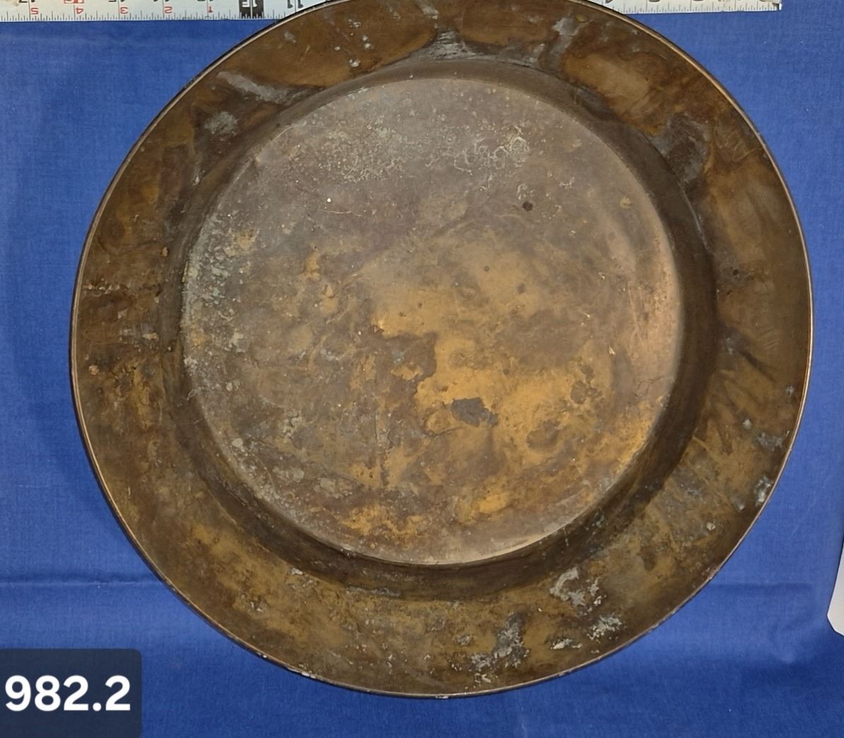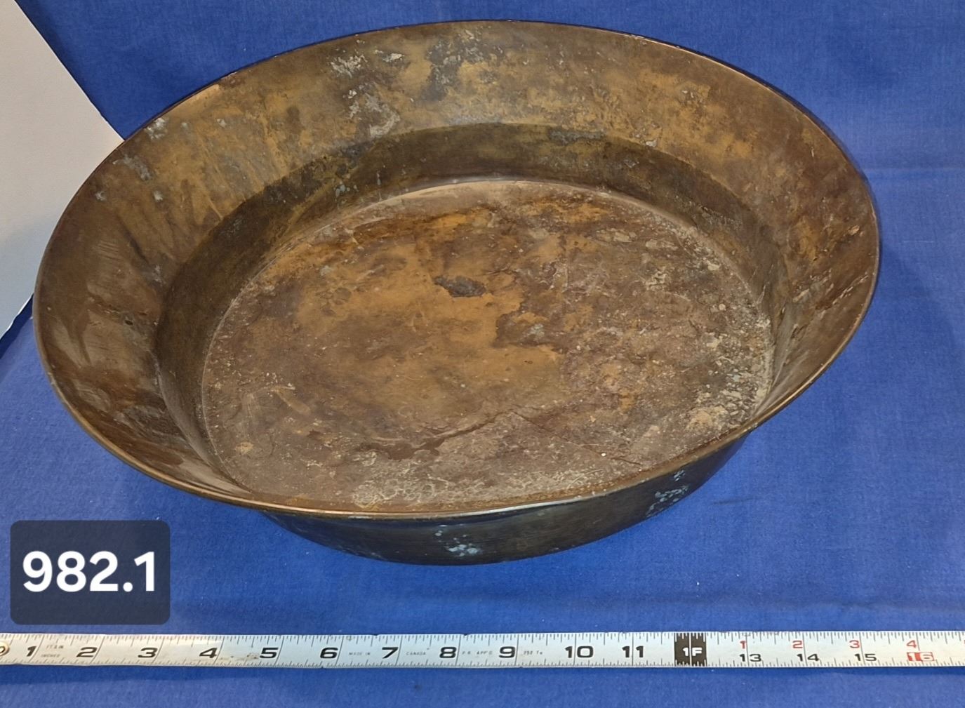 982. Antique solid brass pan for gold-panning, great shape for age, 3 3/4 inches deep, 16 inches acr