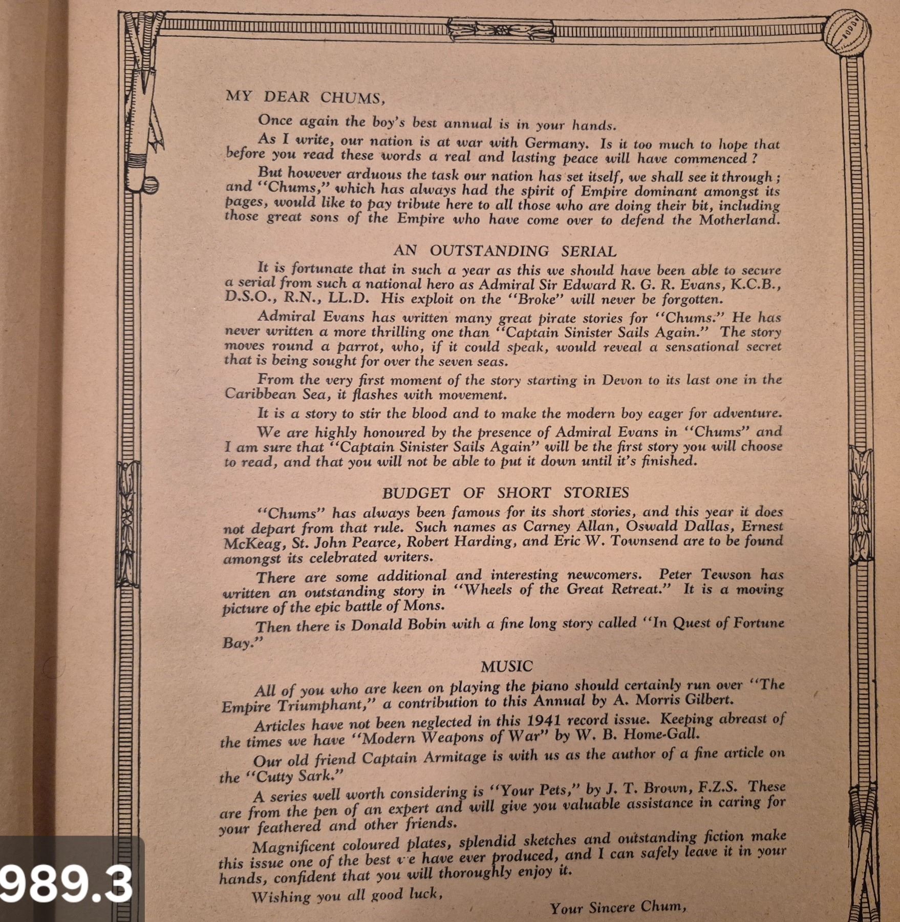 989. Vintage "Chums" book, not in great shape, but I think it's all there