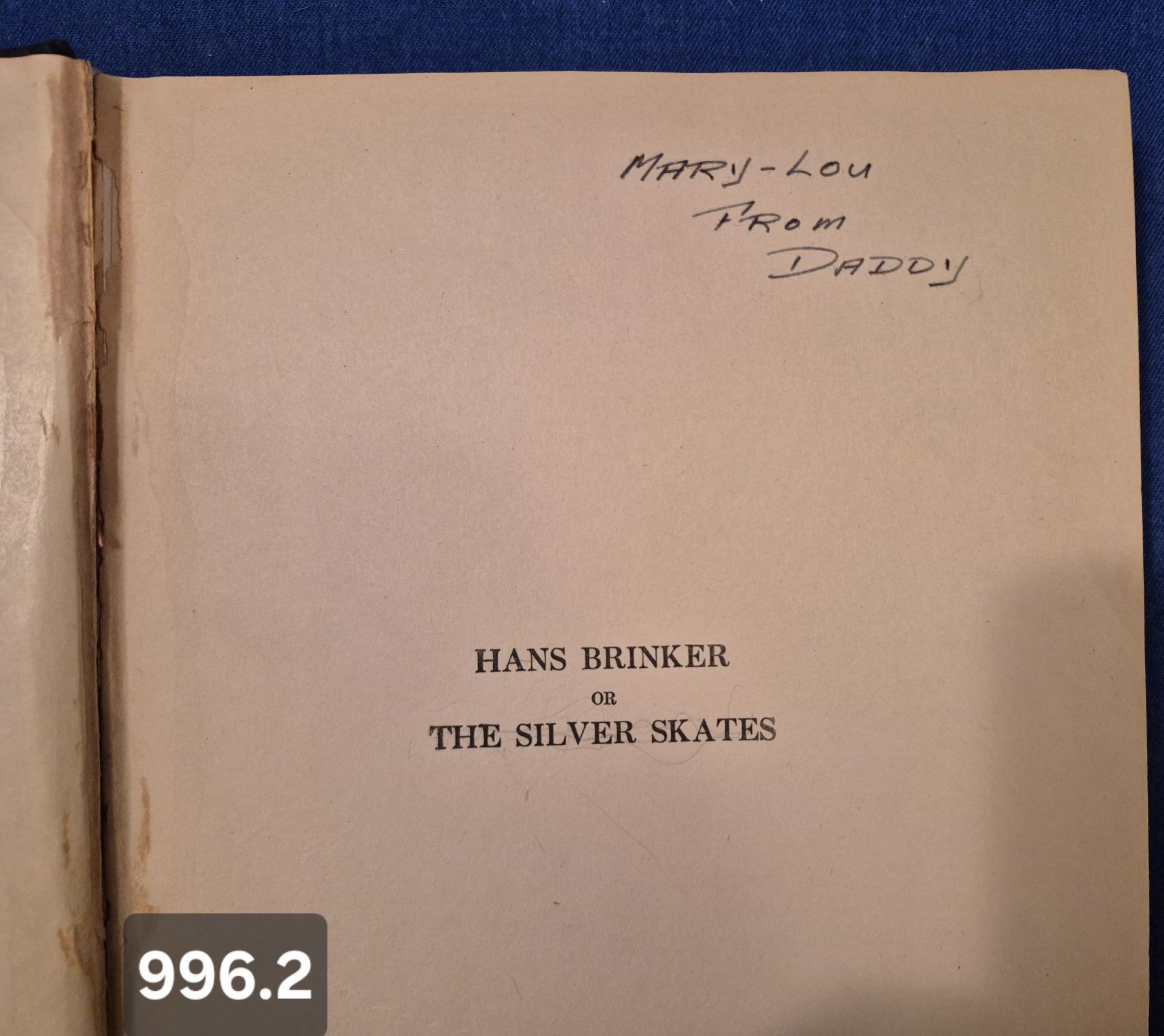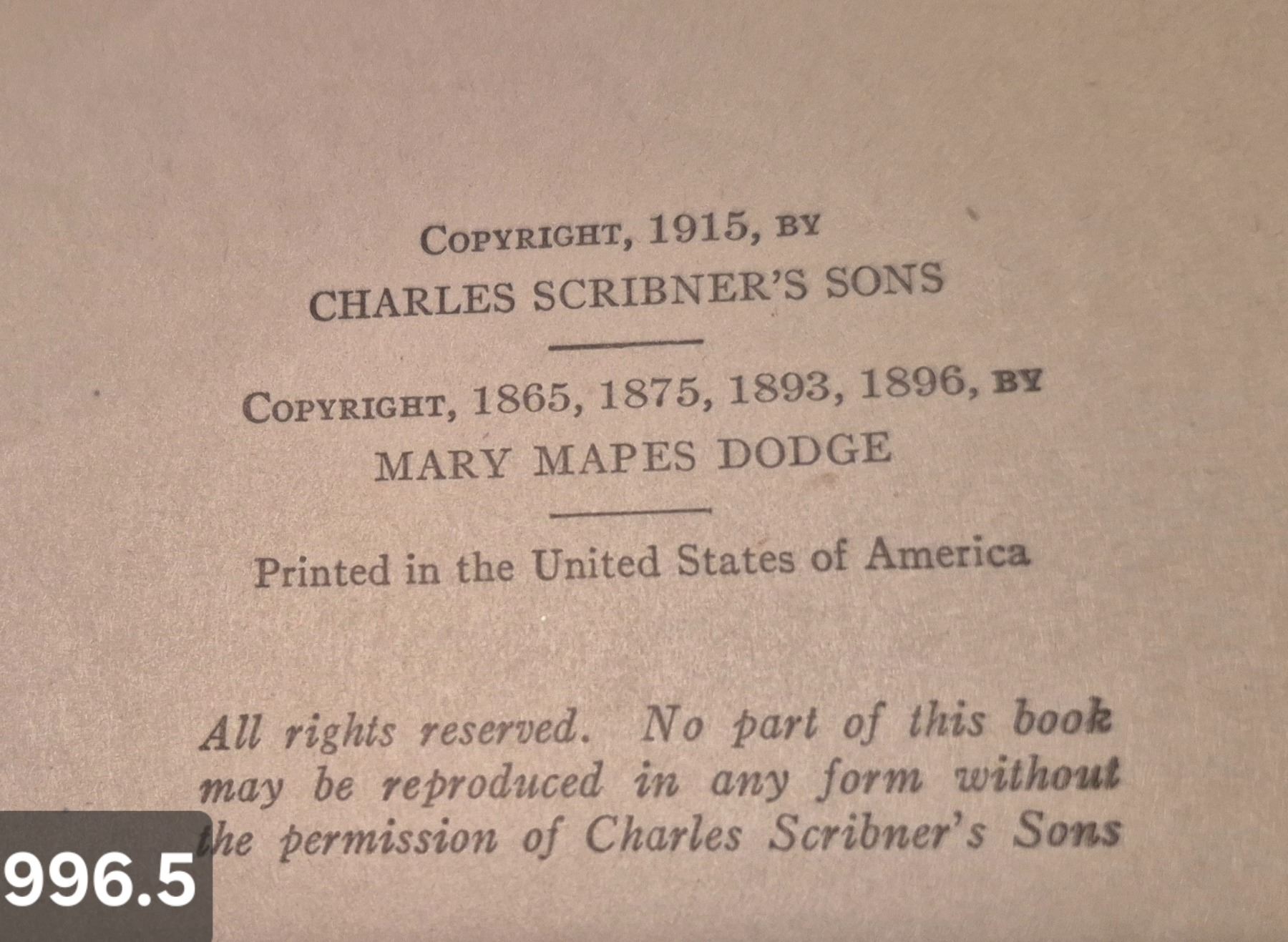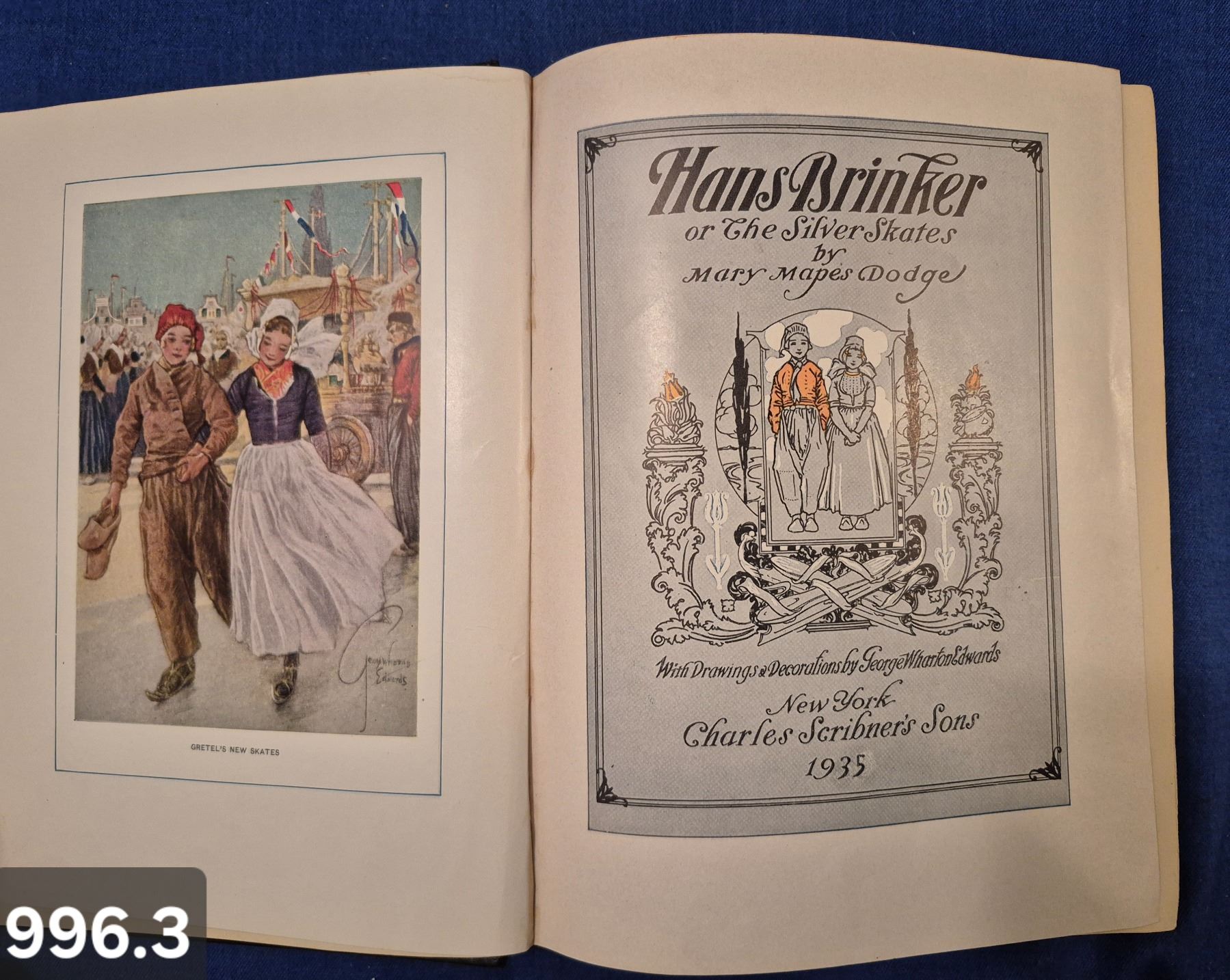996. "Hans Brinker or The Silver Skates" book, Mary Mapes Dodge, 1935, excellent condition for age