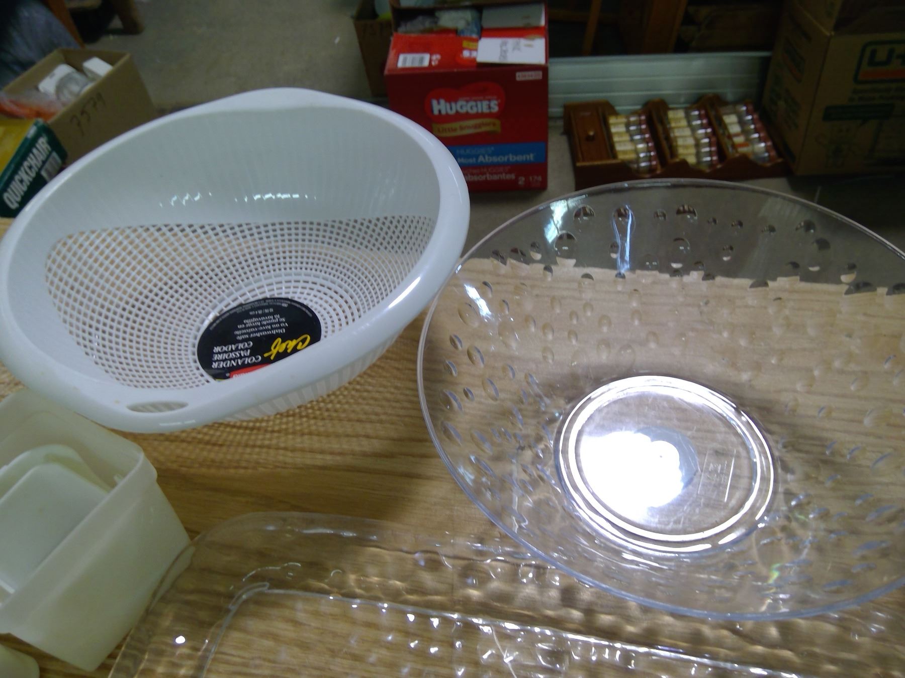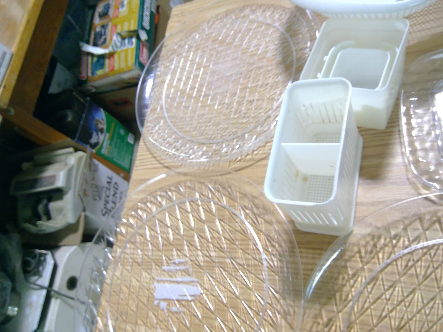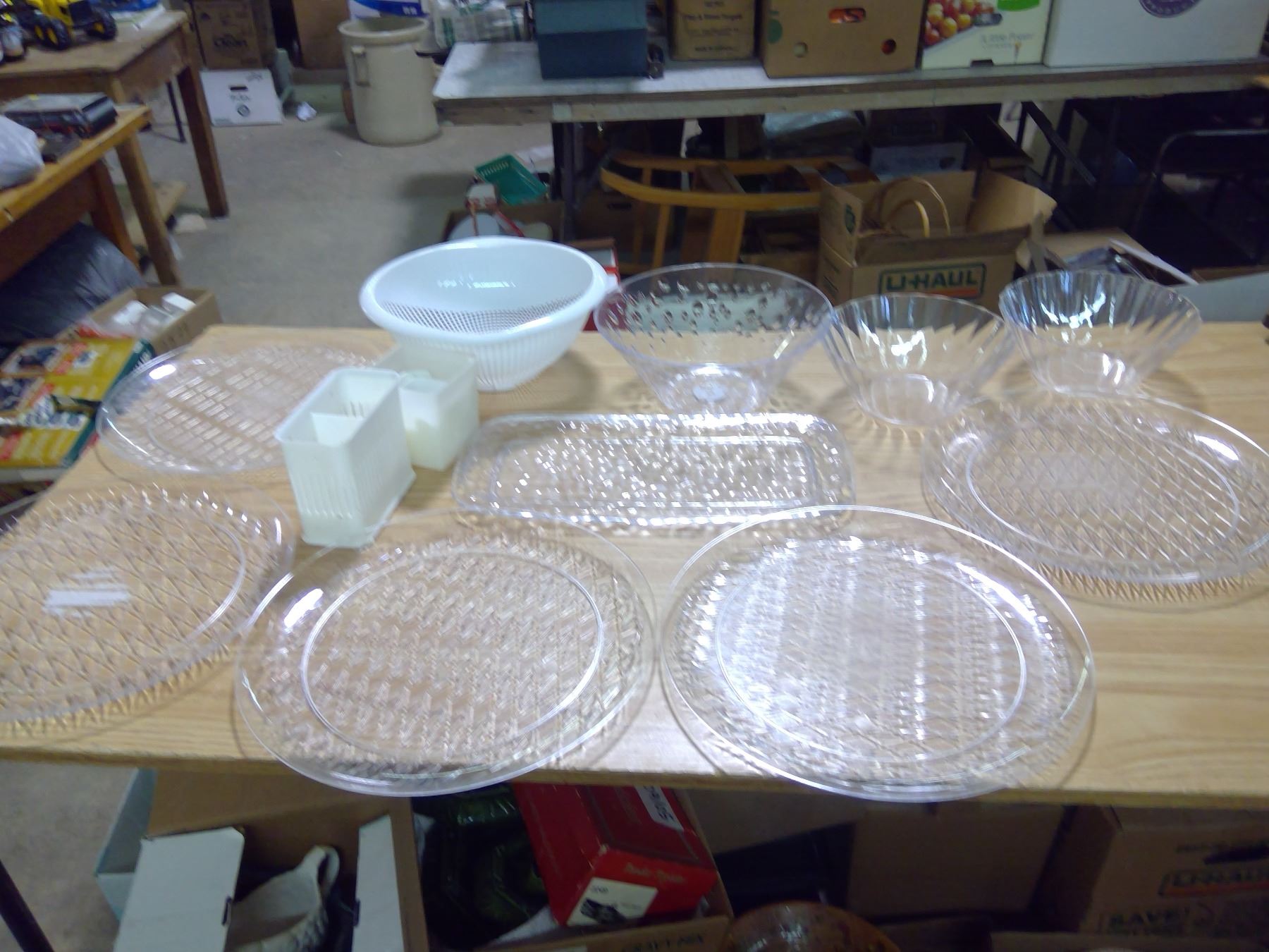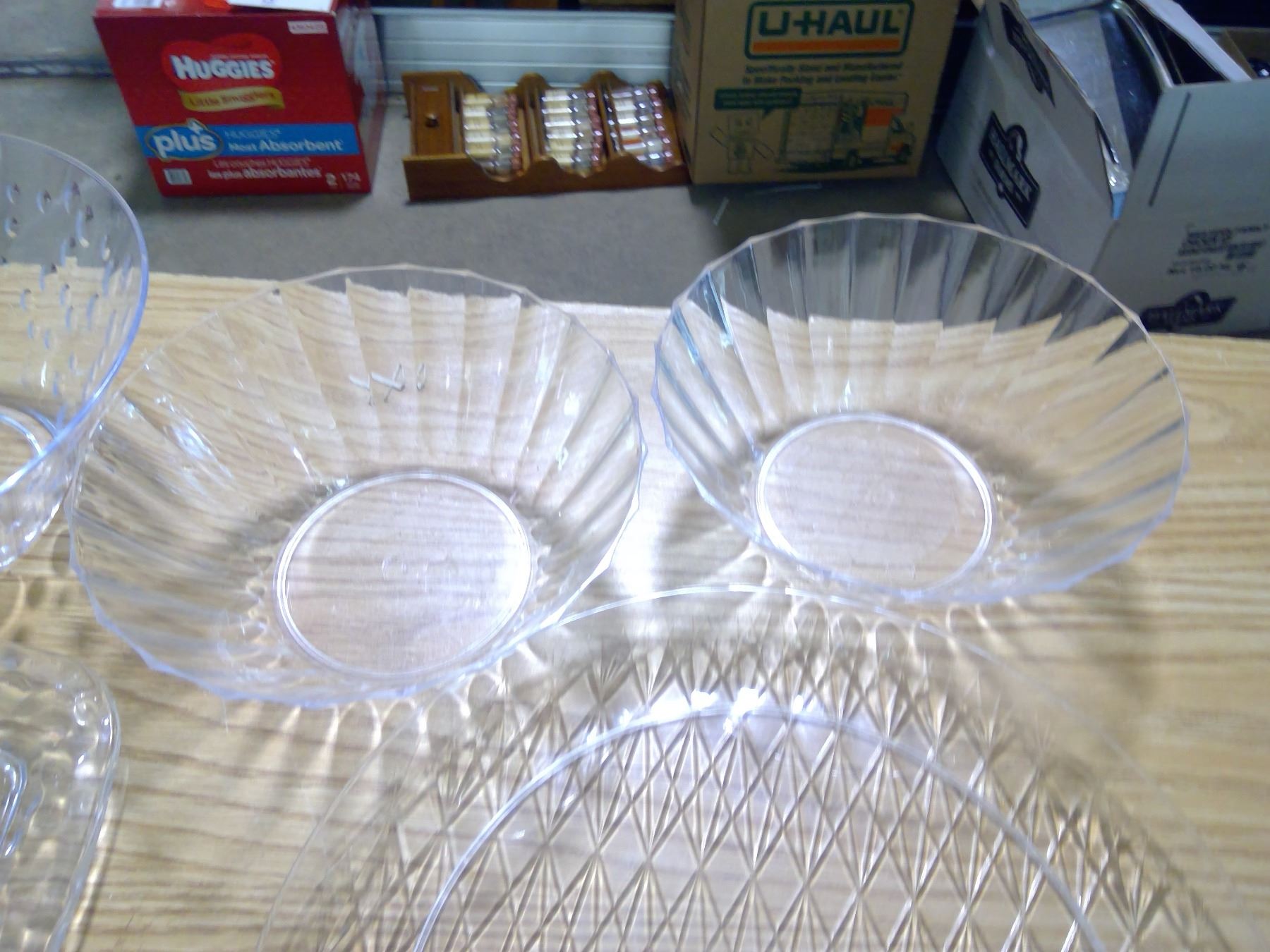 A BUNCH OF SERVING DISHES AND PLASTIC CONTAINERS