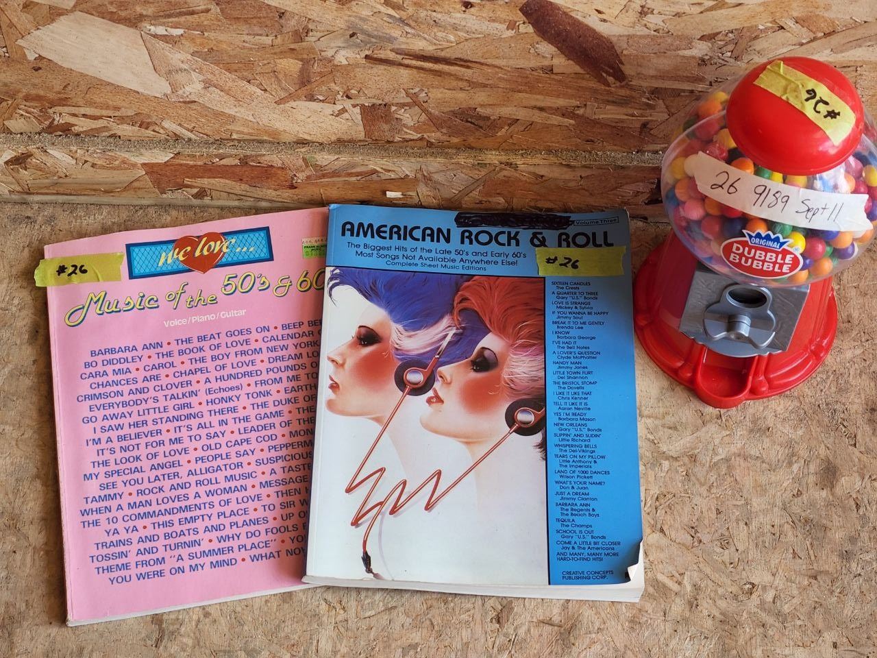 A Bubble Double Gum Machine (With Gum) and 2 1960's Song/Music Books