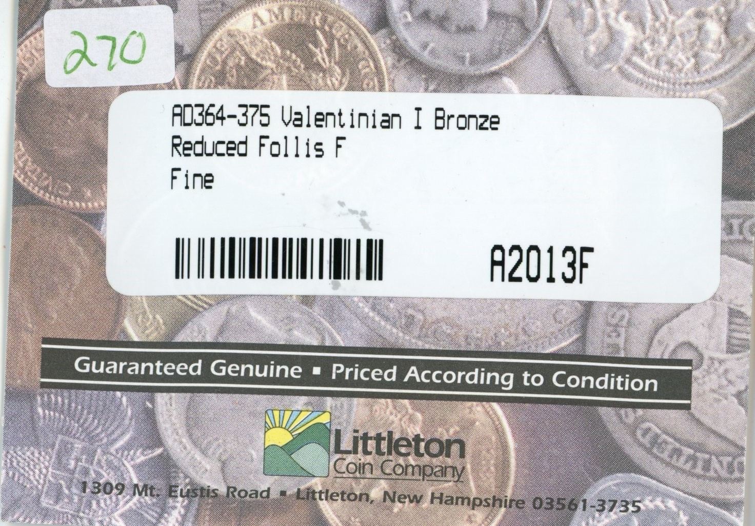 A.D 364-375 Valentinian I Bronze Reduced Follis of Ancient Rome