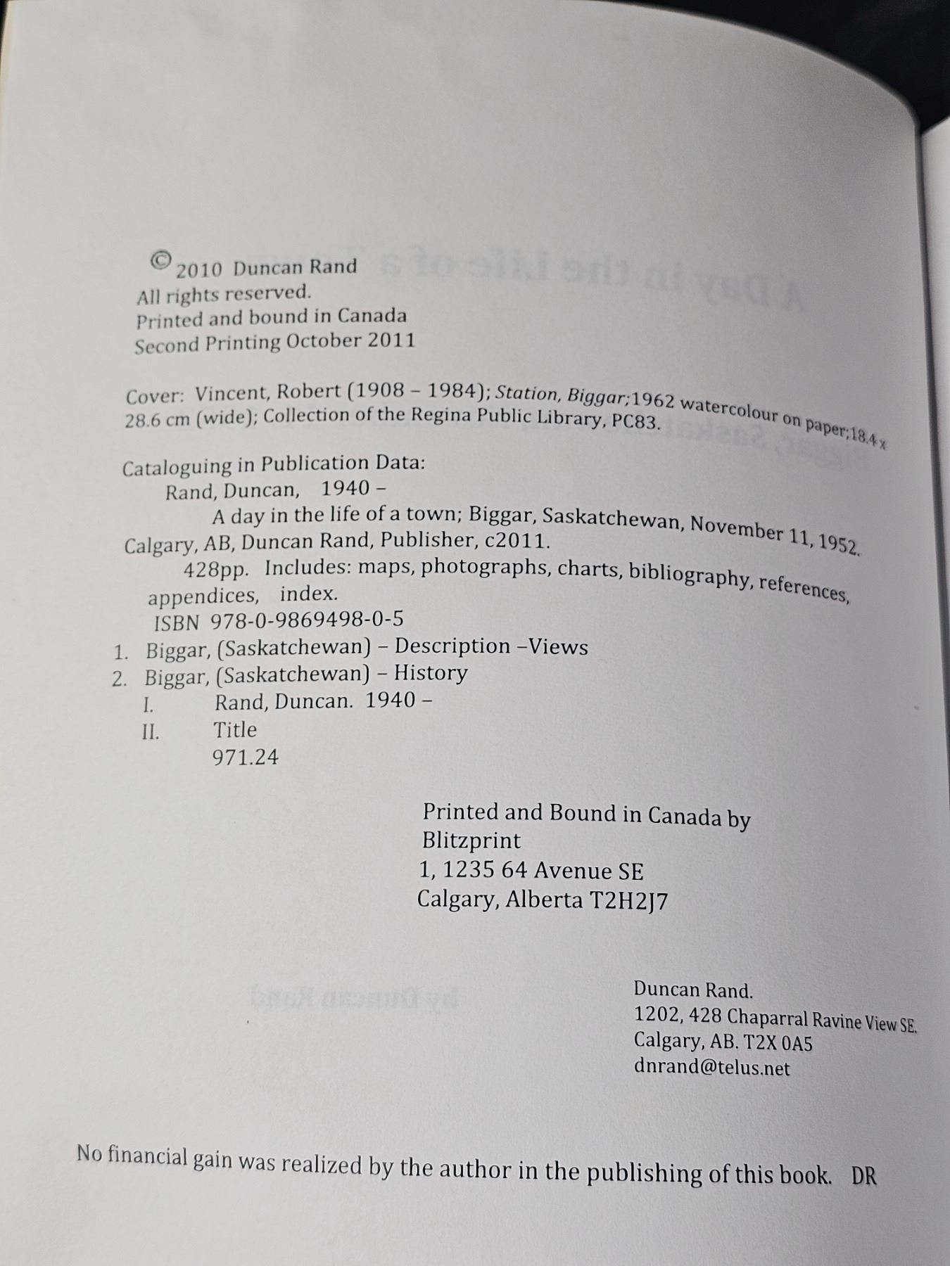 “A Day in the Life of A Town” Biggar, SK History 2010