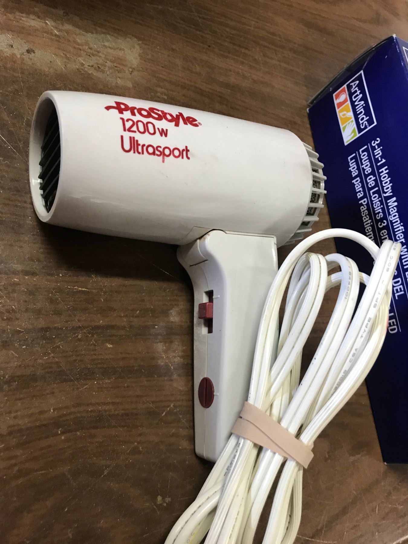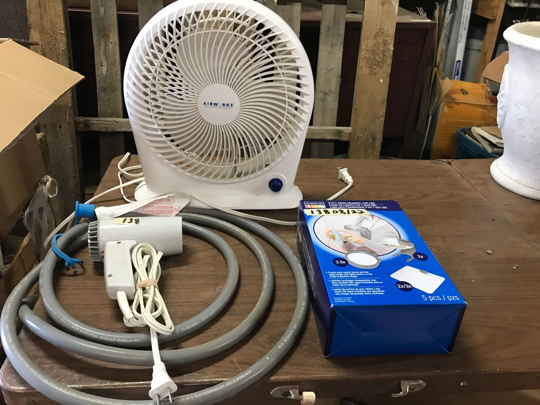 A FAN+NATURAL GAS HOSE+VINTAGE HAIR DRYER+ARTMINDS 3IN1 HOBBY MAGNIFIER WITH LED