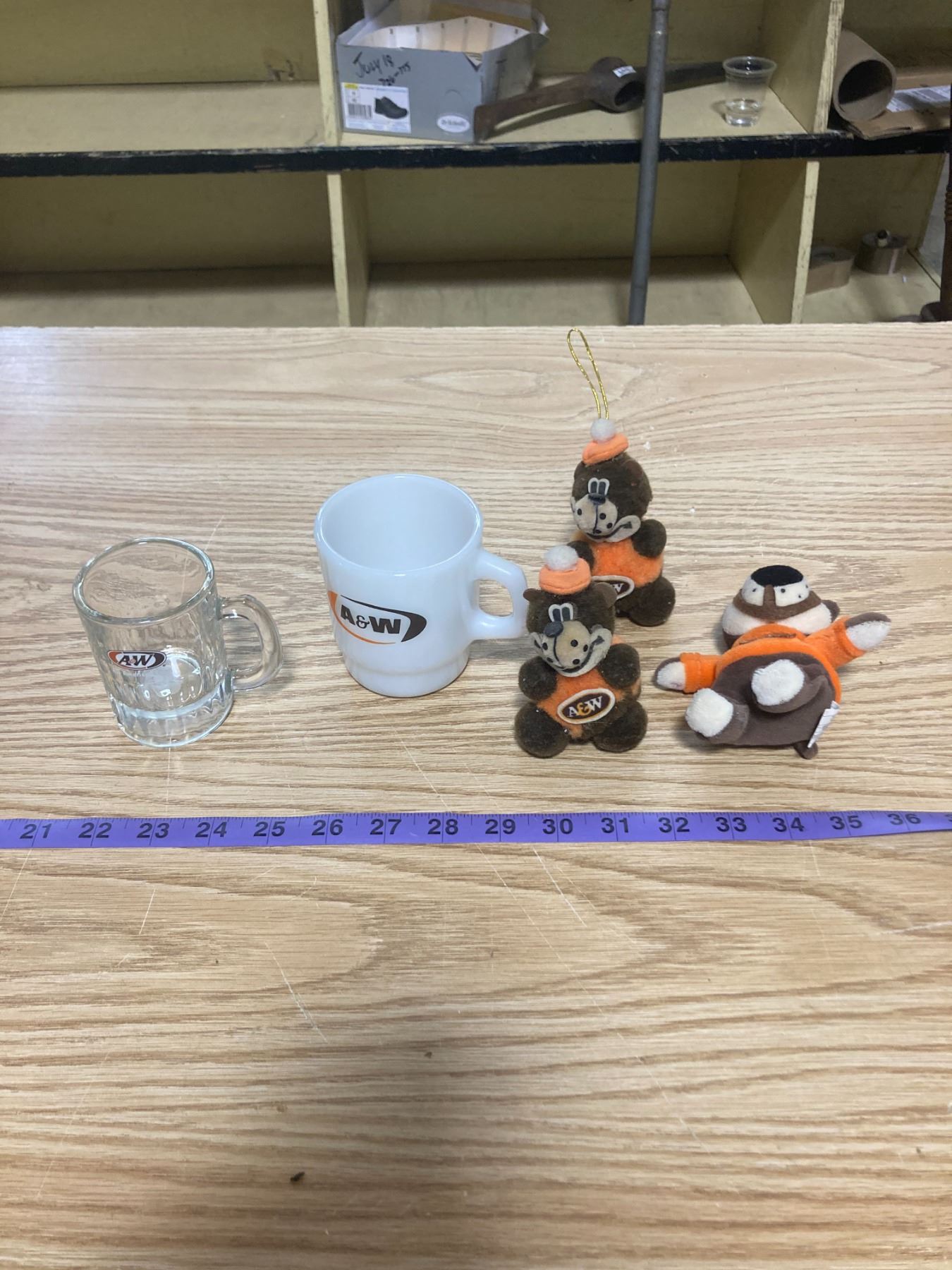 A&W MUG + MINI MUG + 3 A&W MINI TEDDY BEARS