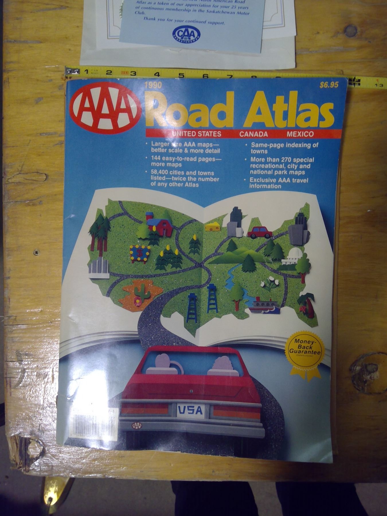 AAA 1990 Road Atlas - USA, Canada and Mexico - 11.5"x15.5"