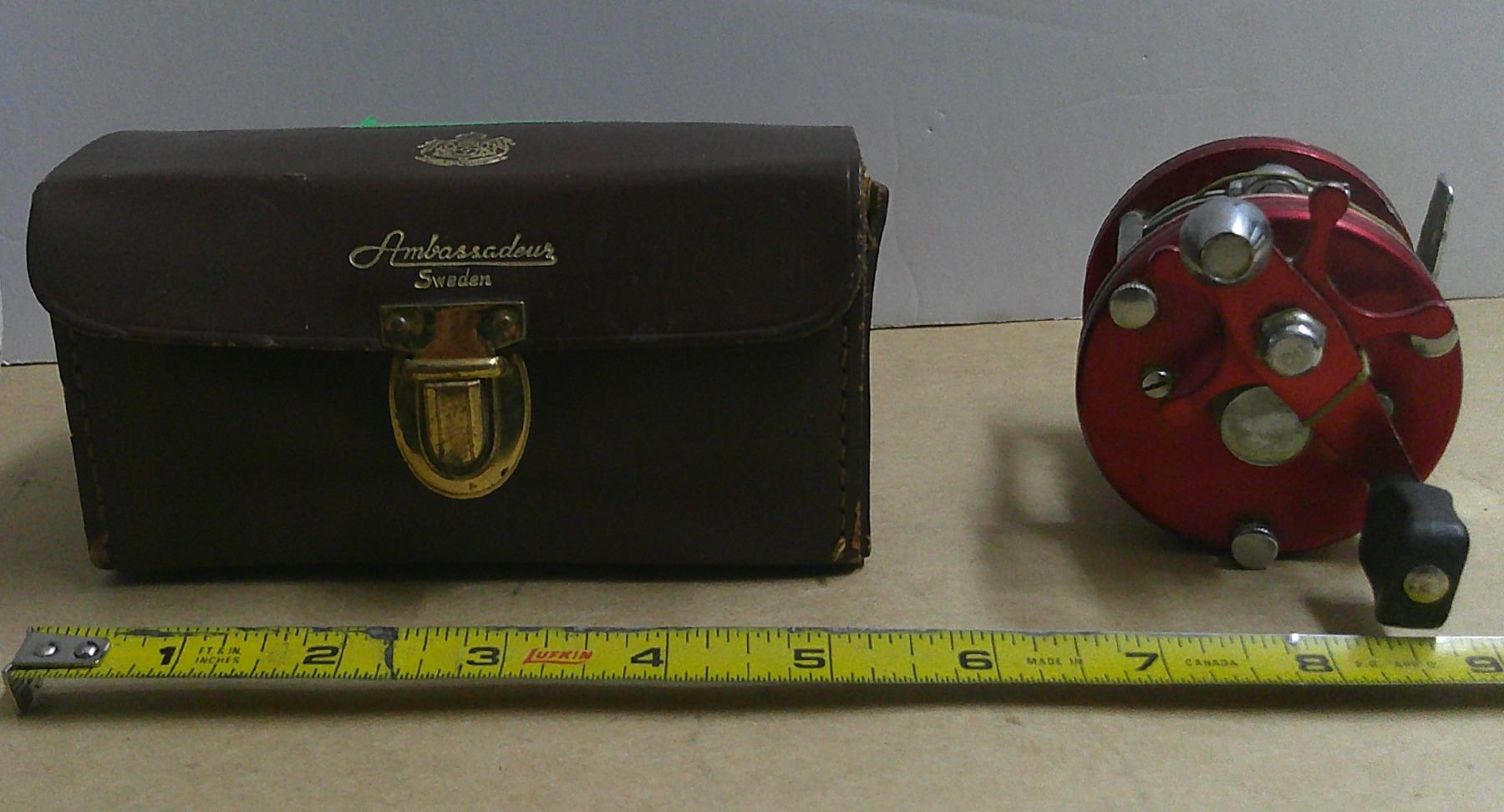 ABU garcia ambassador 5000 bait casting reel sweden w/ leather case manual, oil, tool container