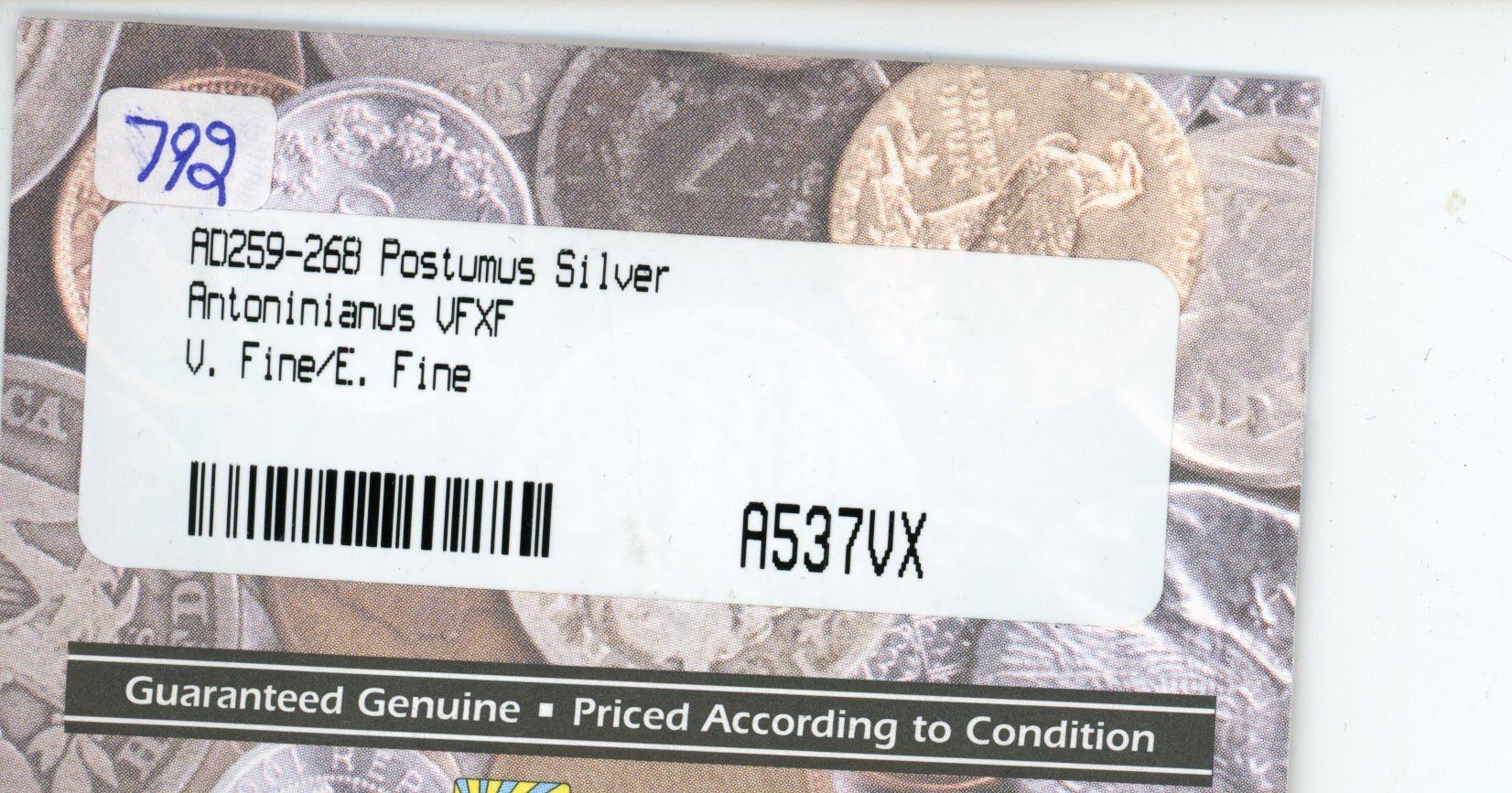 AD 259-268 Postumus Silver Antoninianus of Ancient Rome VFXF