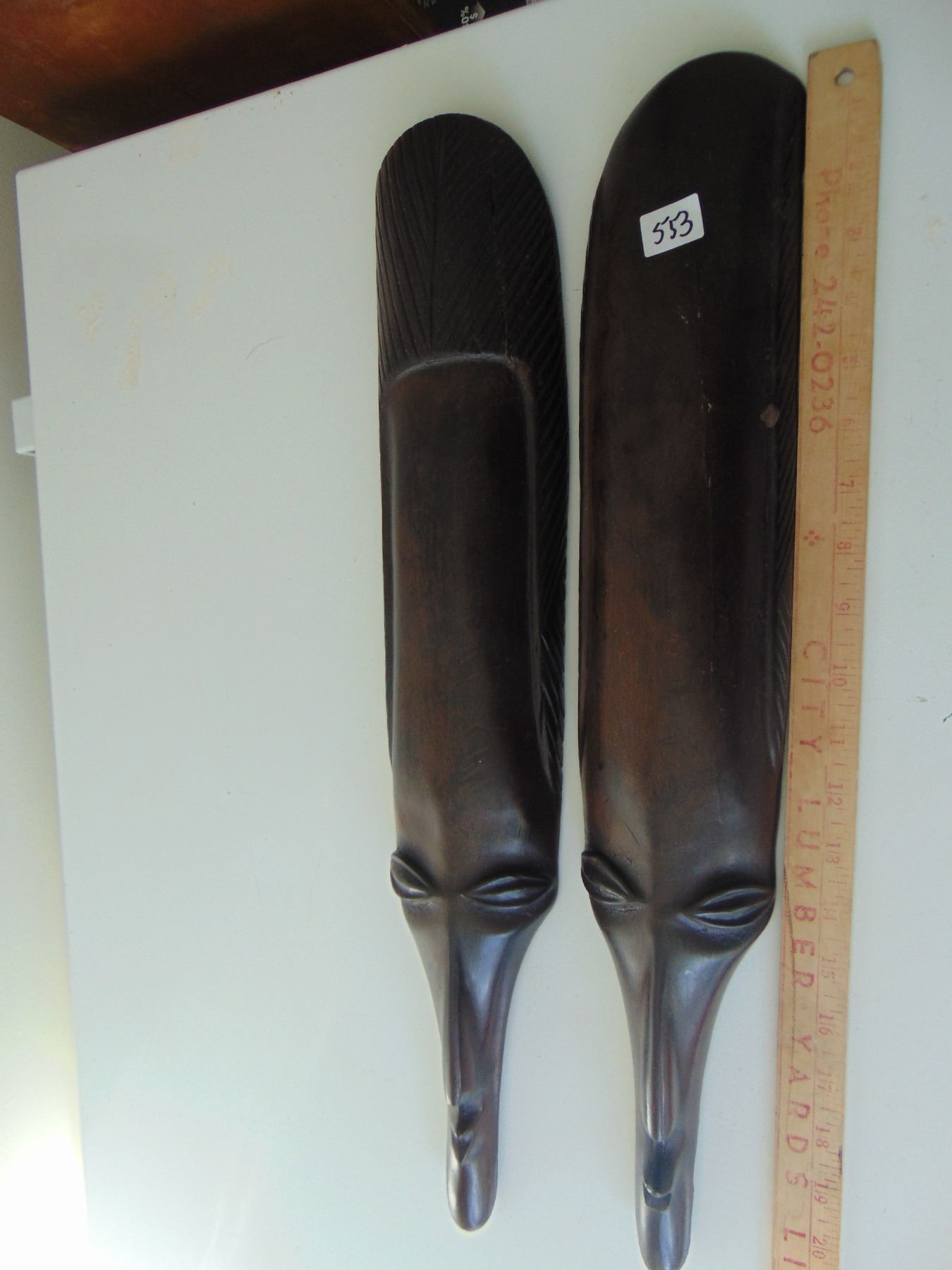 AFRICAN DARK WOOD CARVED MASK WALL HANGINGS