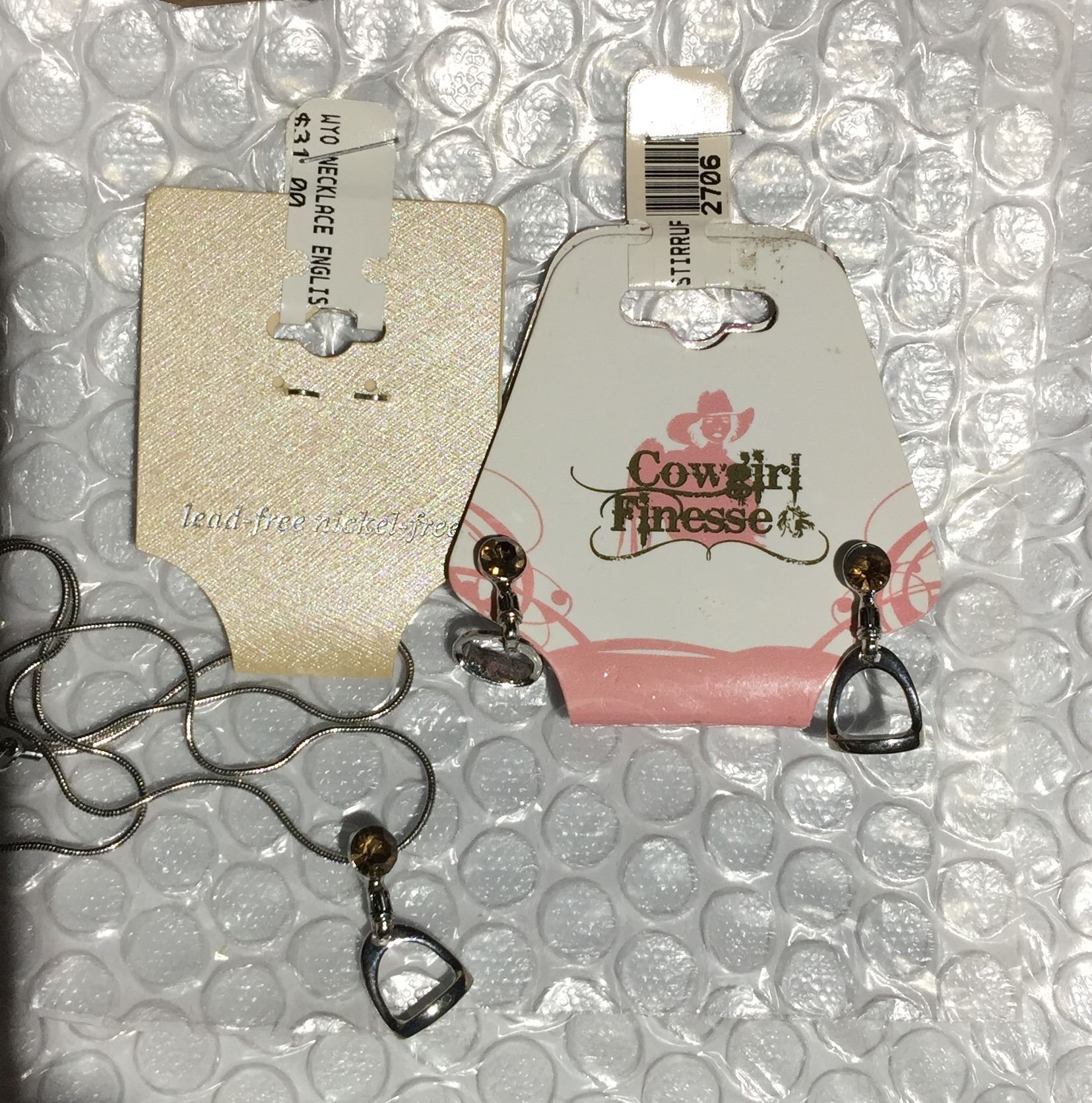 AMBER STONE ENGLISH STIRRUP NECKLACE/AMBER STONE ENGLISH STIRRUP EARRINGS/NICKEL FREE
