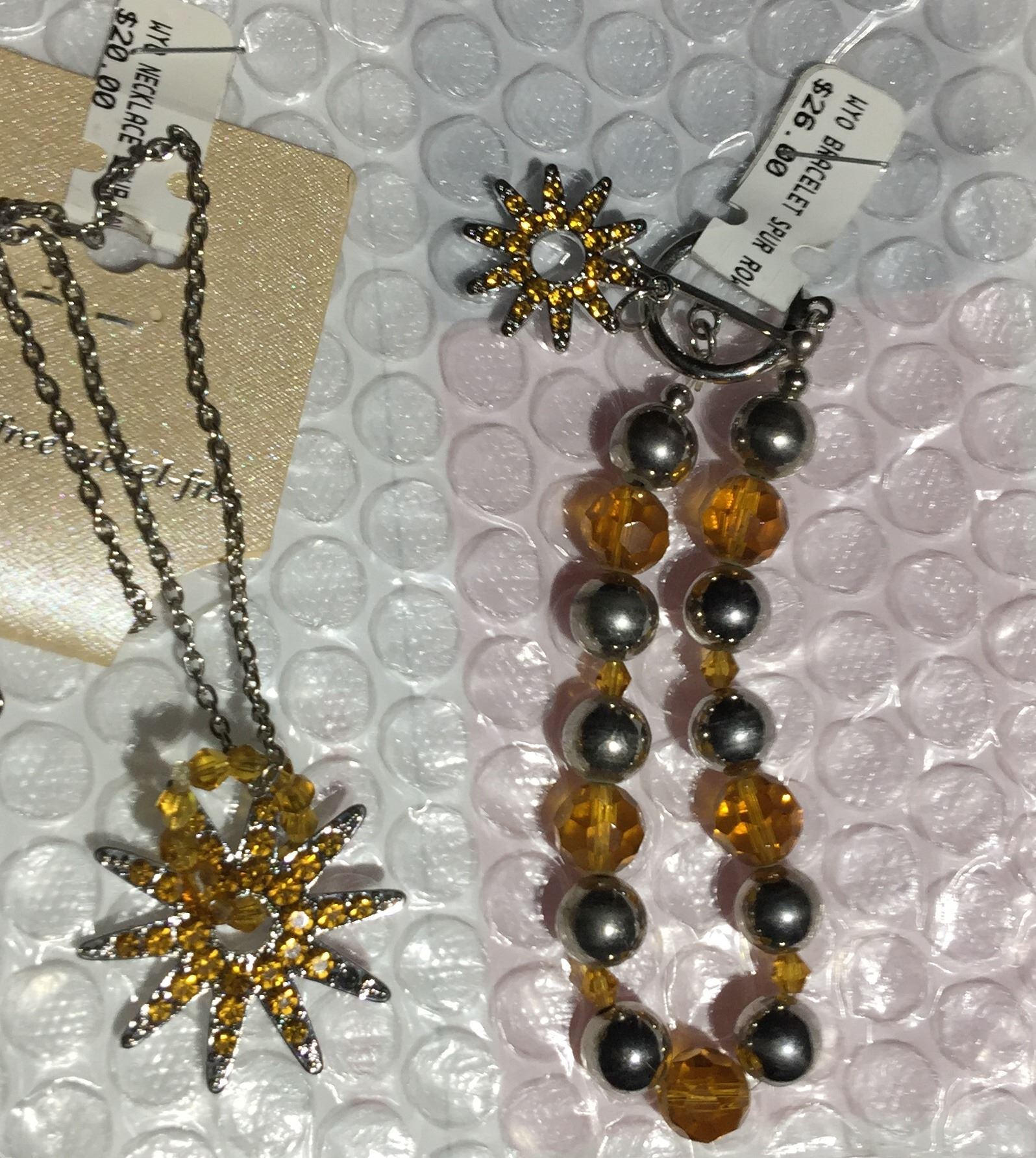 AMBER STONE SPUR ROWEL NECKLACE/AMBER STONESPUR ROWEL/NICKEL FREE