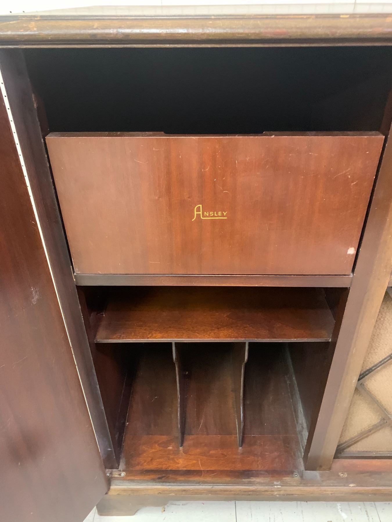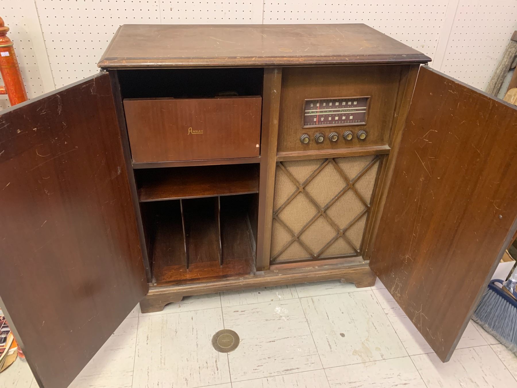 ANSLEY CABINET RADIO RECORD PLAYER PROJECT, NO RECORD PLAYER 36.5" TALL X 36" X 18"