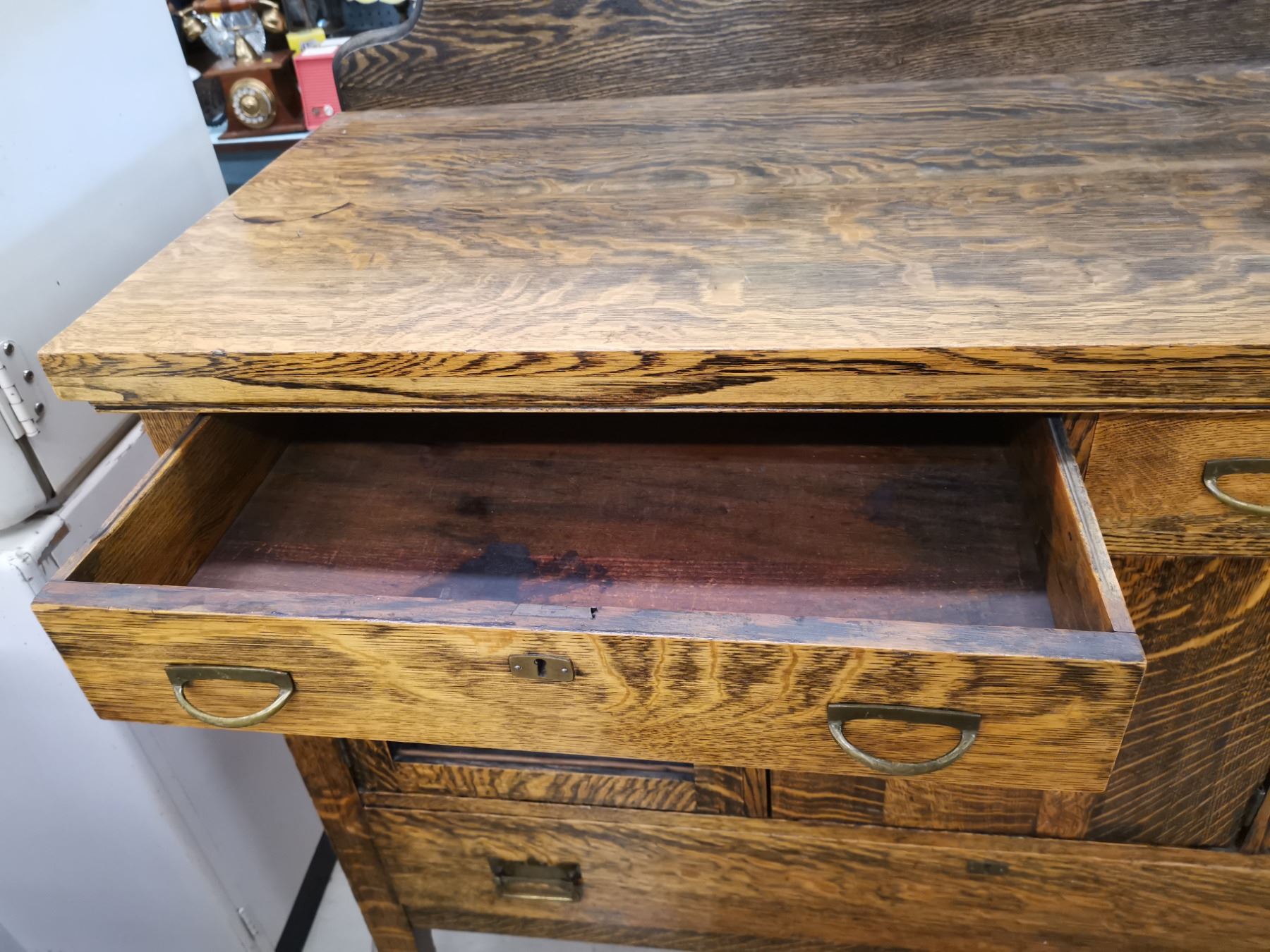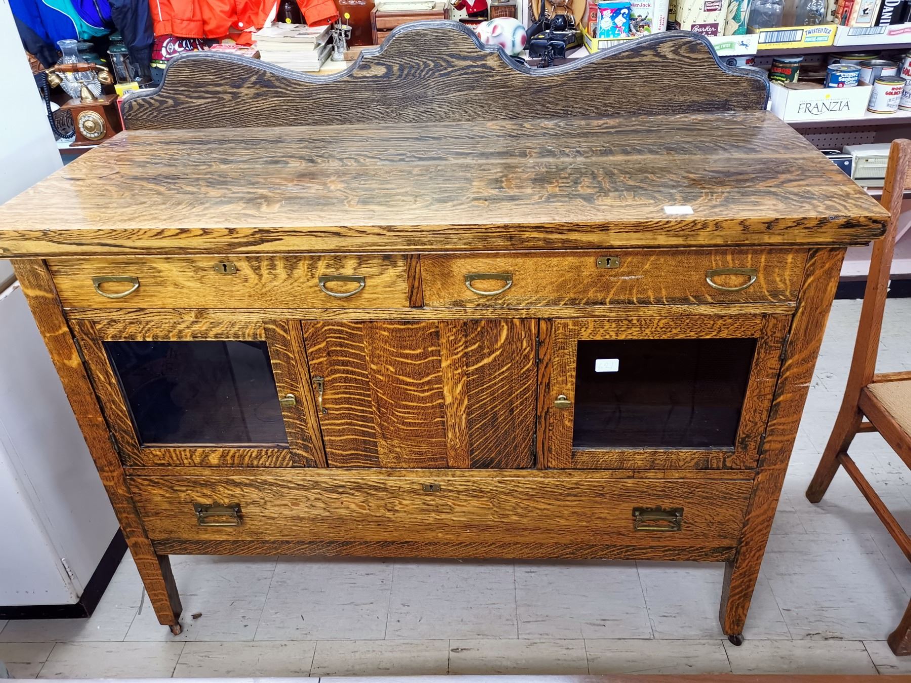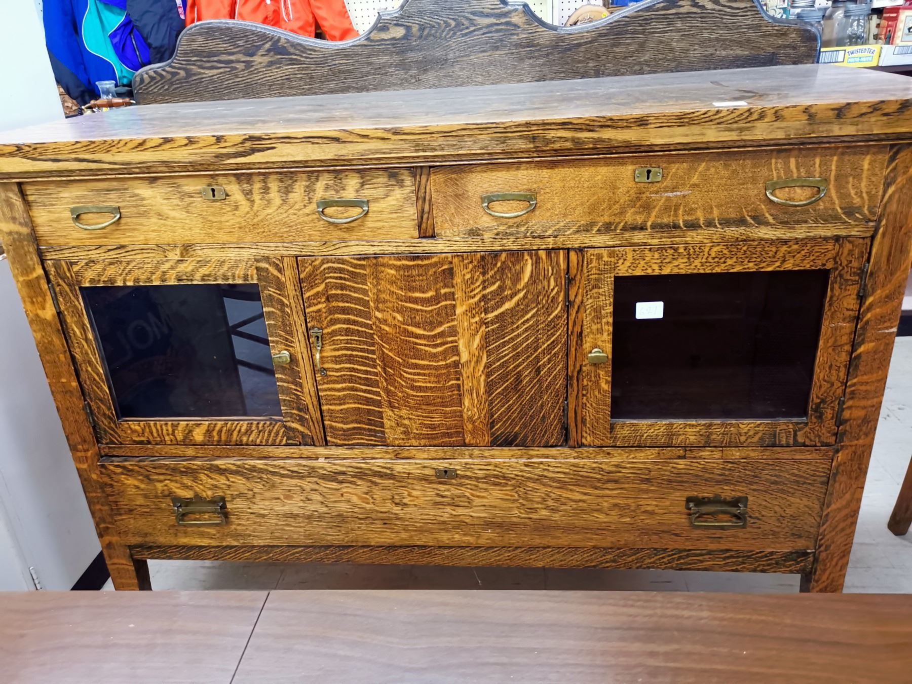 ANTIQUE BUFFET CABINET, POSSIBLY WALNUT 54" LONG