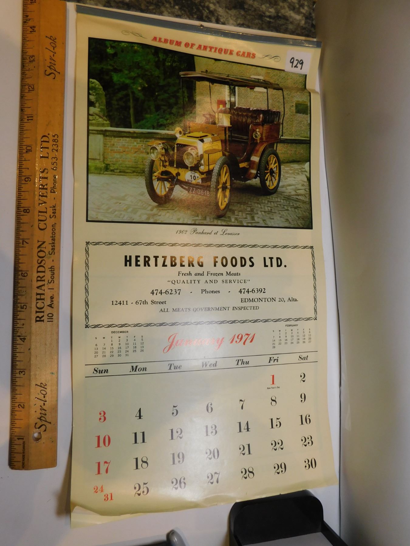 ANTIQUE CARS CALANDER 1971