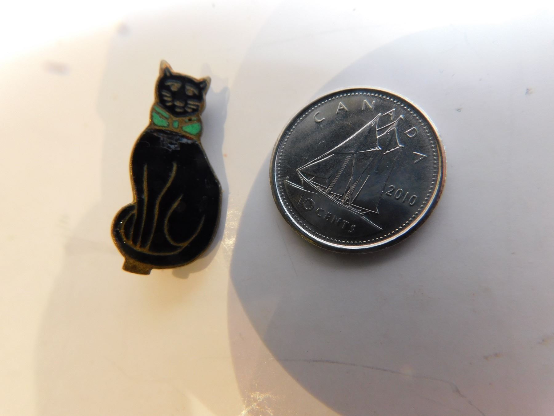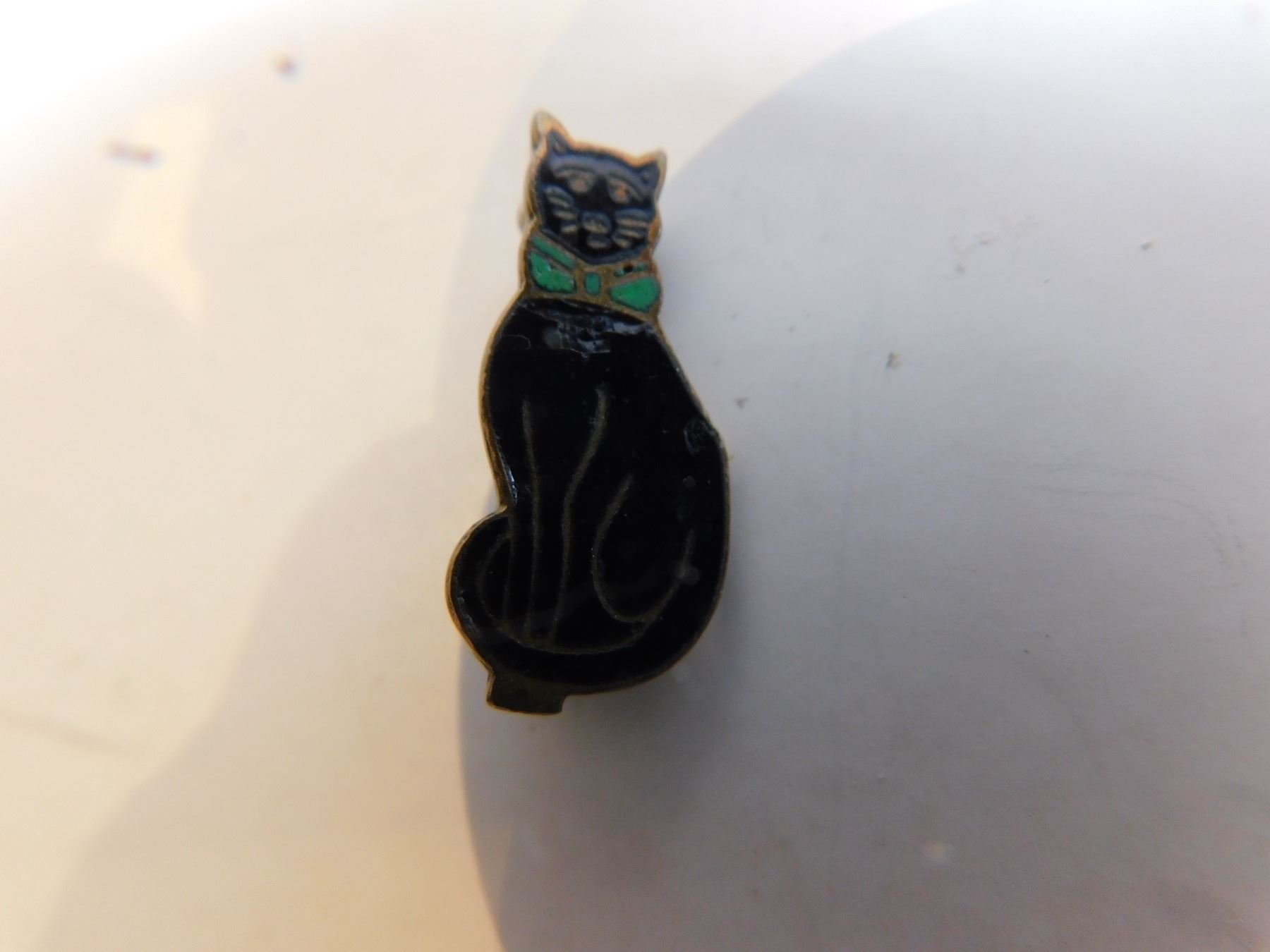 ANTIQUE CAT BROACH ENAMEL GREEN AND BLACK