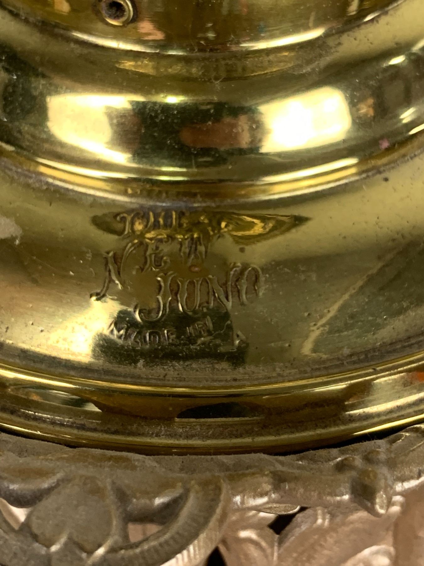 ANTIQUE NEW JUNO CAST AND BRASS OIL LAMP