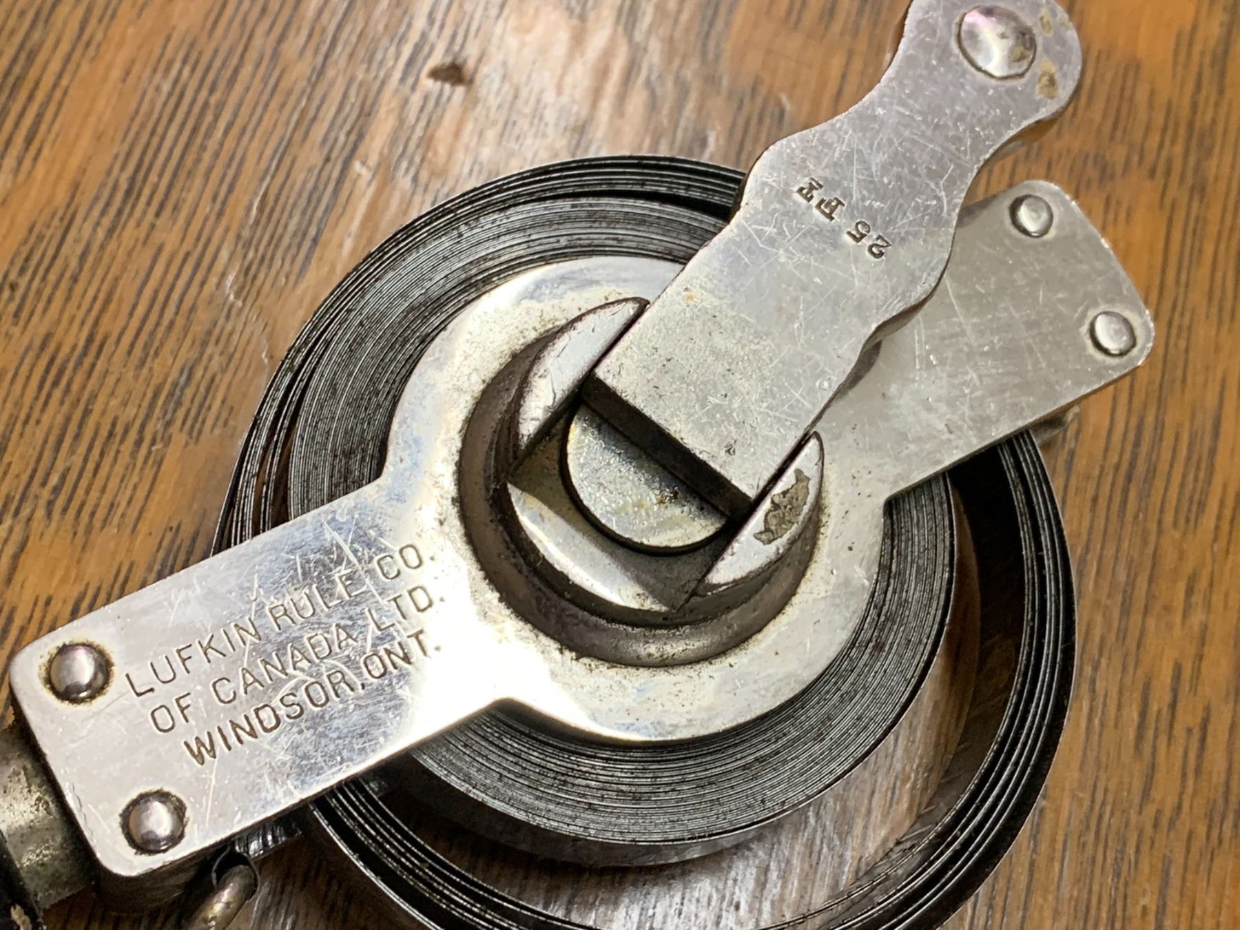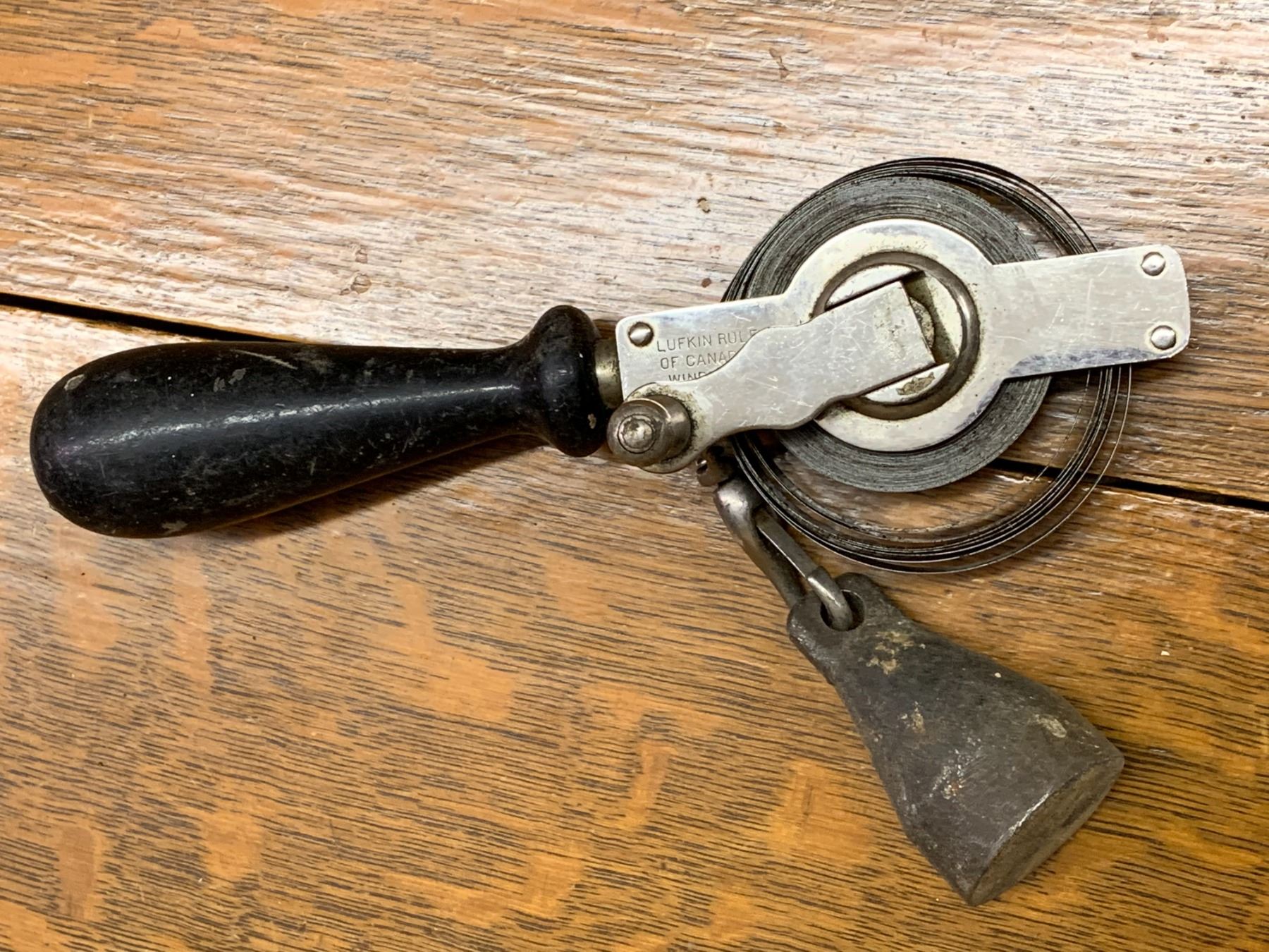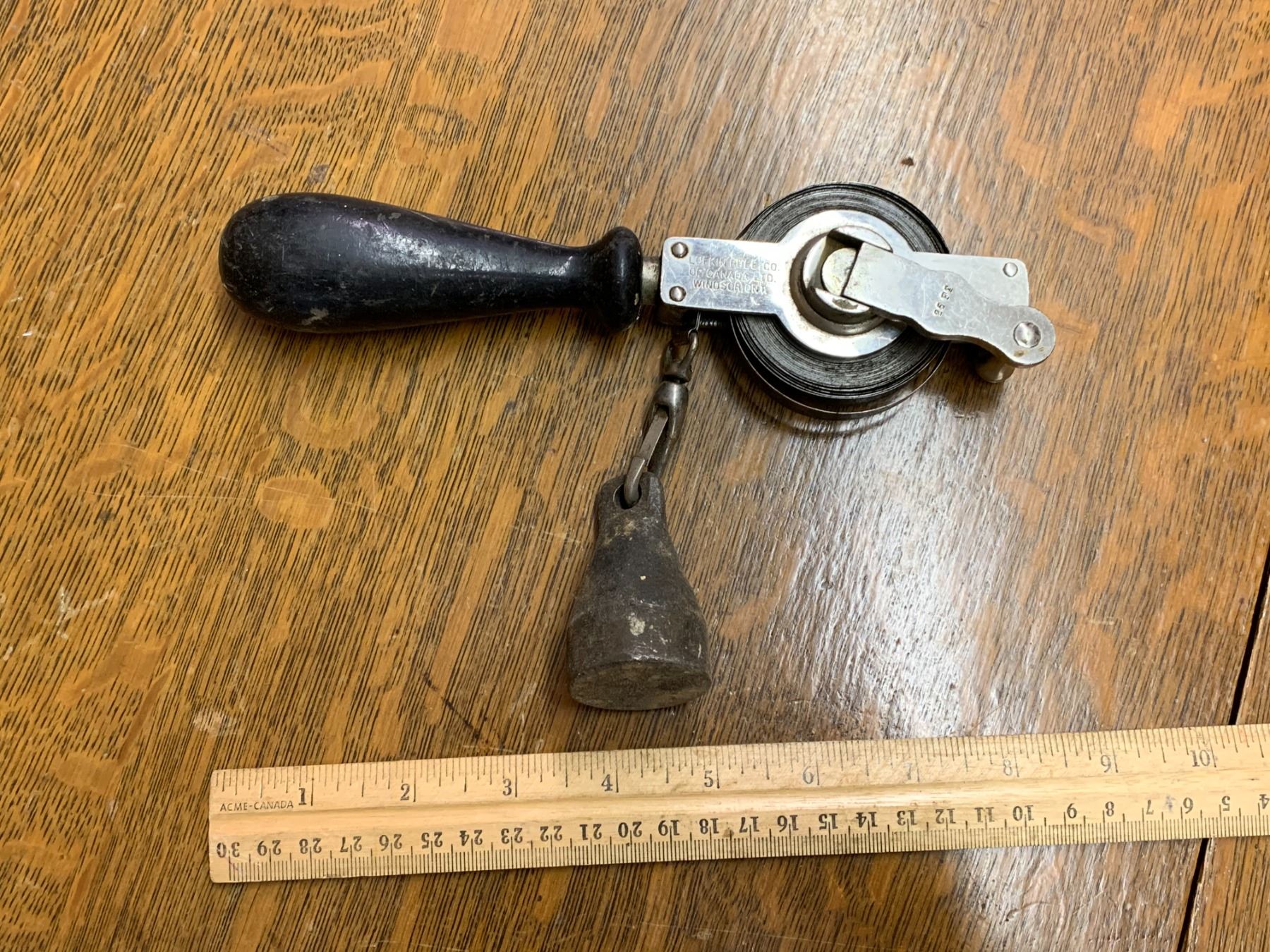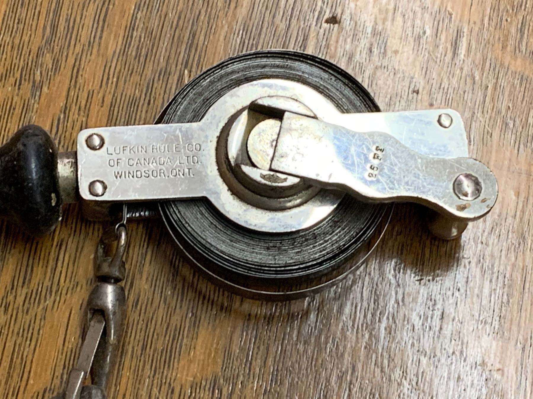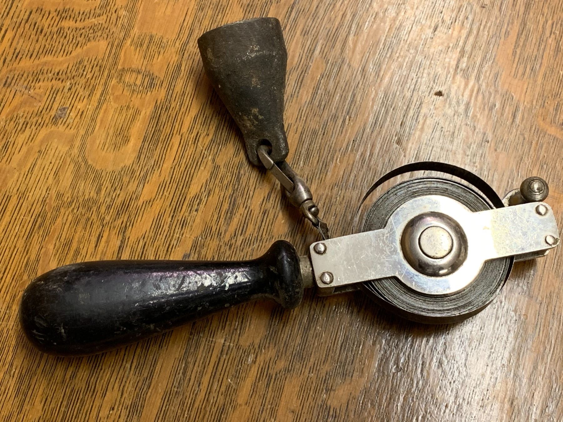 ANTIQUE PATENT 1909 LUFKIN RULE CO 25ft PLUMB BOB DEPTH TAPE MEASURE